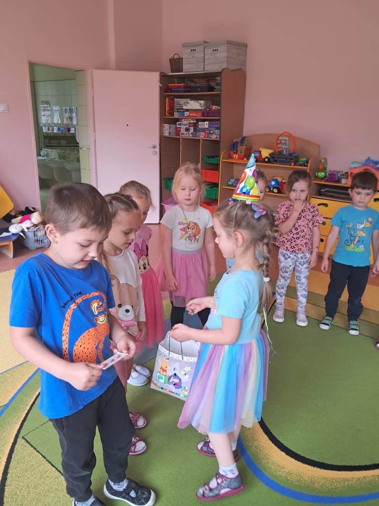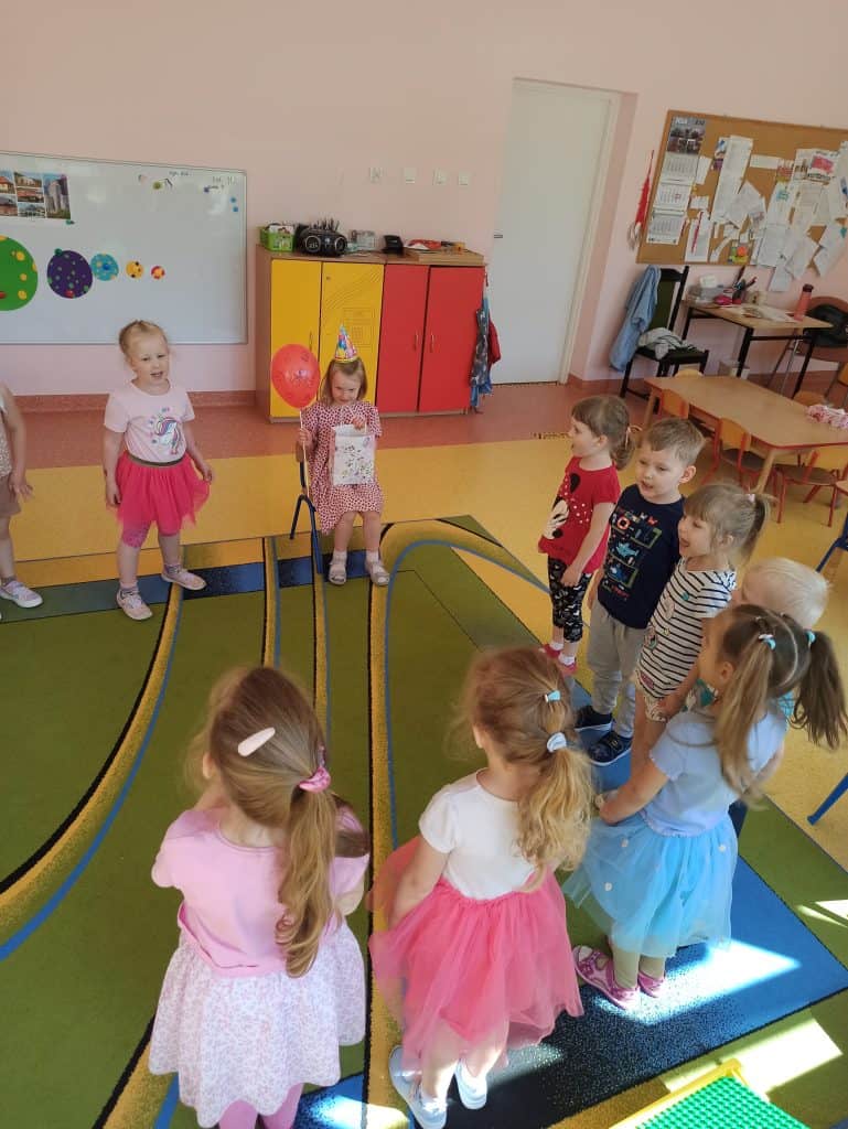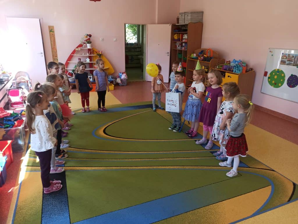 W maju obchodziliśmy również urodziny kilku Biedronek. Tym razem do wspólnego świętowania zaprosiło nas aż 5 dzieci – Hania, Jędrek, Martynka A., Martynka W. oraz Patrycja. Przy każdych urodzinach wszyscy głośno śpiewali „Sto lat!” i składali życzenia Solenizantom. Dziękujemy Rodzicom za zaangażowanie i przygotowanie poczęstunku dla dzieci.
