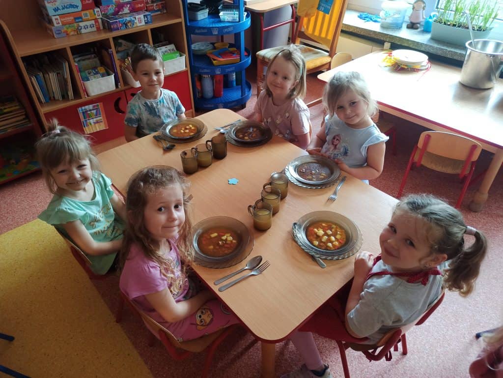 W maju realizowano również projekt „Poznajemy Świat”. Tym razem dzieci miały okazję zasmakować kuchni greckiej – zupy gyros oraz Moussaki.