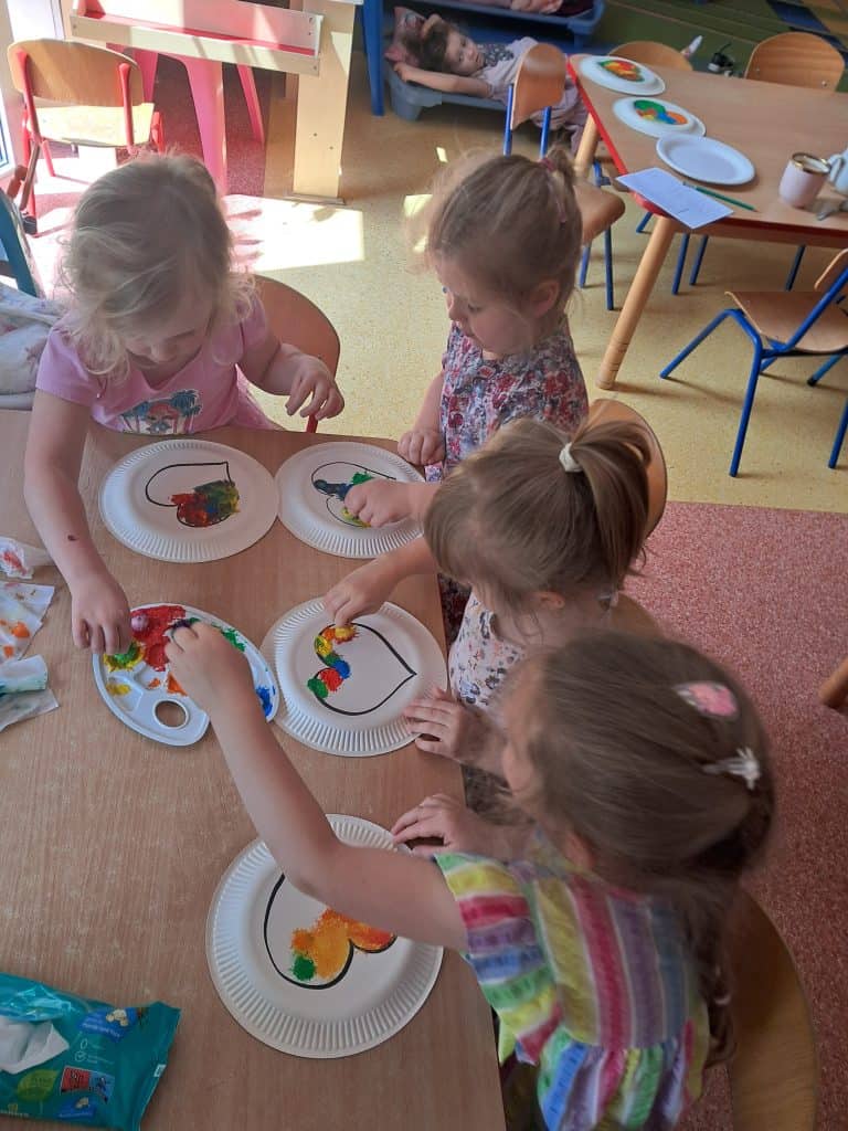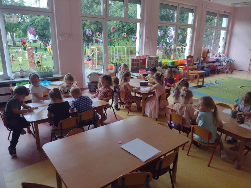 Dzieci z grupy II rozpoczęły miesiąc od zajęć związanych z edukacją patriotyczną. Biedronki rozmawiały o swoim państwie i utrwalały znajomość symboli narodowych. Z okazji zbliżającego się Święta Flagi, każde dziecko wykonało flagę Polski.