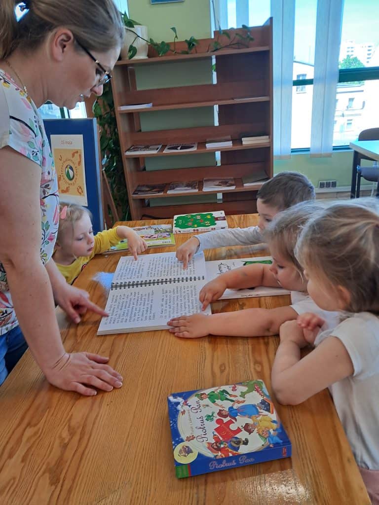 W maju odbyła się również wycieczka do Wojewódzkiej i Miejskiej Biblioteki Publicznej im. Cypriana Norwida w Zielonej Górze. Wyjście zostało zorganizowane z okazji „Dnia Bibliotekarza”. Podczas wycieczki dzieci zostały oprowadzone po Bibliotece przez mamę Martynki W. Pani Ania opowiedziała przedszkolakom na czym polega zawód bibliotekarza, oprowadziła po różnych pomieszczeniach, a także opowiedziała, jak można wypożyczać książki. Podczas wycieczki dzieci miały okazję obejrzeć wiele ciekawych pozycji przeznaczonych dla najmłodszych, a także wypożyczyć wybrane książki na kilka dni do przedszkola.