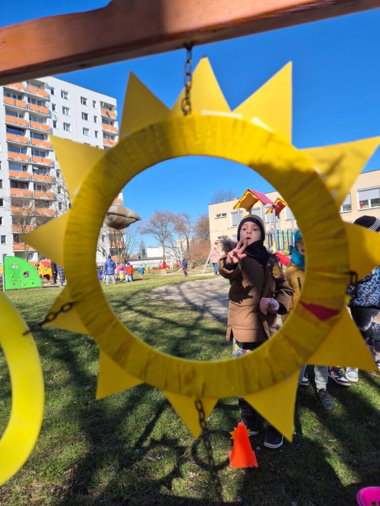 „Tyle słońca w całym mieście, nie widziałeś tego jeszcze…” – te radosne słowa piosenki Anny Jantar rozbrzmiały na naszym przedszkolnym placu zabaw, rozpoczynając wspaniałe świętowanie Dnia Słońca! Nasze przedszkolaki w żółtych strojach wyglądały jak promyki prawdziwego słońca, a uśmiechy nie schodziły im z twarzy.