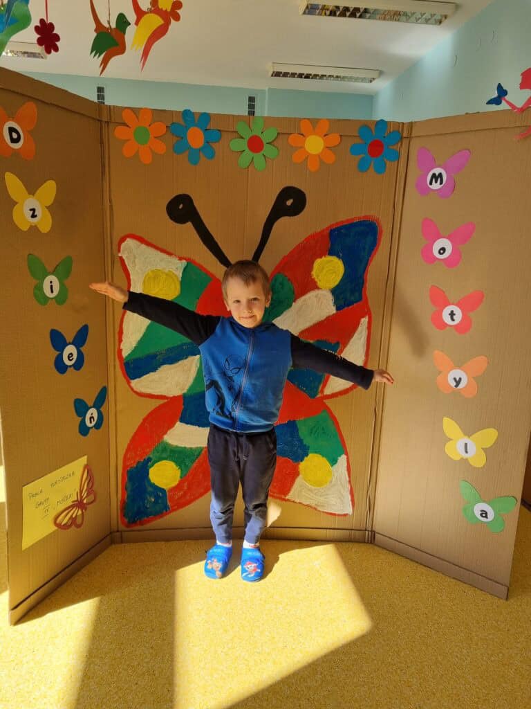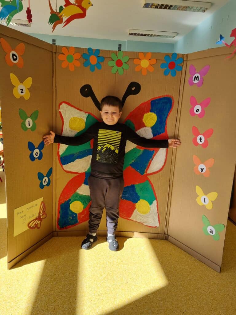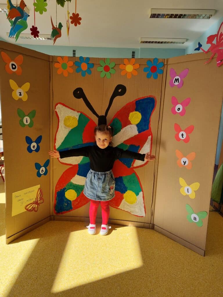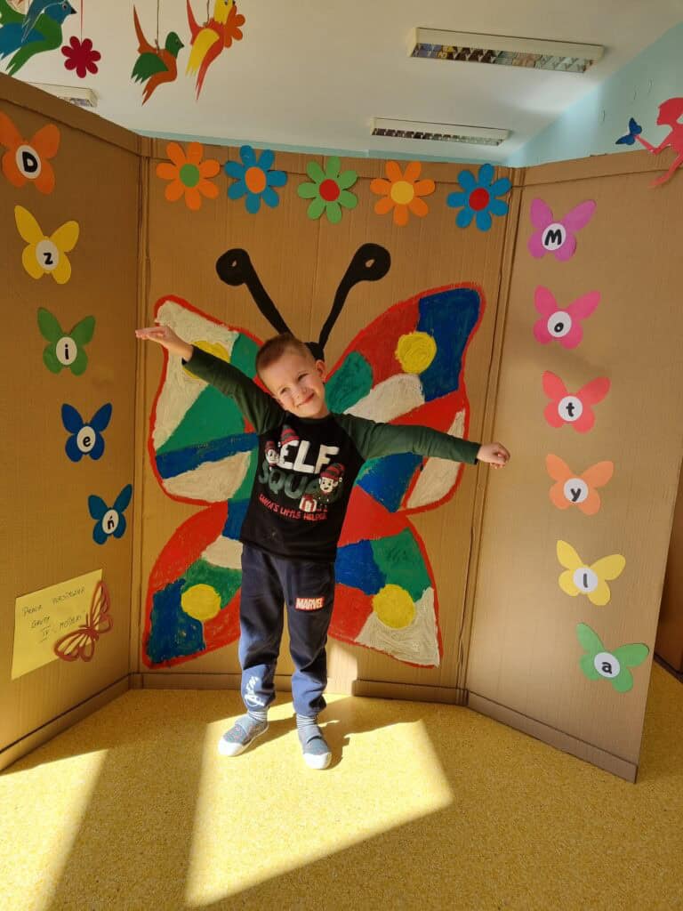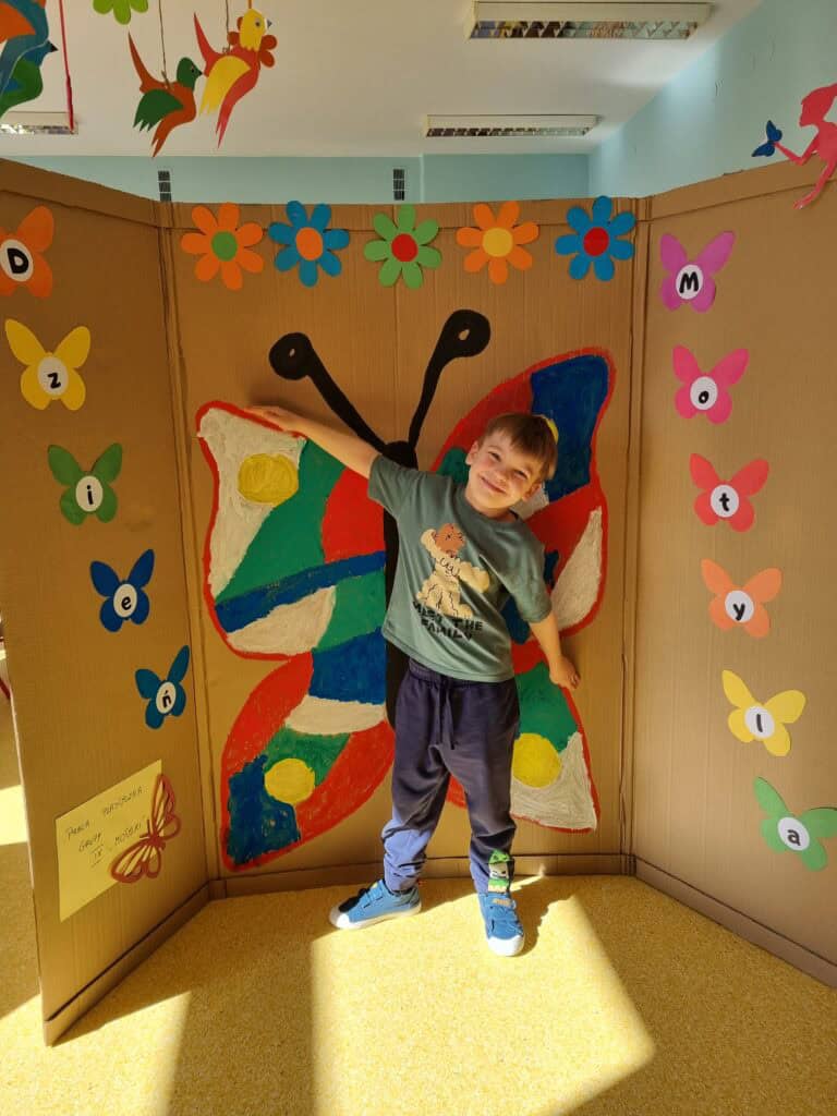 W marcu obchodziliśmy wyjątkowe i bardzo kolorowe święto: Dzień Motyla. Tego dnia dzieci miały okazję poznać wiele ciekawostek o tych pięknych owadach. Dowiedziały się, jak wygląda cykl życia motyla, jakie barwy mogą przybierać jego skrzydła oraz gdzie można go spotkać w przyrodzie. Największą atrakcją była wspólna praca plastyczna: ścianka z gigantycznym motylem, którą dzieci z ogromnym zaangażowaniem ozdobiły farbami, tworząc barwne i niepowtarzalne wzory.
