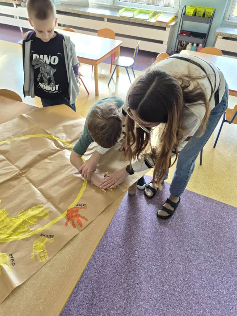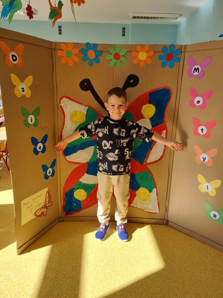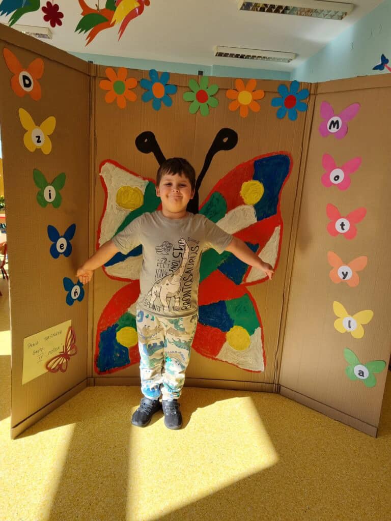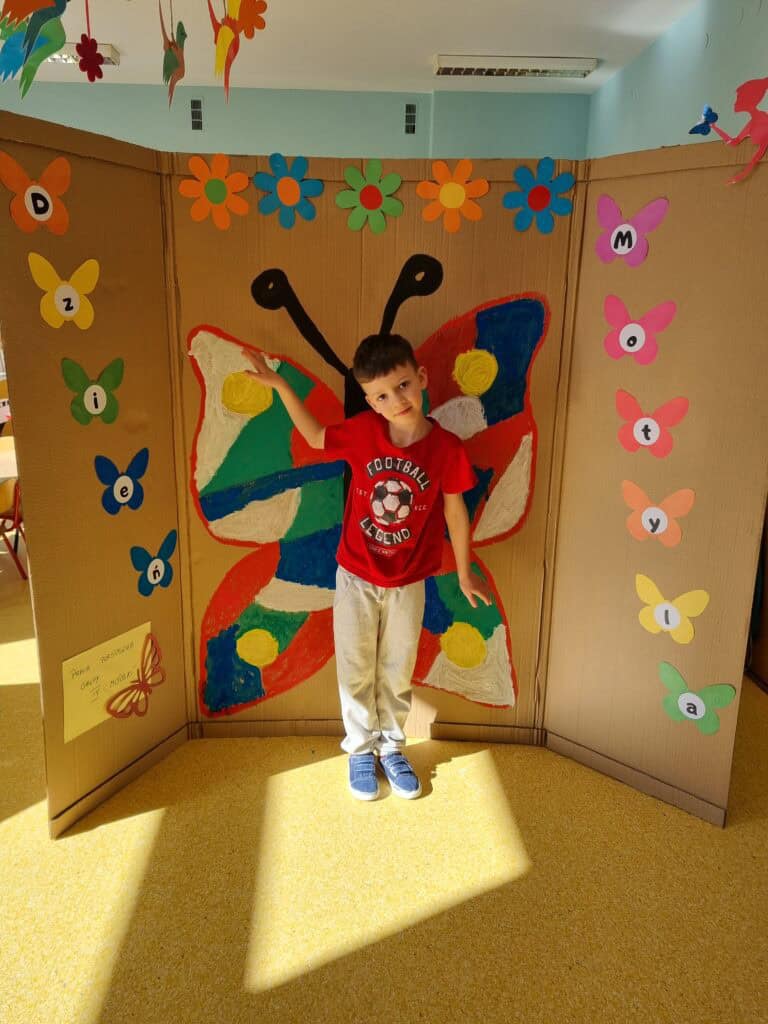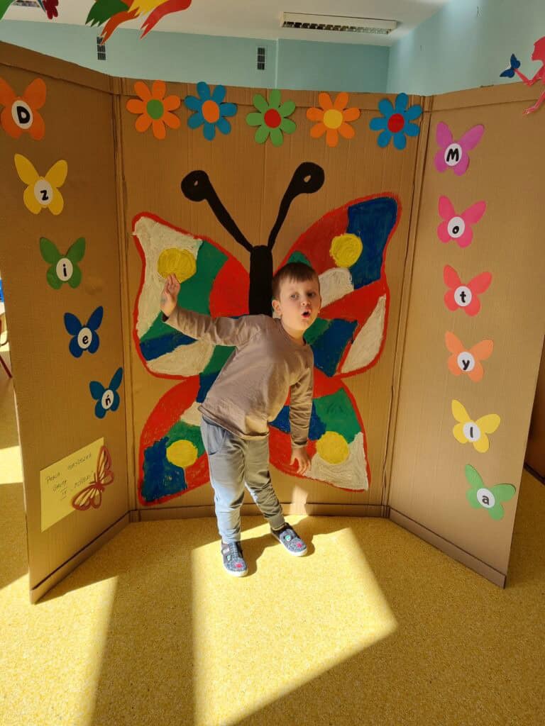 W marcu obchodziliśmy wyjątkowe i bardzo kolorowe święto: Dzień Motyla. Tego dnia dzieci miały okazję poznać wiele ciekawostek o tych pięknych owadach. Dowiedziały się, jak wygląda cykl życia motyla, jakie barwy mogą przybierać jego skrzydła oraz gdzie można go spotkać w przyrodzie. Największą atrakcją była wspólna praca plastyczna: ścianka z gigantycznym motylem, którą dzieci z ogromnym zaangażowaniem ozdobiły farbami, tworząc barwne i niepowtarzalne wzory.