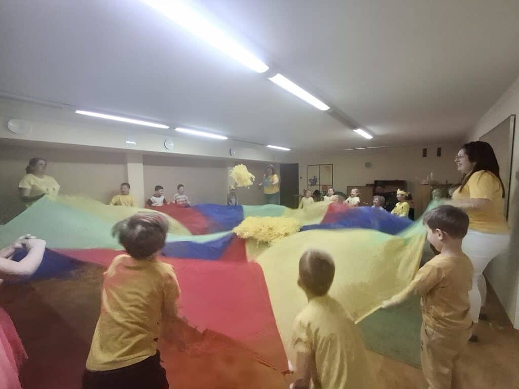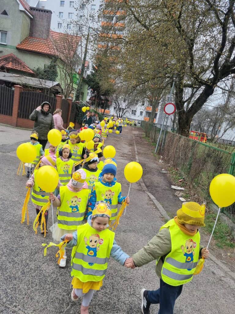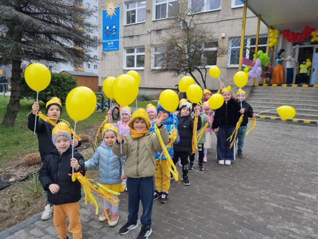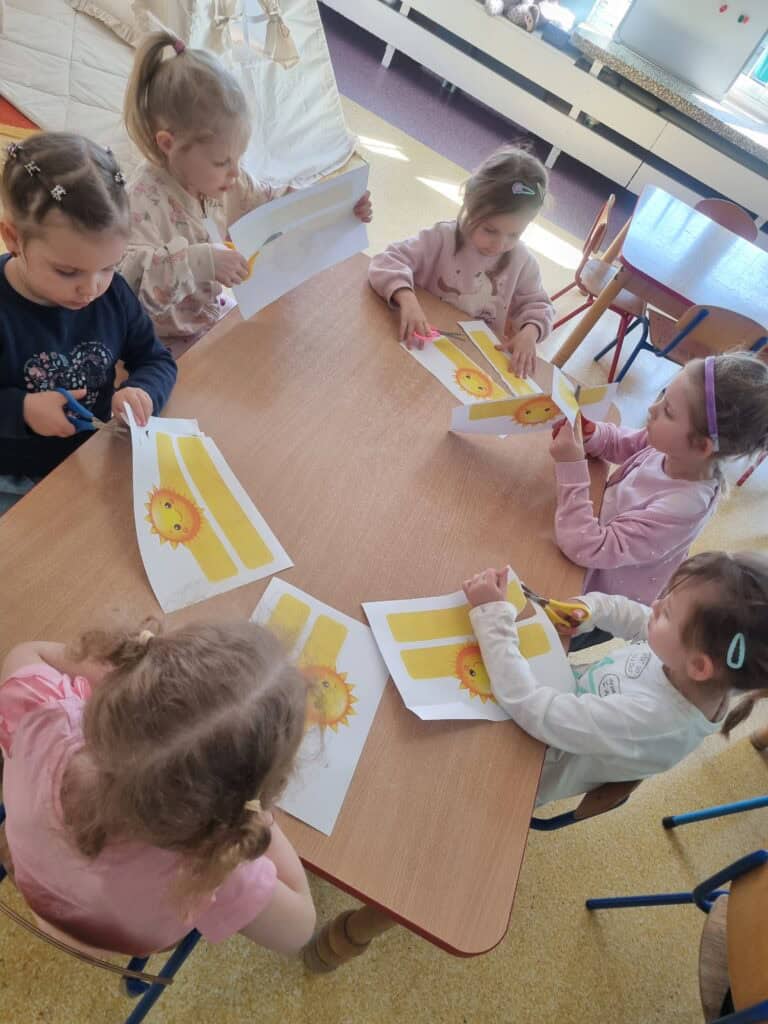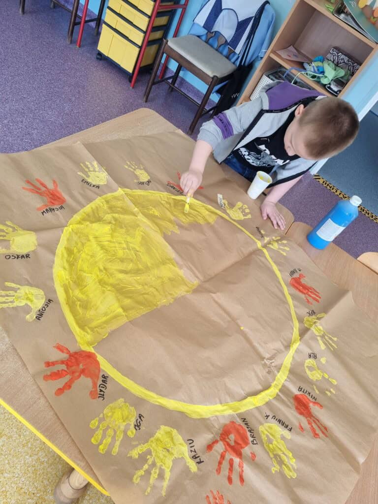 Kolejnym ważnym wydarzeniem był Tydzień Słońca. Przez cały tydzień dzieci uczestniczyły w różnorodnych zajęciach, których głównym motywem był kolor żółty oraz słońce. Każdy dzień przynosił nowe, ciekawe aktywności: od zabaw ruchowych, przez zajęcia plastyczne, aż po rozmowy i obserwacje związane z wiosenną przyrodą. Podsumowaniem Tygodnia Słońca było uroczyste powitanie wiosny. Wspólnie z wszystkimi kolegami z przedszkola dzieci wzięły udział w barwnym korowodzie, z uśmiechem witając nadchodzącą porę roku.