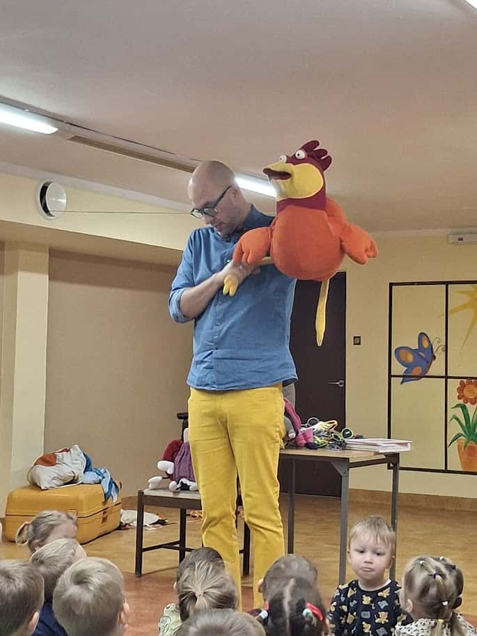 Mieliśmy wyjątkową okazję uczestniczyć w spotkaniu z Panem Poetą – autorem książek dla dzieci, Michałem Czaplińskim. Było to niezwykle ciekawe i inspirujące wydarzenie, które dostarczyło dzieciom wielu radosnych wrażeń. Podczas spotkania dzieci miały możliwość poznać twórczość autora w bardzo atrakcyjnej formie. Pan Poeta zaprezentował swoje książki w sposób pełen humoru, zaangażowania i interakcji, zachęcając dzieci do wspólnej zabawy, aktywnego udziału oraz rozmowy. Nie zabrakło głośnego czytania, śmiechu oraz kreatywnych zabaw związanych z bohaterami jego utworów.