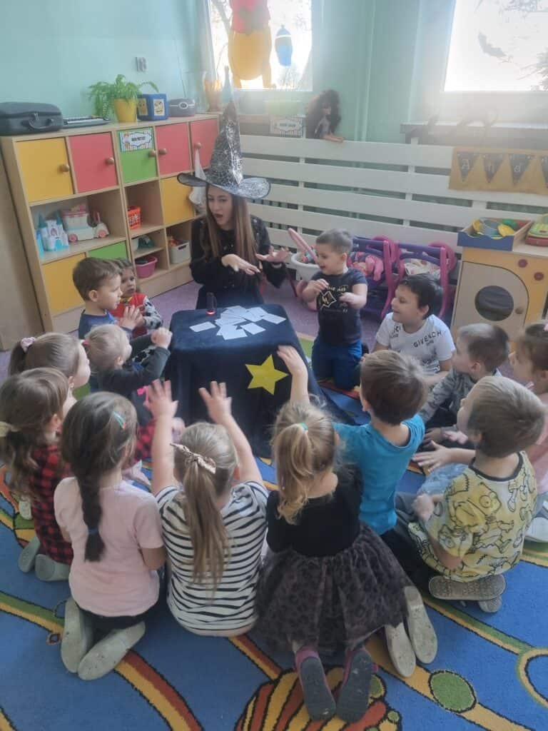30 listopada zapanowała w przedszkolu magiczna atmosfera, ponieważ świętowaliśmy Andrzejki. Motylki przed rozpoczęciem wróżb nauczyły się czarodziejskiego zaklęcia: „Hokus-pokus, czary-mary, niech się spełnią andrzejkowe czary.” To był dzień radosnych zabaw i wróżb. Motylki poznały imię swojej sympatii, jaki zawód w przyszłości będą wykonywać oraz dowiedziały się kto pierwszy weźmie ślub. Oczywiście nie zabrakło tańców wygibasów do dziecięcych piosenek.