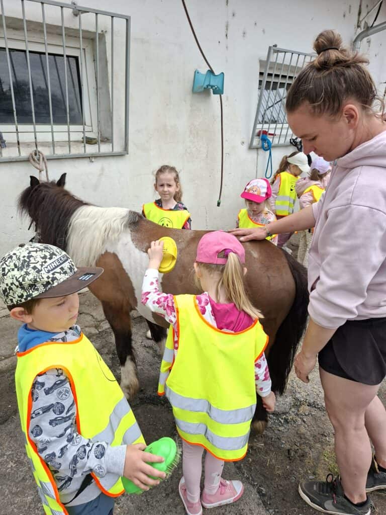 Każdy dzień w przedszkolu jest ciekawy, jednak jest taki dzień w roku, kiedy dzieci czują się szczególnie ważne. To Dzień Dziecka. Z okazji tego święta dzieci wyjechały na wycieczkę do Drzonkowa, by uczestniczyć w warsztatach „Konikowe Love”. Przedszkolaki poznały miejsce, w którym żyją zwierzęta i pracę ludzi im towarzyszących. Na wycieczkę pojechaliśmy autobusem. Dzieci były zachwycone. Czesanie końskich grzyw, piknik, zabawy z mydlanymi bańkami i jazda konna sprawiły, że Biedronki były szczęśliwe.