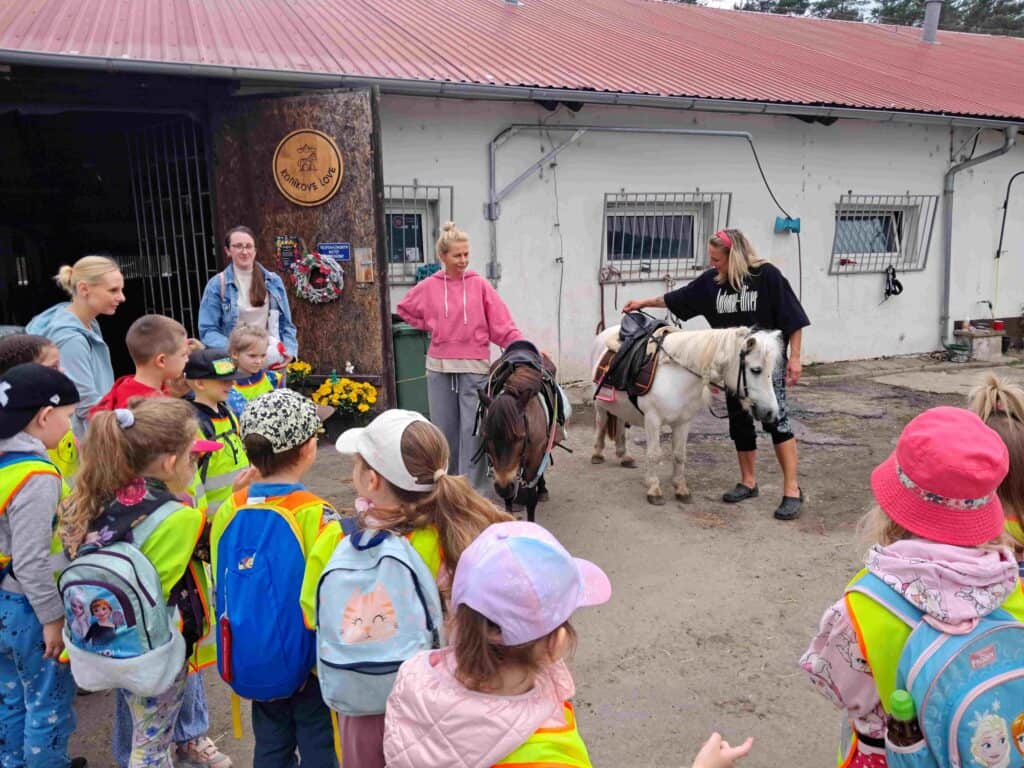Każdy dzień w przedszkolu jest ciekawy, jednak jest taki dzień w roku, kiedy dzieci czują się szczególnie ważne. To Dzień Dziecka. Z okazji tego święta dzieci wyjechały na wycieczkę do Drzonkowa, by uczestniczyć w warsztatach „Konikowe Love”. Przedszkolaki poznały miejsce, w którym żyją zwierzęta i pracę ludzi im towarzyszących. Na wycieczkę pojechaliśmy autobusem. Dzieci były zachwycone. Czesanie końskich grzyw, piknik, zabawy z mydlanymi bańkami i jazda konna sprawiły, że Biedronki były szczęśliwe.