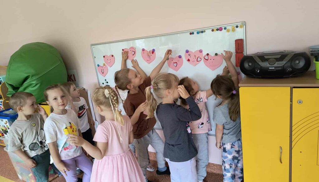 Dzień Przyjaciela nie jest oficjalnym świętem. Ale to nie znaczy, że nie warto go świętować. Przyjaźń jest przecież szalenie wartościowa, a życie bez przyjaciół traci wiele uroku. Przedszkolne przyjaźnie to nieraz przyjaźnie na całe życie, a Dzień Przyjaciela to okazja na wspaniałe zajęcia w przedszkolu. W tym dniu rozmawialiśmy o znaczeniu przyjaźni w naszym życiu, o niezbędnych cechach prawdziwego przyjaciela. Wykonaliśmy także pracę plastyczną – serduszko dla przyjaciela.