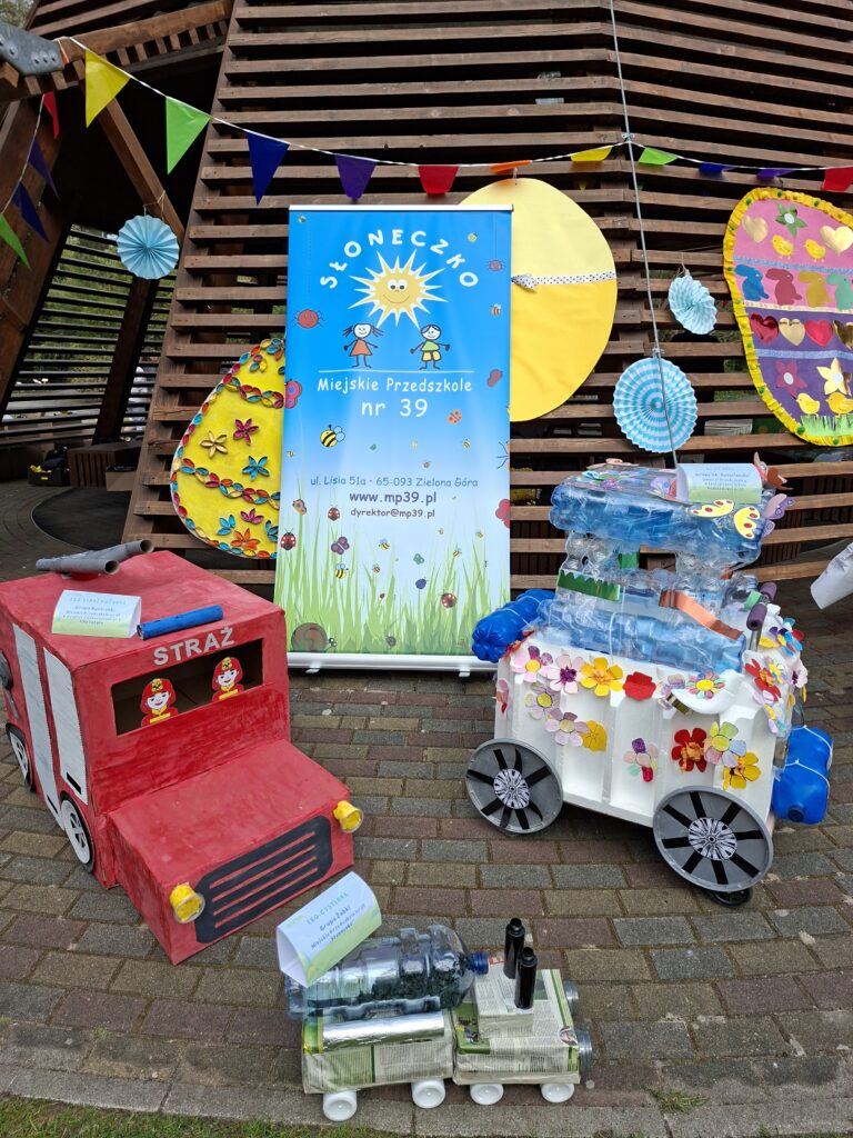 I miejsce – Oddział Przedszkolny Grupa 0A „Naturlandia” Ekologiczna Szkoła Podstawowa nr 22 z Oddziałem Integracyjnym im. Unii Europejskiej w Zespole Szkół Ekologicznych za pracę „Kfiat” – ekologiczny pojazd pełen kolorów i detali, wykonany z butelek, styropianu i kwiatków.