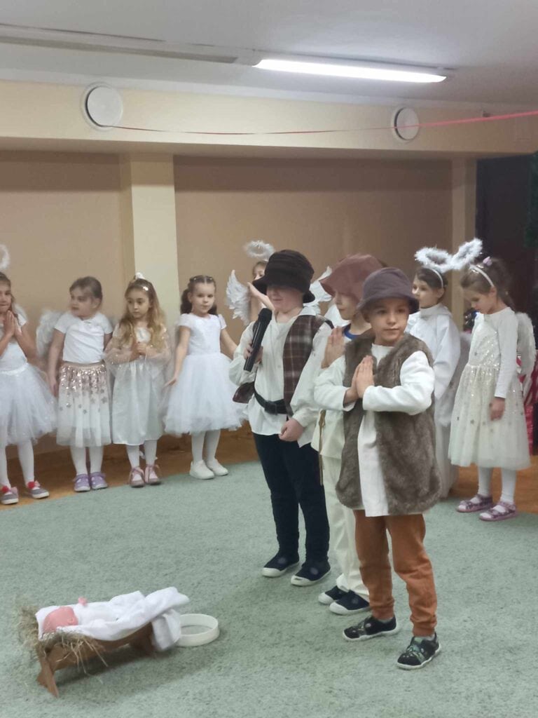 Kolejnym wydarzeniem był „Jasełkowy koncert świąteczny”, na który zaproszeni zostali rodzice. W atmosferze zbliżających się Świąt Bożego Narodzenia dzieci zaprezentowały pastorałki i tańce oparte na kanwie Jasełek.