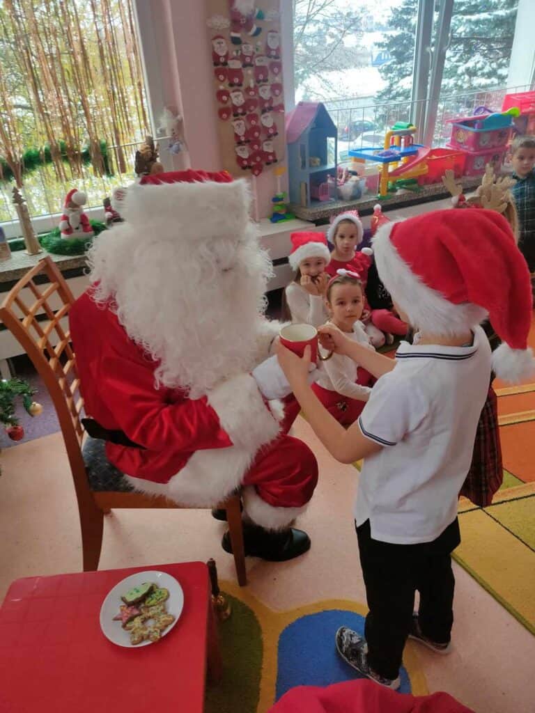 6 grudnia dzieci odwiedził wyczekiwany Mikołaj. Misie ugościły Go pierniczkami i mleczkiem. Mikołaj obdarował dzieci bogatymi prezentami, oraz zostawił zabawki do zabaw w przedszkolu. Były rownież zabawy taneczno-muzyczne z naszym Gościem.