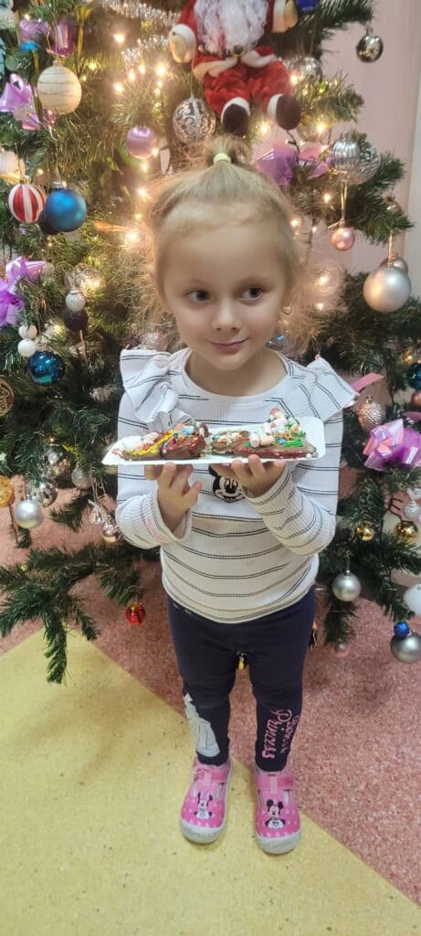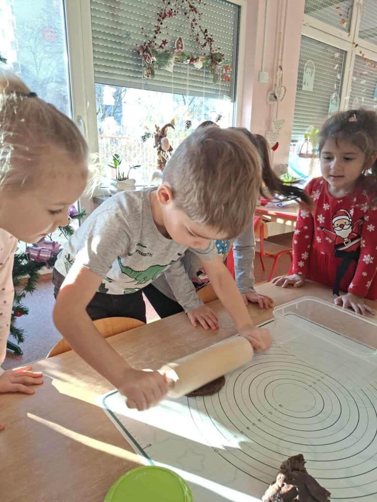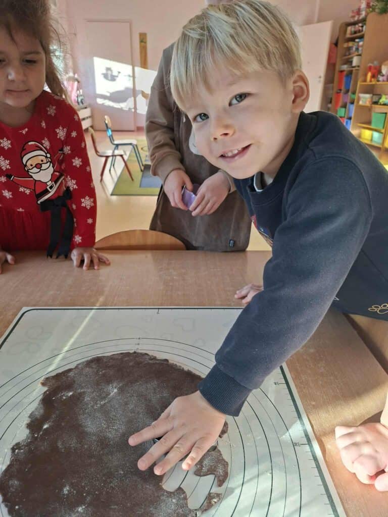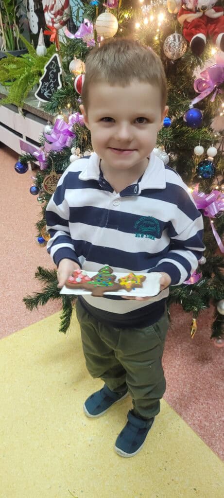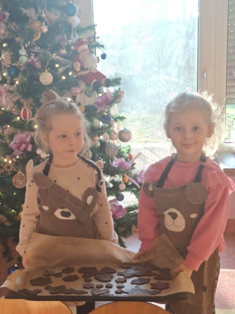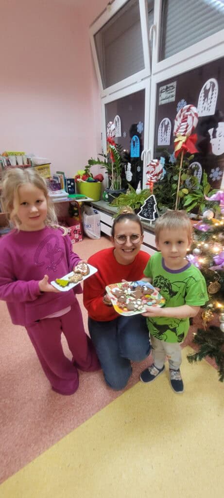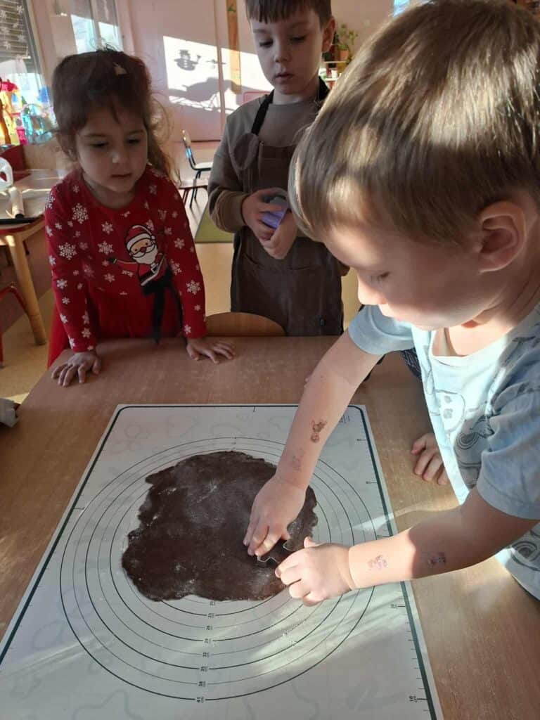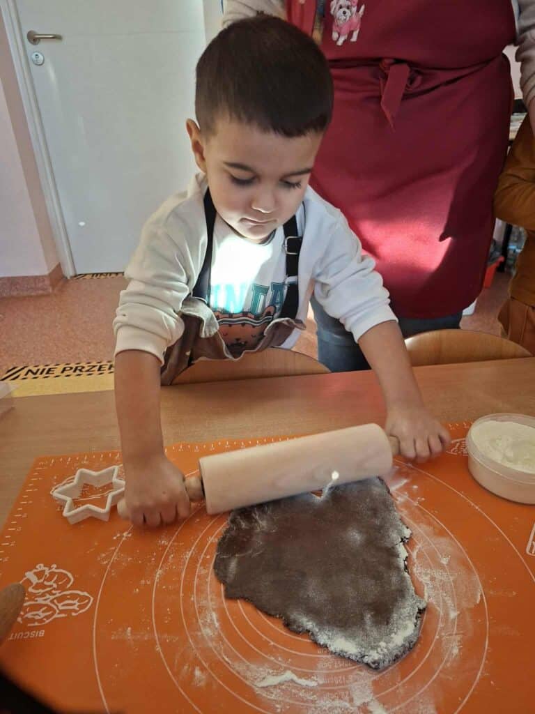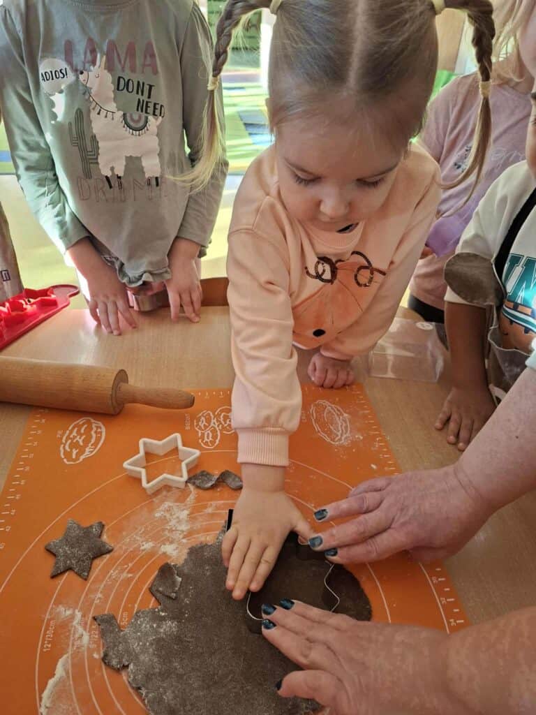 Zorganizowaliśmy również warsztaty pierniczkowe. Dzieci pomagały w przygotowywaniu pierniczków, a później wspólnie z zaproszonymi rodzicami dekorowaliśmy pierniczkowe wypieki.
