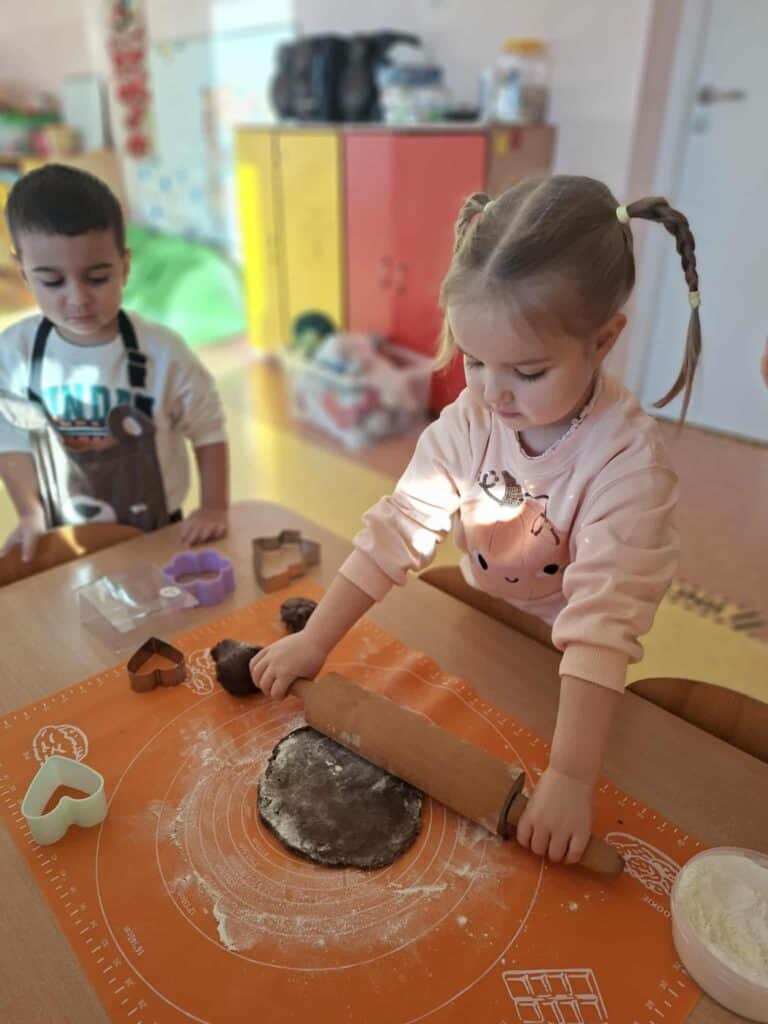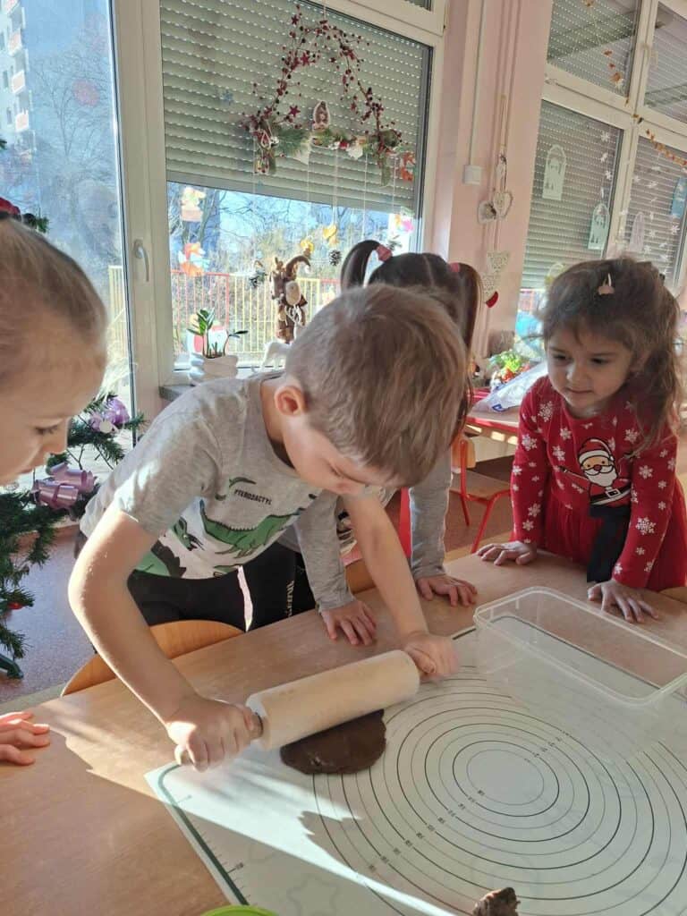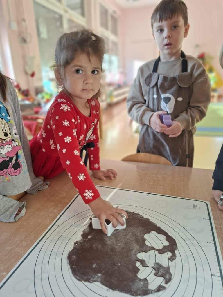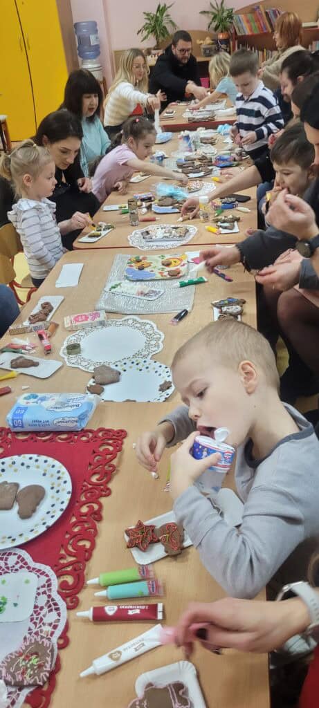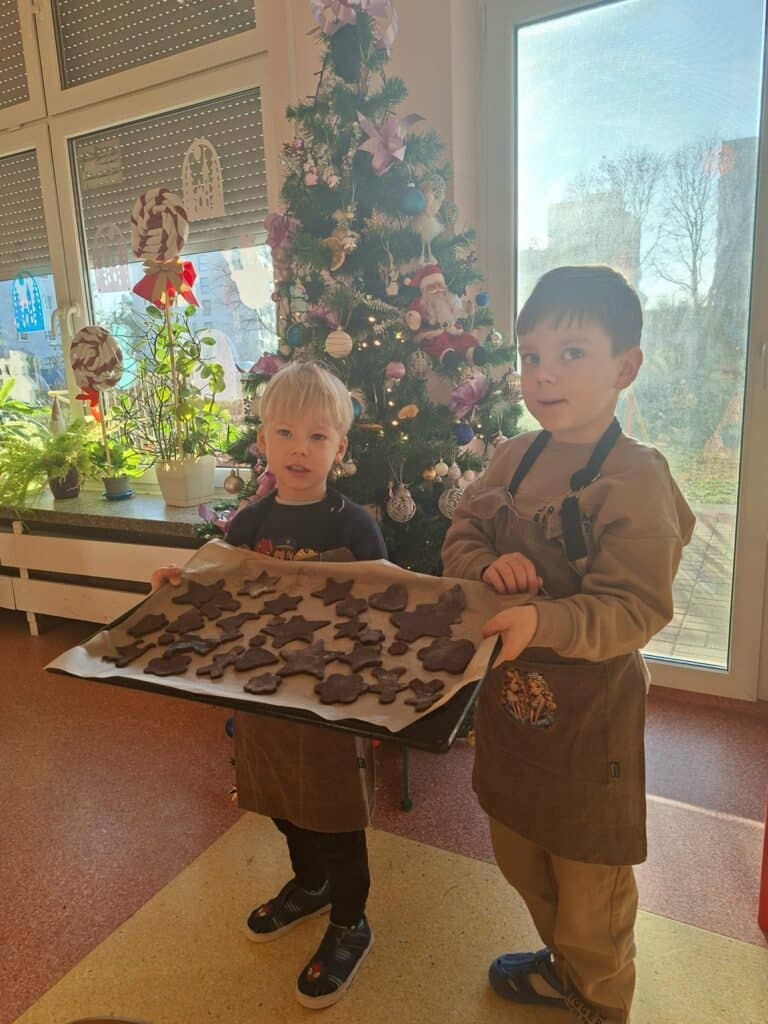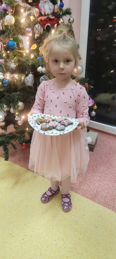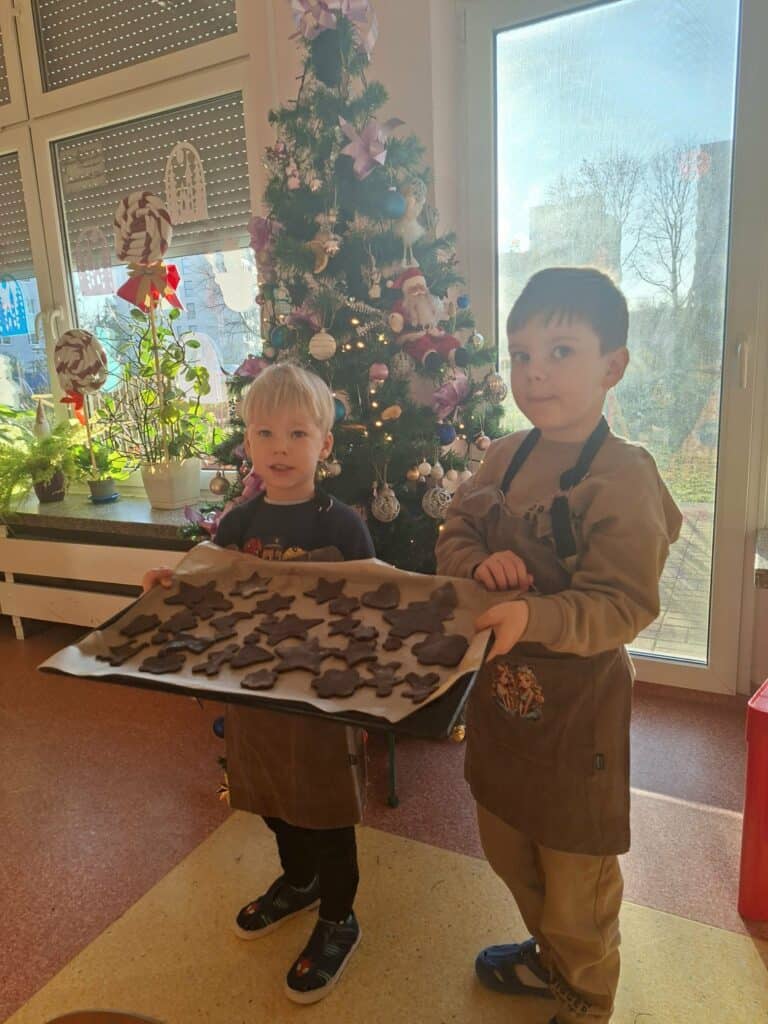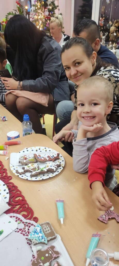 Zorganizowaliśmy również warsztaty pierniczkowe. Dzieci pomagały w przygotowywaniu pierniczków, a później wspólnie z zaproszonymi rodzicami dekorowaliśmy pierniczkowe wypieki.