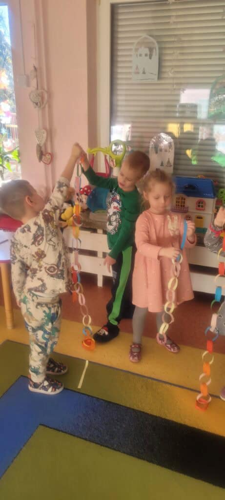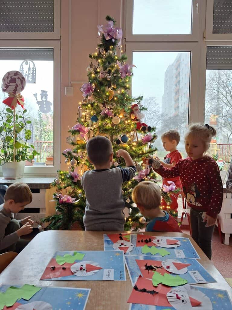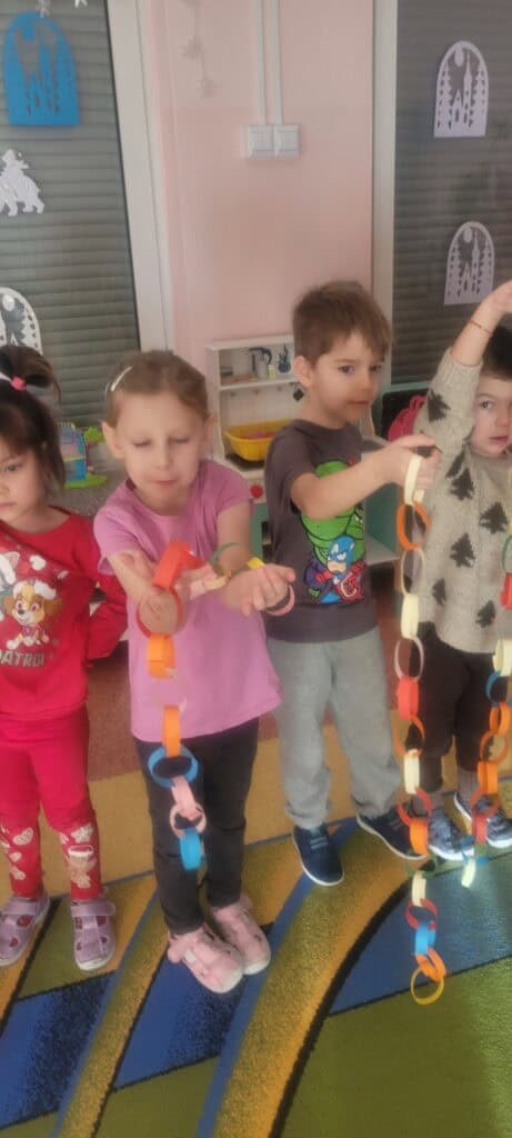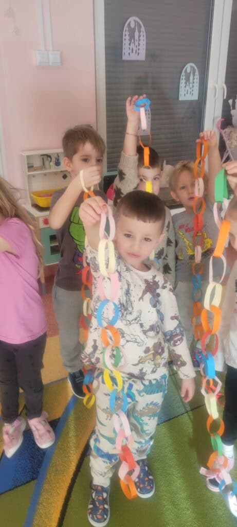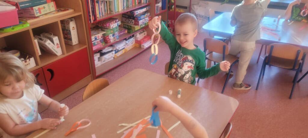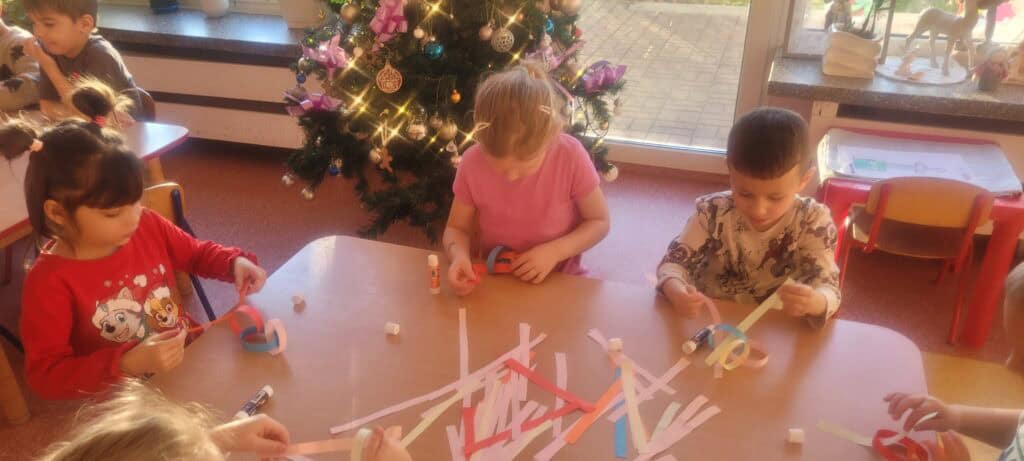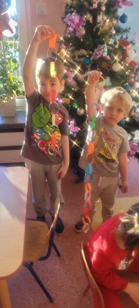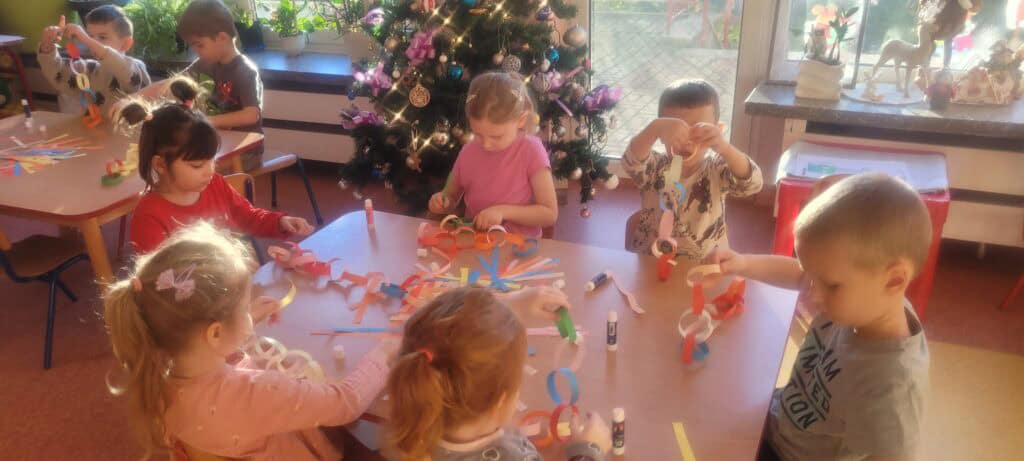 Przygotowania do Świąt Bożego Narodzenia obfitowały w różnorodne prace plastyczne. Dzieci wykonywały łańcuchy na choinkę, tworzyły papierowe choinki i Mikołaje.