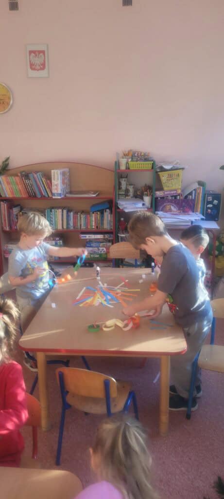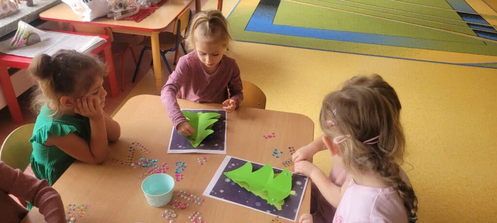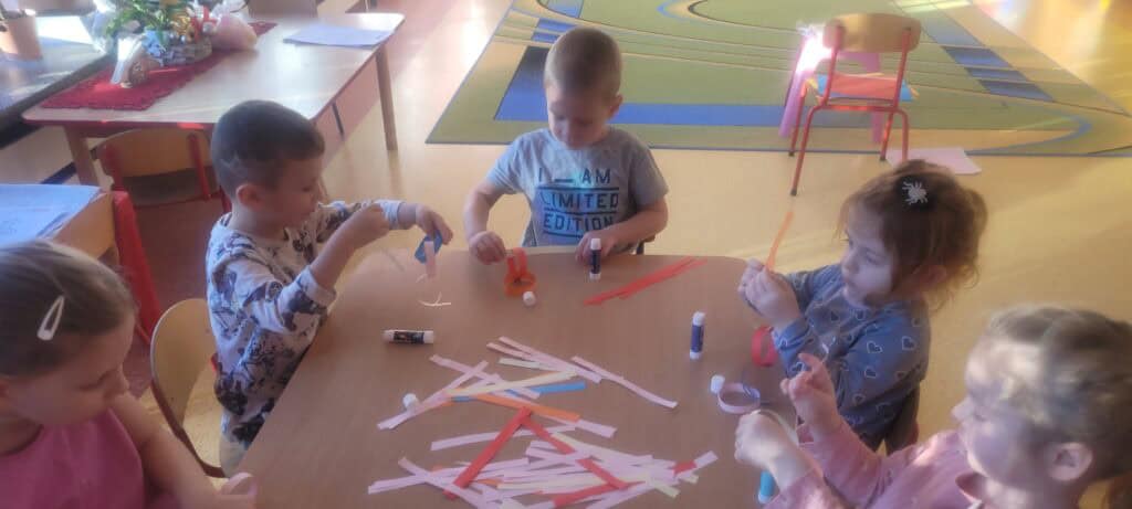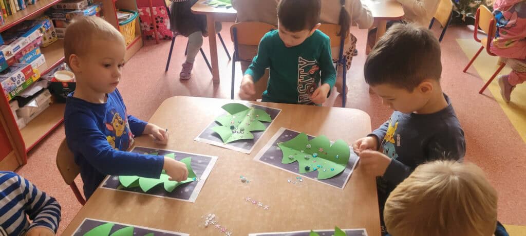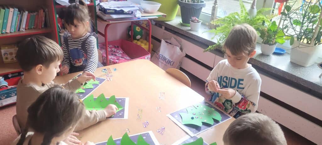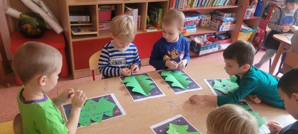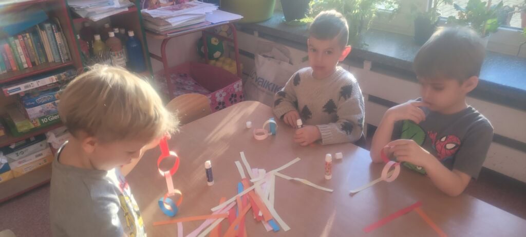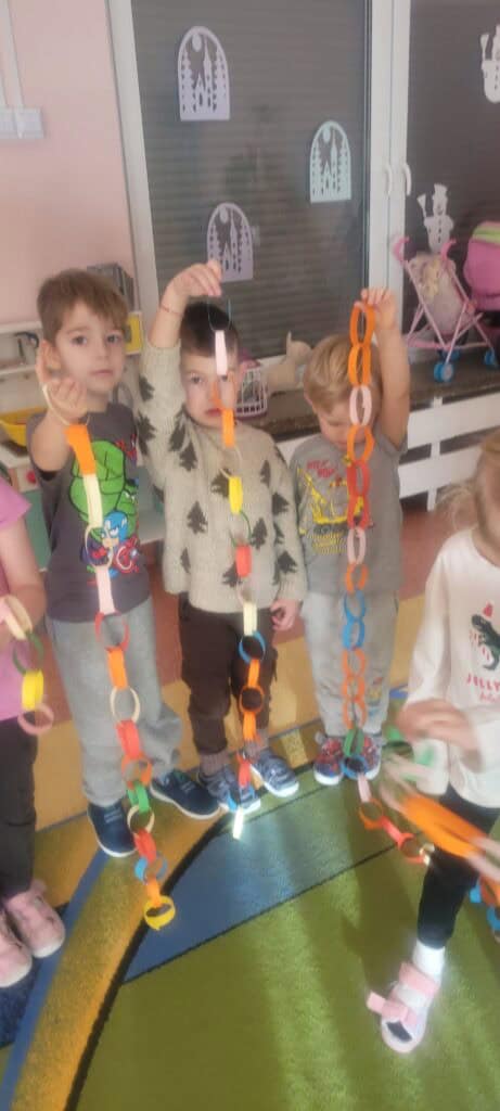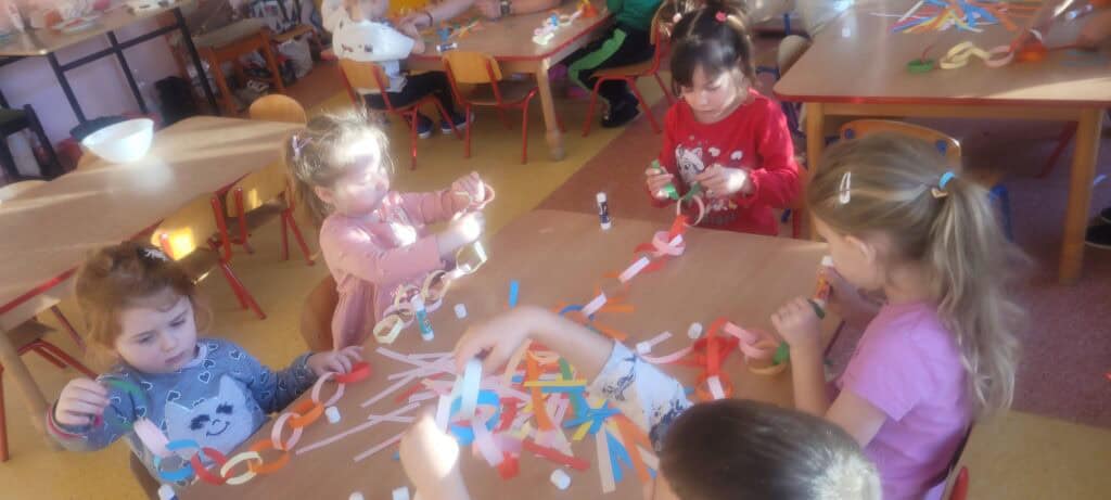 Przygotowania do Świąt Bożego Narodzenia obfitowały w różnorodne prace plastyczne. Dzieci wykonywały łańcuchy na choinkę, tworzyły papierowe choinki i Mikołaje.