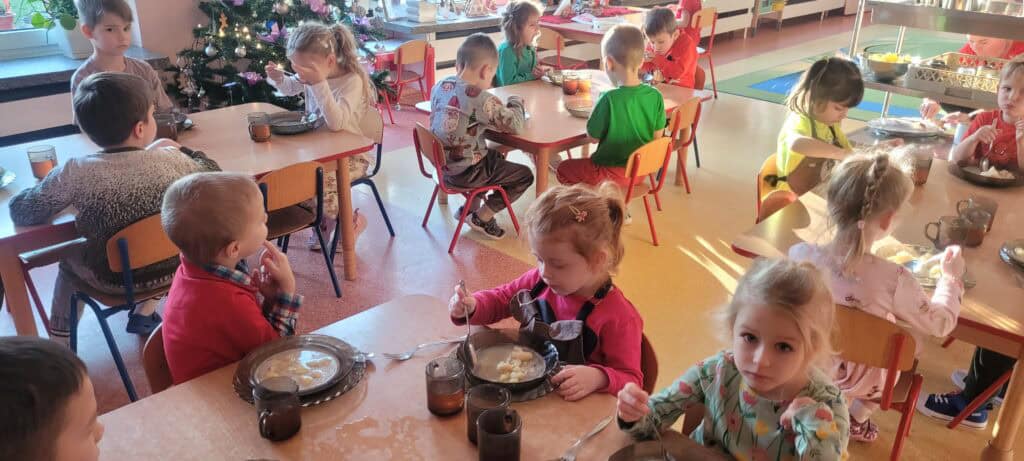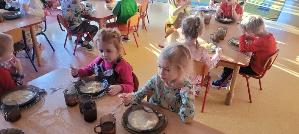 W grudniu w ramach projektu „Poznajemy Świat – Kuchnie świata”, dzieci miały okazję zapoznać się z ciekawostkami na temat Norwegii, poznały jak wygląda flaga tego kraju i posmakowały norweskich potraw.