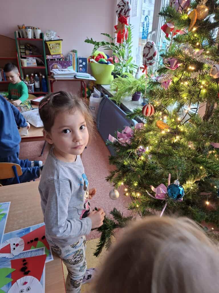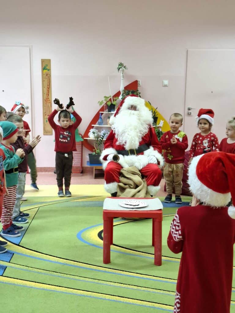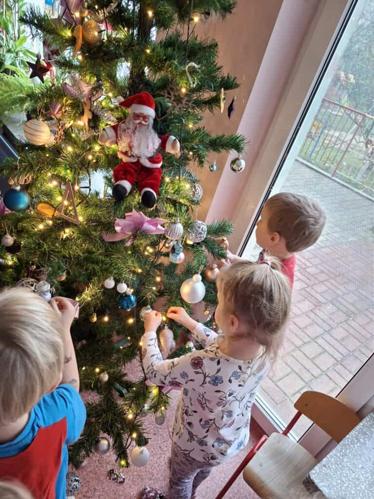 Grudzień w naszej grupie to czas przygotowań i oczekiwanie na wizytę Mikołaja. Dzieci wspólnie ubierały choinkę i dekorowały salę, aby przyjąć znamienitego gościa.