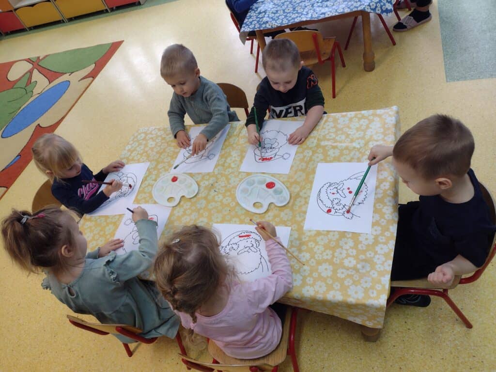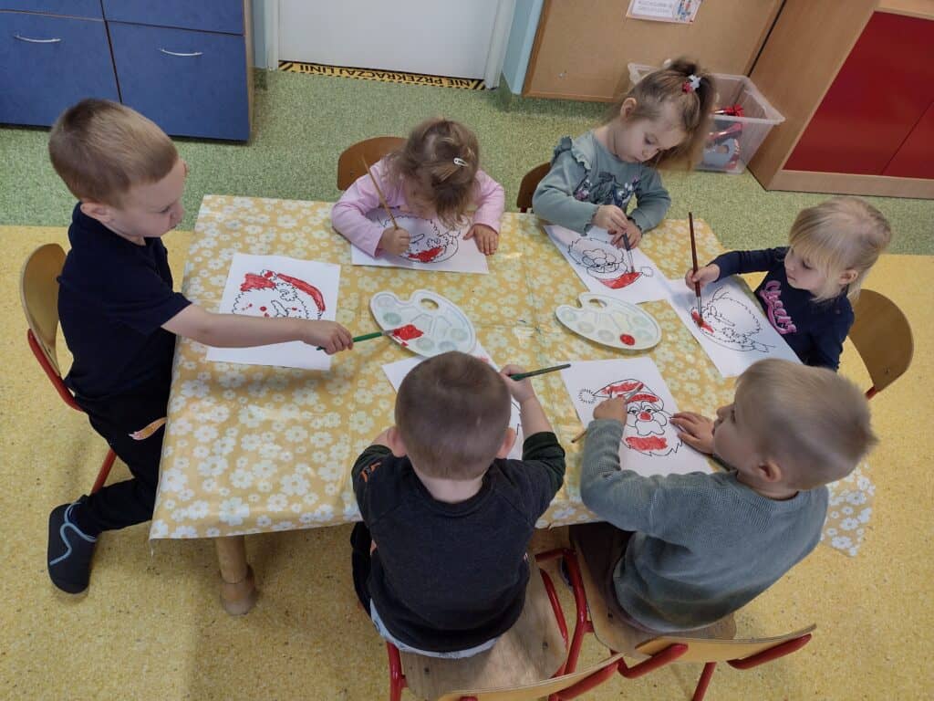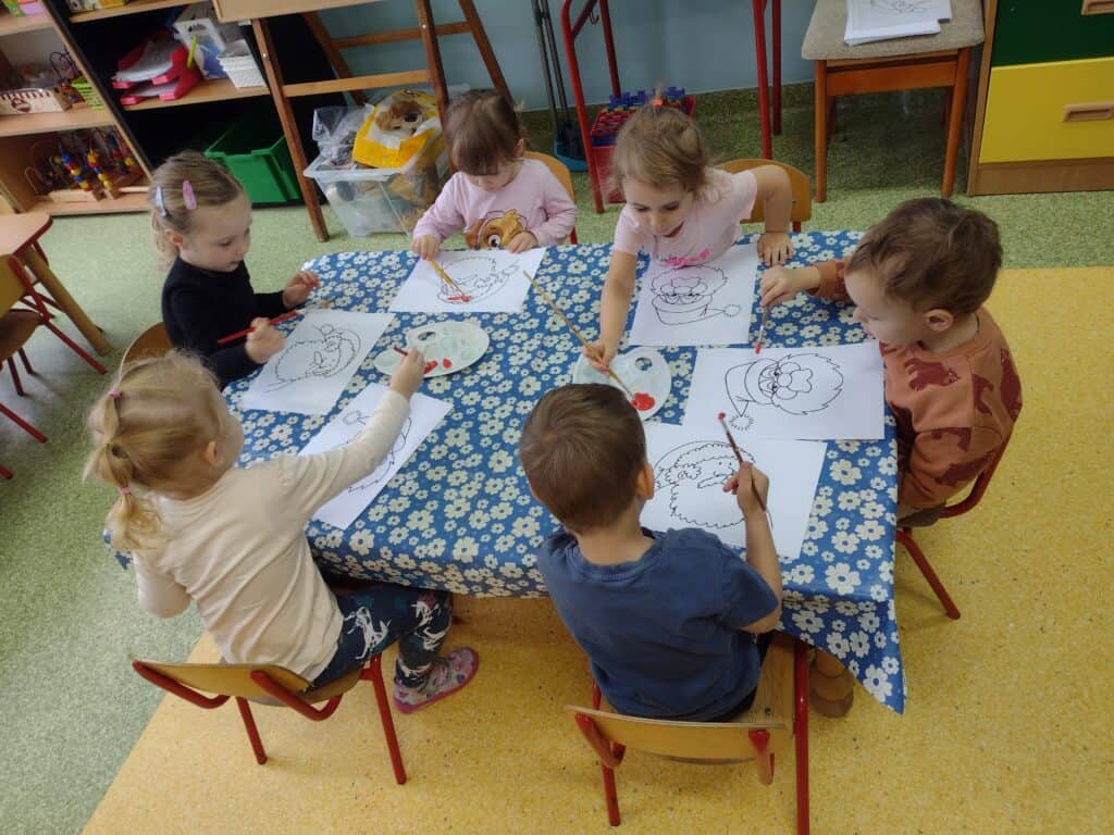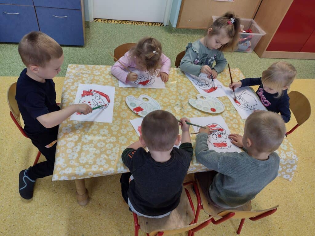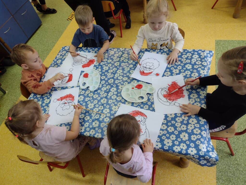 W grudniu radość i świąteczny nastrój zagościły w naszej grupie. Pszczółki z wytęsknieniem oczekiwały na wizytę Świętego Mikołaja. Aby umilić sobie czas oczekiwania dzieci wzięły udział w kreatywnych zajęciach plastycznych, tworząc piękne obrazki z podobizną Mikołaja.