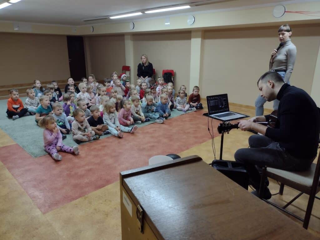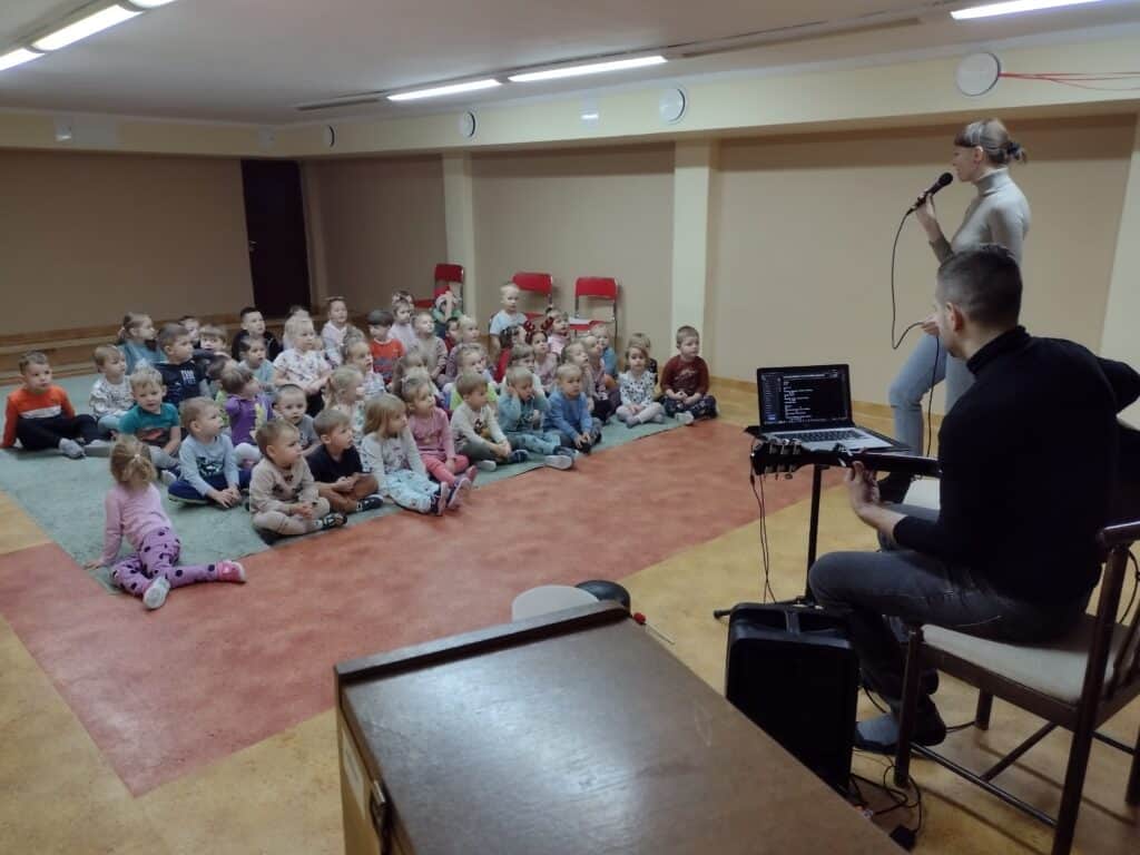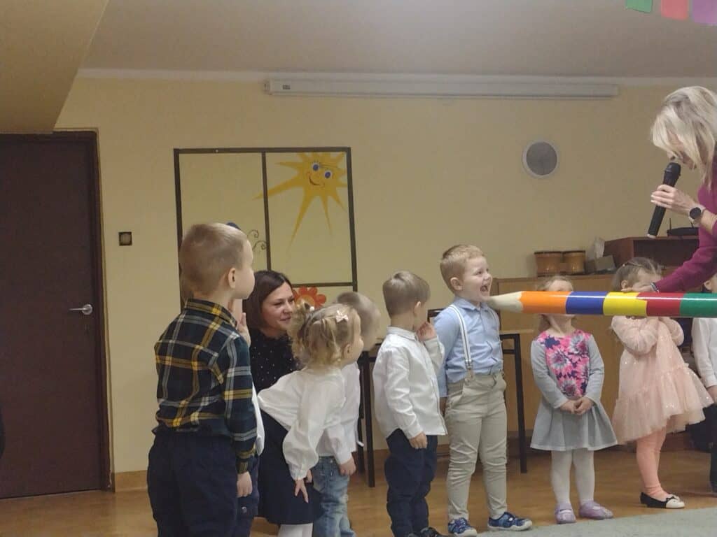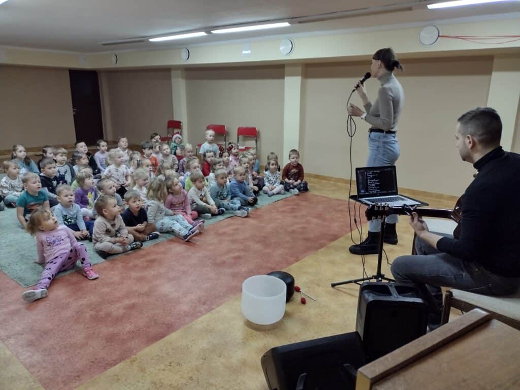 7 grudnia dzieci wzięły udział w spotkaniu z niezwykłym artystą – Onkomuzykiem Michałem Dreznerem. Spotkanie z panem Michałem miało wyjątkowy charakter, wszyscy razem wzięliśmy udział w radosnym kolędowaniu. Dzieci śpiewały znane kolędy, tworząc magiczną atmosferę świąt.