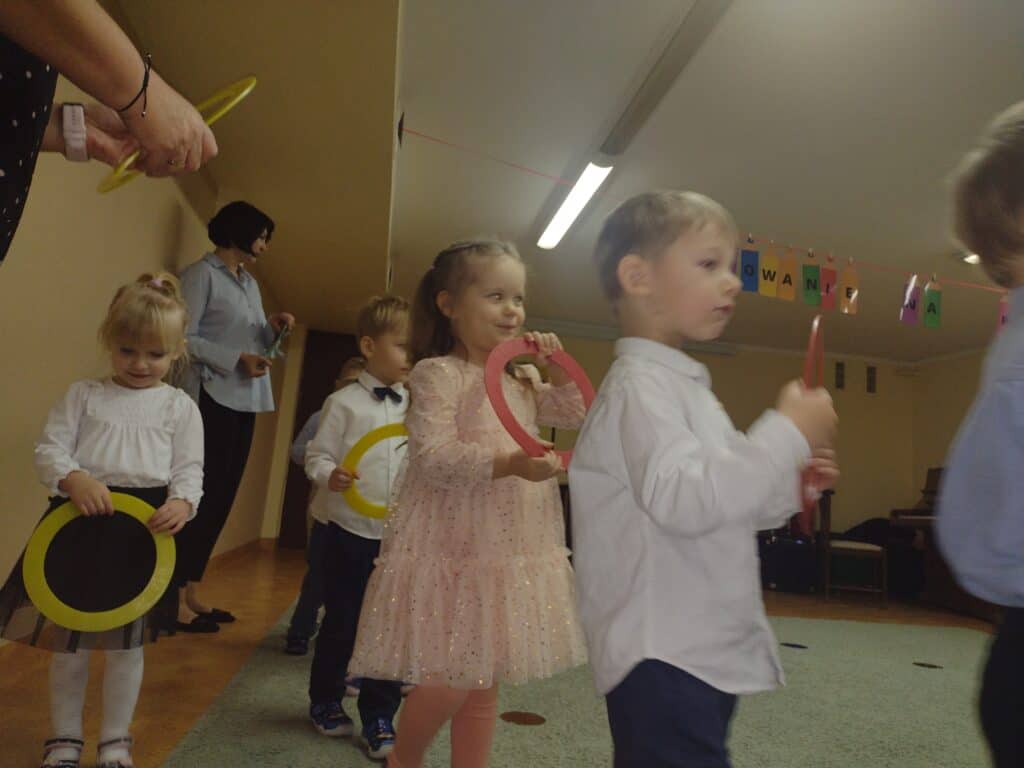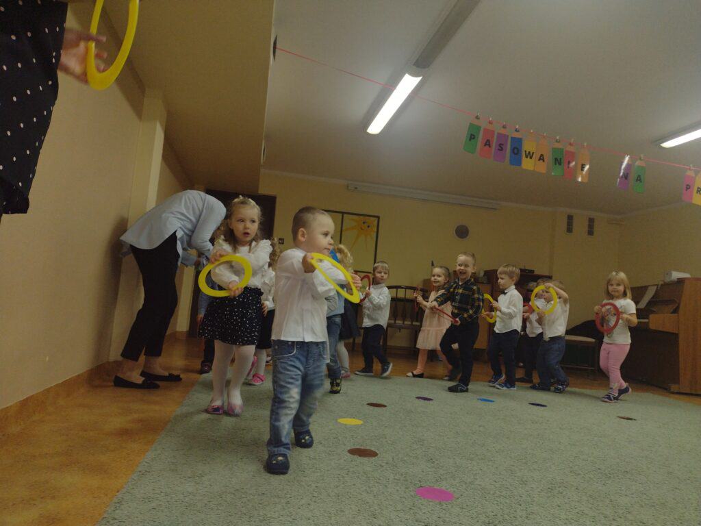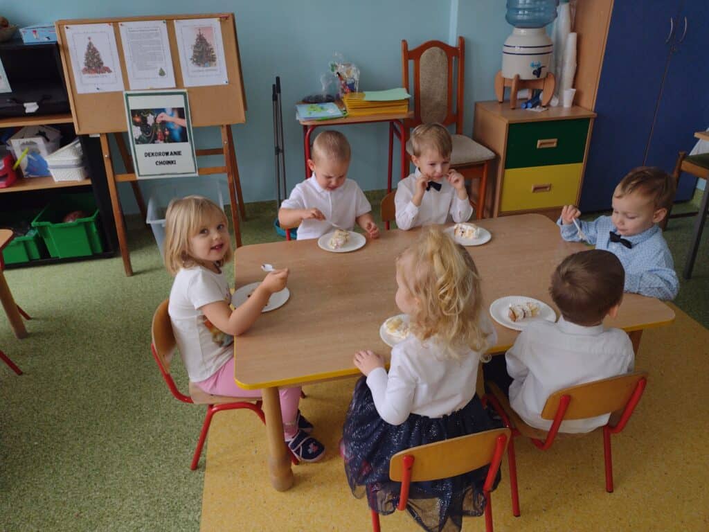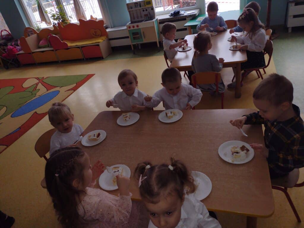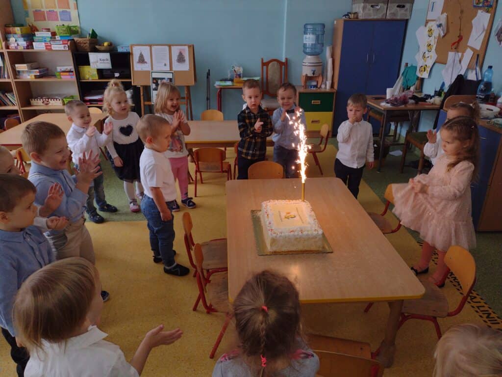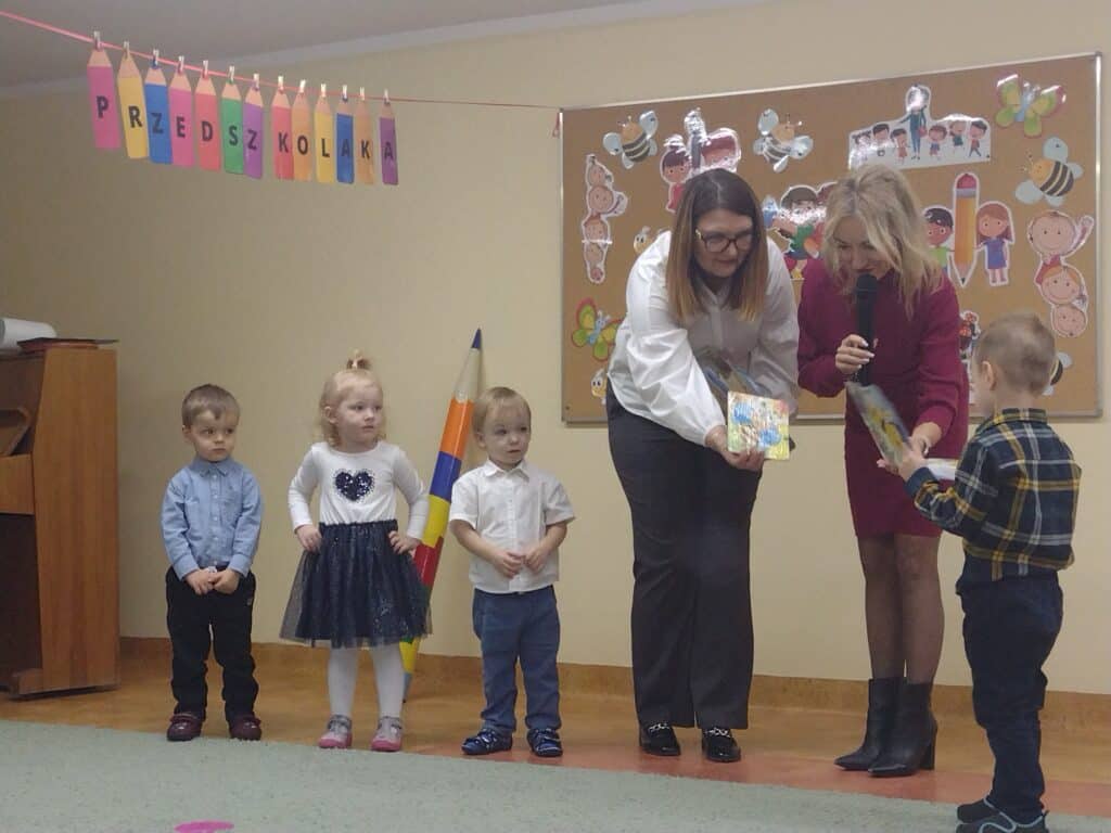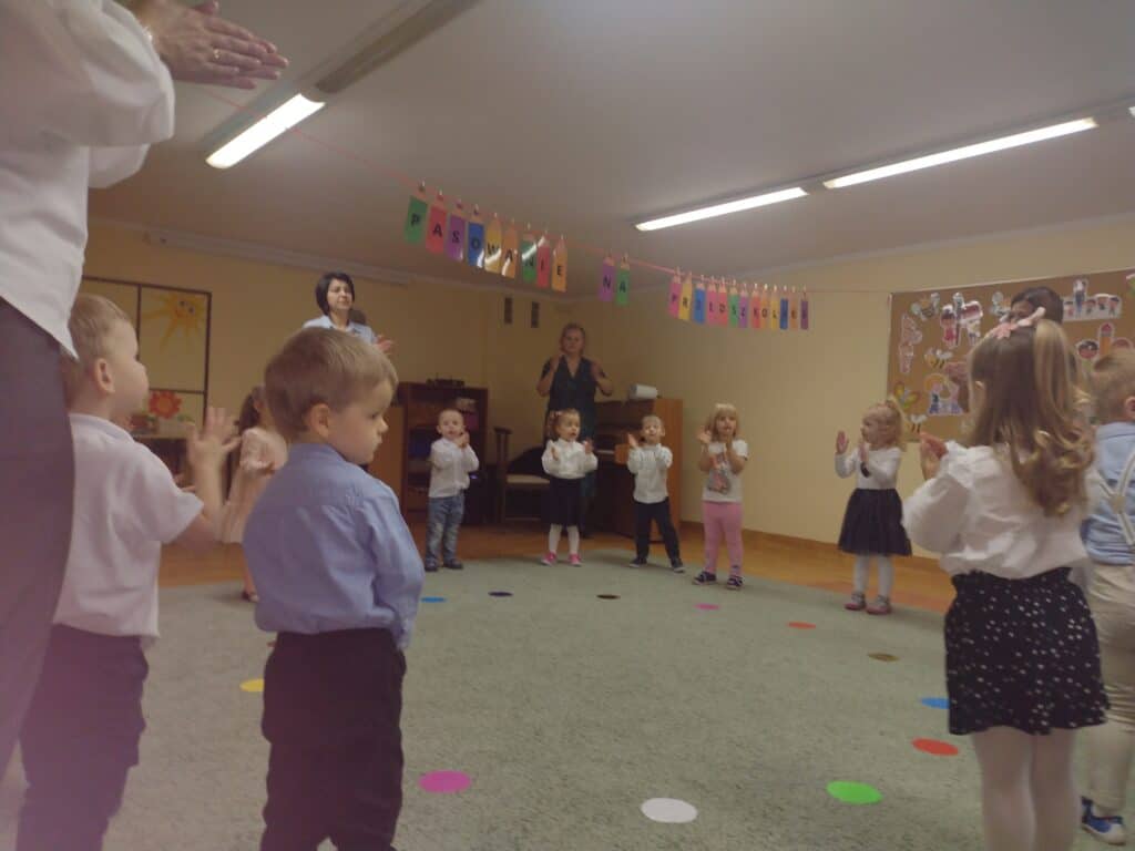 8 grudnia odbyła się w naszym przedszkolu uroczystość z okazji Pasowania na Przedszkolaka naszych maluchów. Tego dnia Pszczółki z radością wystąpiły po raz pierwszy przed rodzicami. Zaprezentowały swoje umiejętności taneczne i wokalne, emanując radościom i entuzjazmem. Na koniec występu Pani Basia, w zastępstwie Pani Dyrektor, indywidualnie pasowała każde dziecko na przedszkolaka. Dzieci otrzymały dyplomy potwierdzające ich oficjalne wejście w przedszkolną przygodę. Dodatkowo, jako pamiątkę, każde dziecko otrzymało także uroczy upominek – puzzle w kształcie Pszczółki. Po uroczystości czekała na naszych maluchów słodka niespodzianka – pyszny tort, który został zjedzony w atmosferze śmiechu i radości. Po oficjalnej części uroczystości dzieci wzięły udział we wspólnych zabawach tanecznych. Energia, śmiech i beztroska maluchów sprawiły, że sala rozbrzmiewała radosnym gwarem.
