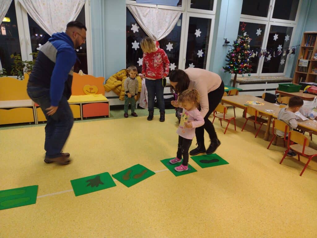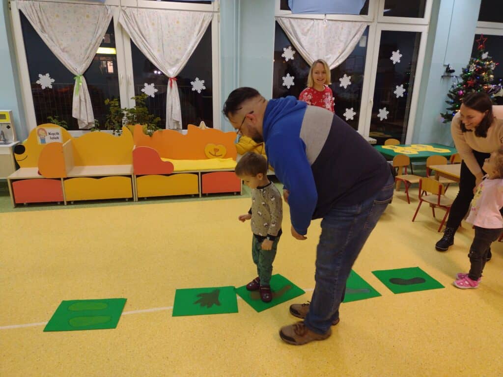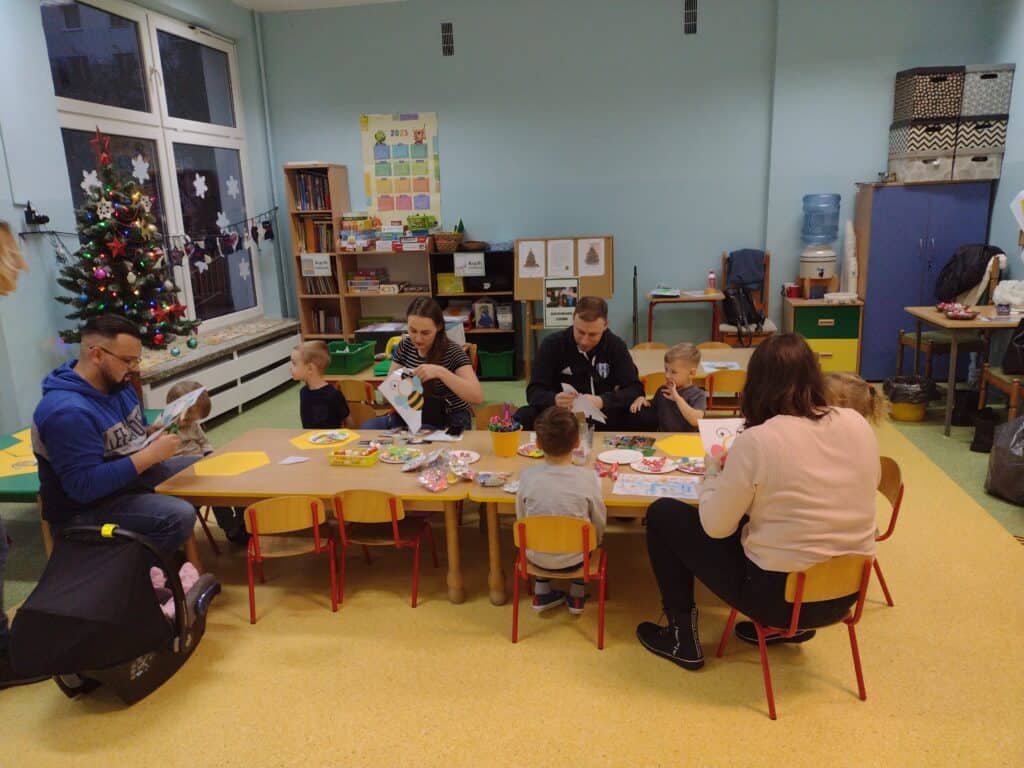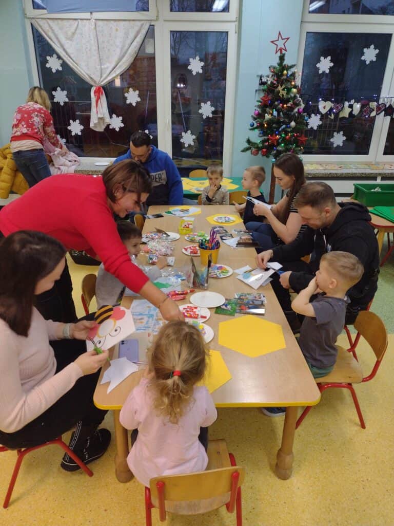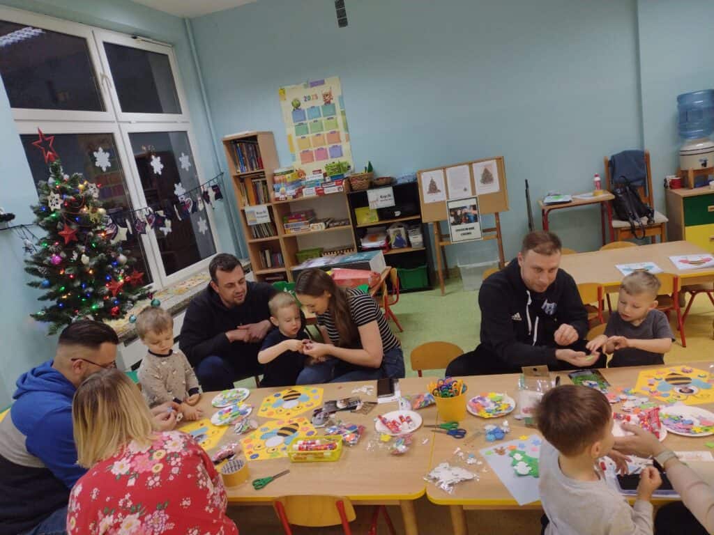 14 grudnia odbyły się w naszej grupie warsztaty „Super Mama” i „Super Tata” z udziałem rodziców i ich pociech. Dzieci z rodzicami tworzyły niezwykłe pszczółki, przyklejając zdjęcia swoich buziek do sylwet. Powstały w ten sposób urocze pszczółki, będące wyrazem kreatywności naszych maluchów. Nie zabrakło też sportowych rywalizacji dla rodziców i dzieci. Za aktywny udział i pełne zaangażowanie rodzice otrzymali specjalne medale. Dla mam – „Super Mama”, a dla Tatusiów „ Super Tata”. To symboliczne wyróżnienie dla tych wyjątkowych osób, które wspierają swoje dzieci na każdym etapie ich rozwoju. Warsztaty okazały się być nie tylko doskonałą zabawą, ale również okazją do integracji i wspólnego śmiechu.