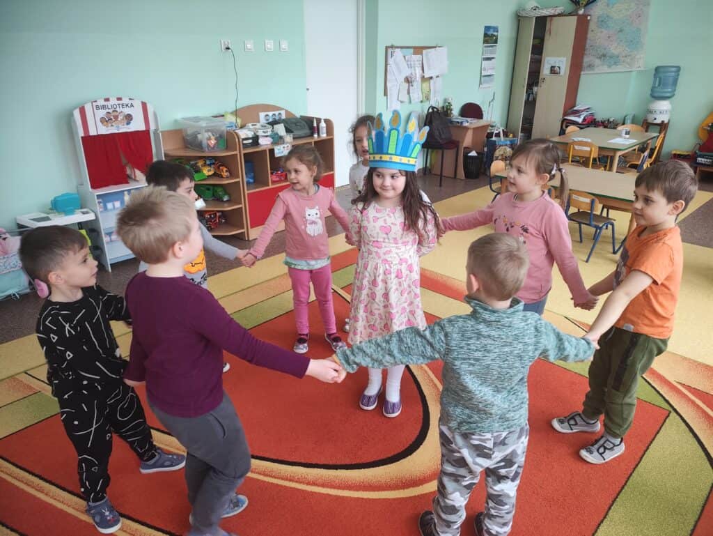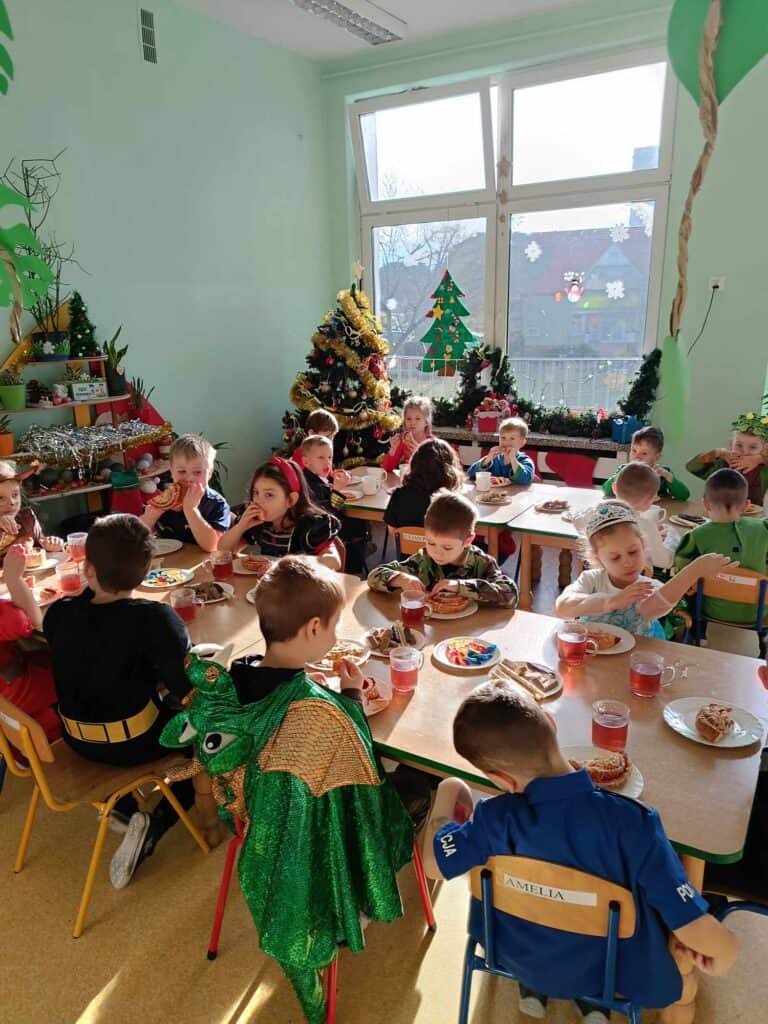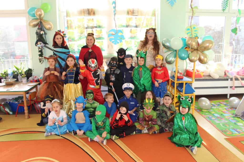 Głównym wydarzeniem tego miesiąca oczywiście był… Bal Karnawałowy! Ale to było szaleństwo! Tematem przewodnim naszego balu był “Zaczarowany Las”. Panie przystroiły salę, z sufitu wisiały liany, a na oknie wisiał prawdziwy portal do zaczarowanego lasu! Dzieci zaskakiwały przebraniami, był batman, wiewiórka, leśniczy, księżniczki, żółwie, policjanci, krasnoludek, superbohaterowie, smoki, sonic, pilot i wiele, wiele innych! Nasze Panie również się przebrały i wszyscy tworzyliśmy naprawdę zgrany zespół. Bawiliśmy się w “gorące figury geometryczne”, “zaczarowaną chustę”, a także nauczycielki przygotowały konkursy w których mogliśmy wygrać nagrody. Oczywiście na stołach zagościły słodkie przekąski, ale nie zabrakło zdrowych soków i owoców! Każdy mógł znaleźć coś dla siebie. Nie zapominajmy o wspaniałej zabawie z animatorem, który pozytywnie nas wymęczył! Wszyscy bawili się wspaniale!