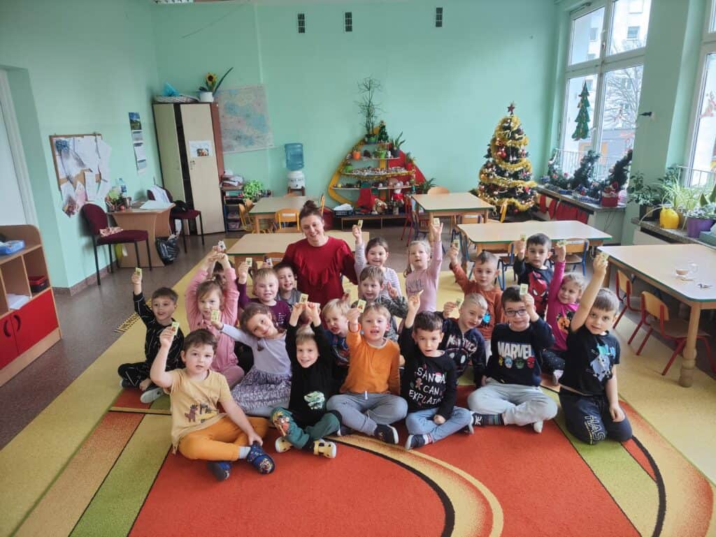 Już 4 stycznia odwiedziła nas mama Jana W., która opowiedziała o pracy w fabryce czekolady. Dowiedzieliśmy się, że czekolada powstaje z małych ziarenek i potrzeba wiele pracy, by znalazła się w kolorowym opakowaniu. Co ciekawsze, mama Jana pracuje jako ktoś, kto tę czekoladę próbował, sprawdzał czy nie ma w niej niepożądanych gości czyli bakterii! Oczywiście nie obyło się bez tego, aby i dzieci mogły spróbować jak smakuje czekolada właśnie z takiej fabryki. Co ciekawe – tej czekolady nie znajdziemy u nas na półkach sklepowych, bo jest ona wysyłana za granicę!