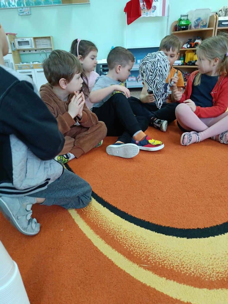 Niedługo później odbył się w naszym przedszkolu koncert, ale nie taki zwykły koncert! Panowie grali na przeróżnych instrumentach, zapraszając dzieci do tańca przy rytmach bałkańskich. Żabki bawiły się świetnie, tańczyły, klaskały i śpiewały dobrze znane im hity, bo i takie zostały zagrane.