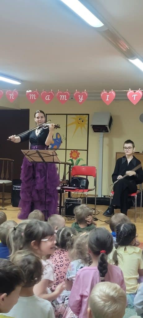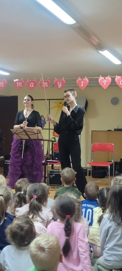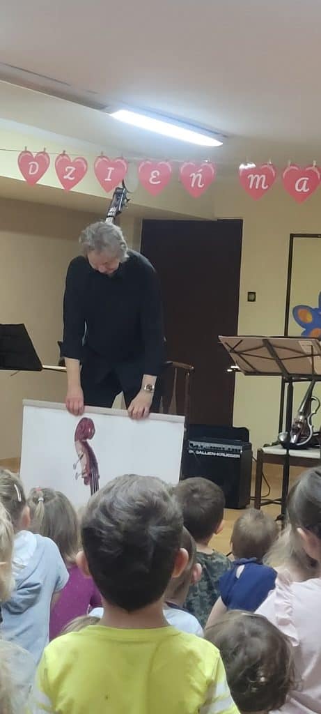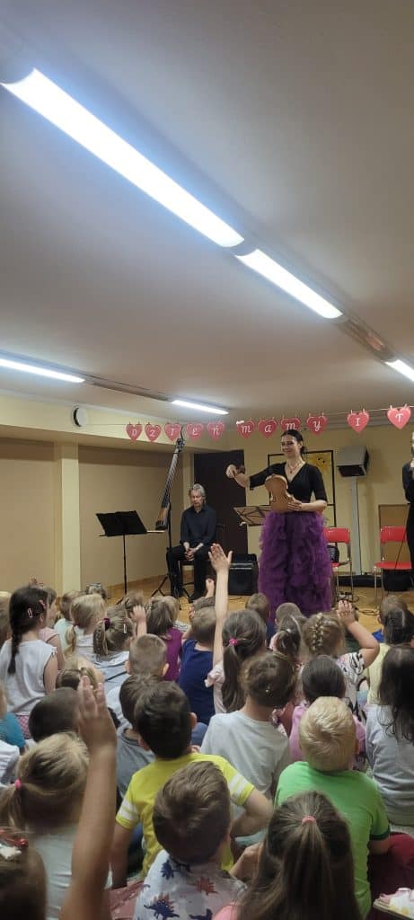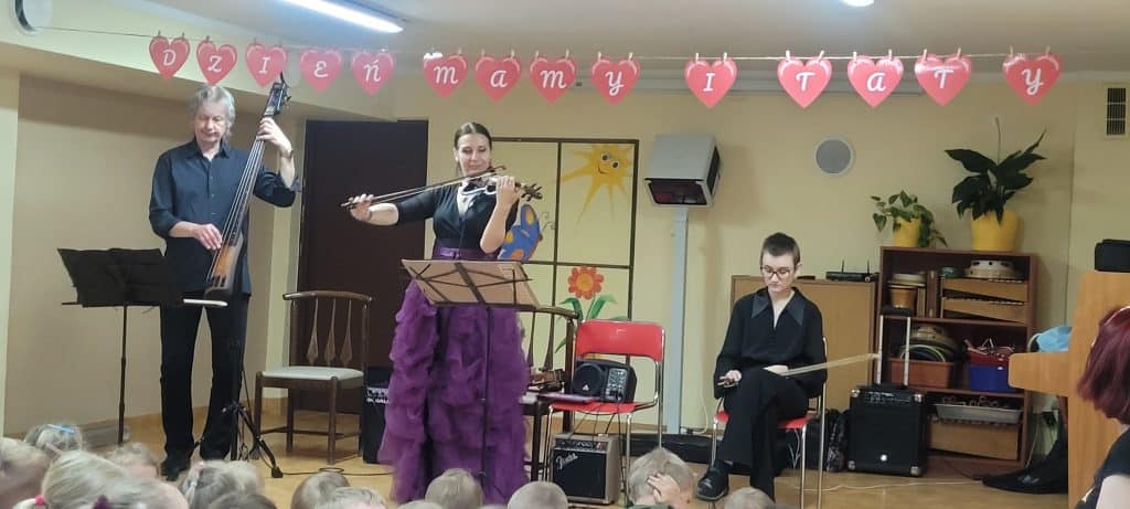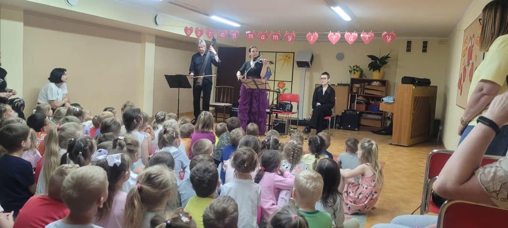 28 maja 2024 r. w naszym przedszkolu odbył się ostatni w tym roku koncert Lubuskiego Biura Koncertowego pt. „O skrzypcach, które zgubiły duszę”. Dzieci z dużym zainteresowaniem podziwiały instrumenty i sposób, w jaki za pomocą smyczka można wydobyć z nich dźwięki. Zaprezentowane zostały skrzypce elektryczne i tradycyjne oraz kontrabas. Przedszkolaki poznały budowę instrumentów smyczkowych, szukały w instrumencie duszy i z zainteresowaniem słuchały utworów, w których główną rolę grały skrzypce. Na spotkaniu instrumenty opowiedziały o tym jak skrzypce zgubiły duszę i musiały iść do lutnika-lekarza instrumentów smyczkowych. Oczywiście, skrzypce mają duszę a także korpus, główkę i szyjkę. Duszę posiada też kontrabas. Niestety nie mają jej instrumenty elektryczne. Niezwykła lekcja muzyki pozwoliła dzieciom poznać i porównać brzmienie instrumentów klasycznych i elektrycznych oraz doświadczyć pięknej muzyki na żywo.