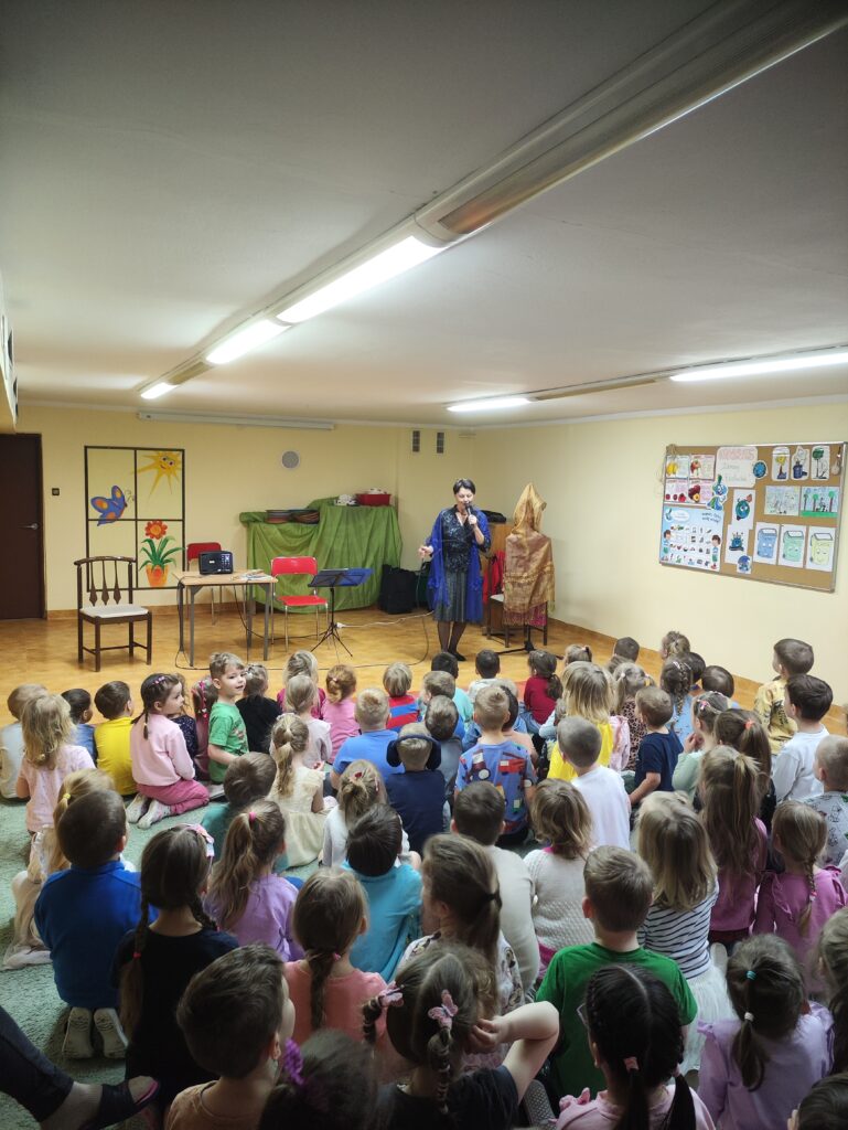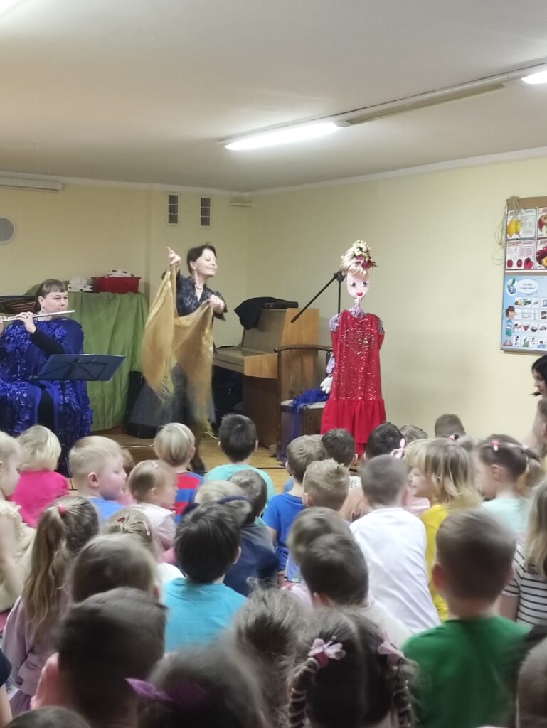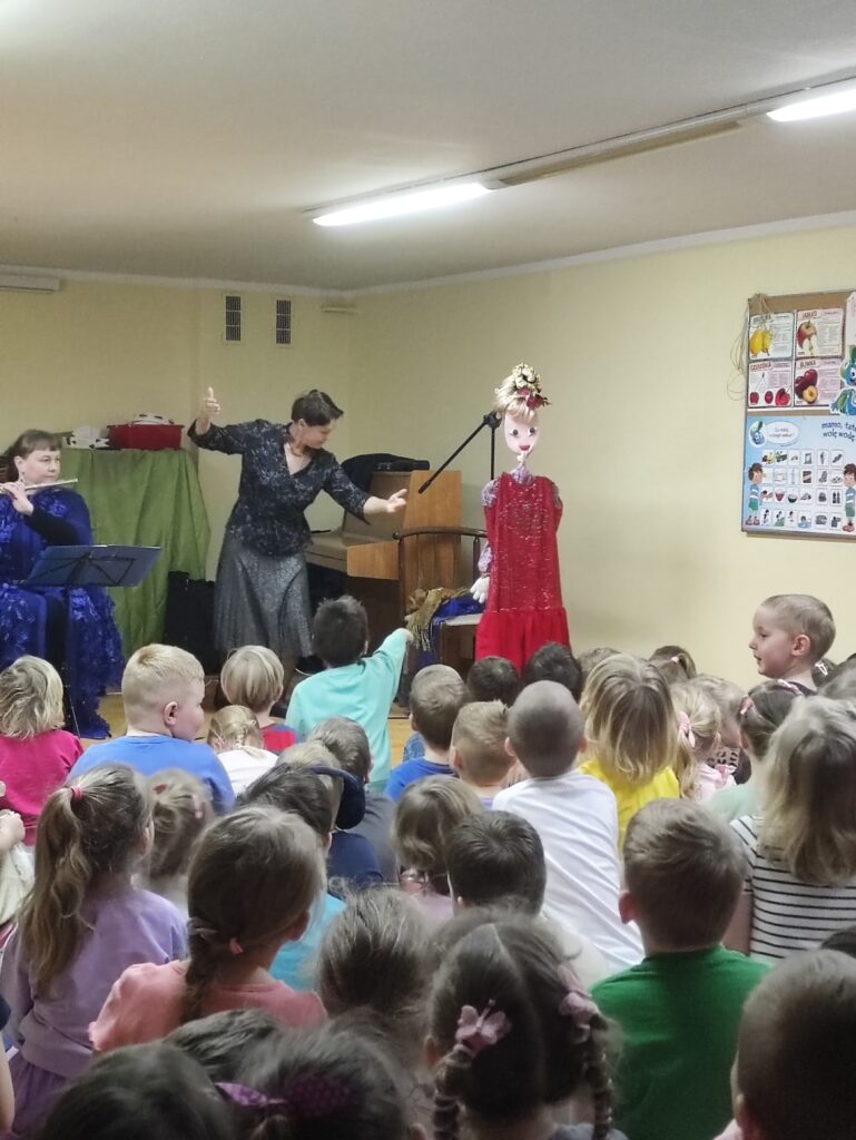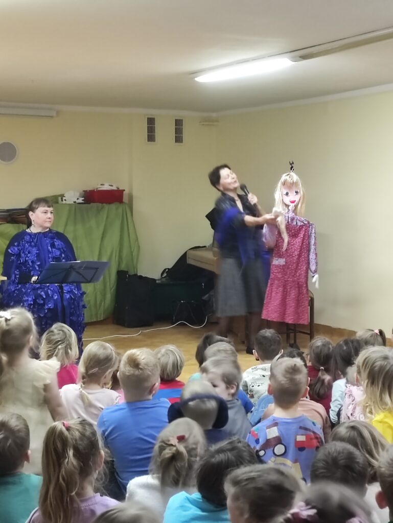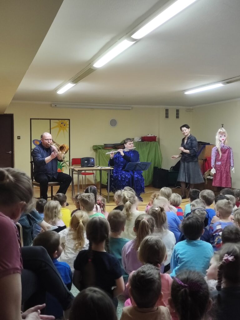 Dnia 8 kwietnia w naszym przedszkolu odbył się niezwykły koncert zorganizowany przez Lubuskie Biuro Koncertowe. Tym razem dzieci zostały zaproszone do zaczarowanego świata baśni, by wspólnie przeżyć opowieść o Kopciuszku, przedstawioną w formie muzyczno-teatralnej. W trakcie wydarzenia dzieci nie tylko słuchały pięknej historii, ale również miały okazję poznać instrumenty muzyczne, które towarzyszyły bohaterom bajki. Towarzyszące opowieści flet poprzeczny i puzon wprowadzały małych widzów w wyjątkowy nastrój – raz delikatny i liryczny, innym razem donośny i radosny.