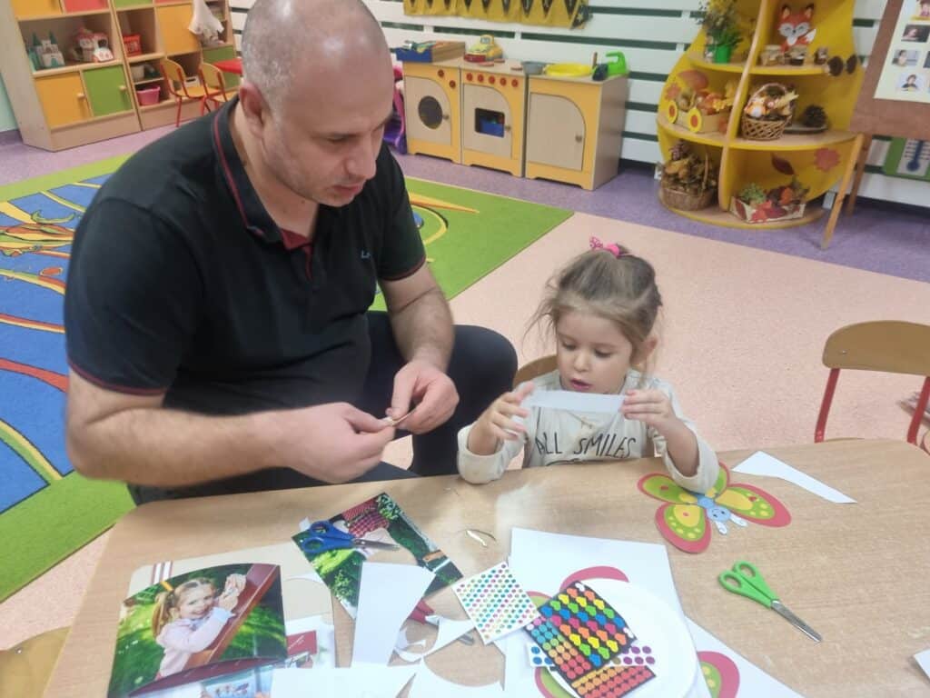 W listopadzie odbyła się ważna uroczystość Pasowanie na Super Mamę i Super Tatę. Rodzice z przedszkolakami wykonali pięknego kolorowego motyla ze zdjęciem dzieci, które posłużą nam jako dekoracja sali. Na podsumowanie spotkania odbyły się konkurencje sportowe. Zarówno dzieci jak i rodzice okazali się sprytem i pełną determinacją. W nagrodę opiekunowie otrzymali medale Super Mamy i Super Taty. Gratulacje!