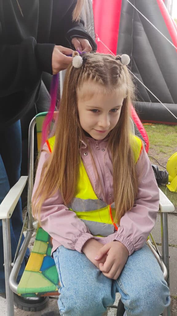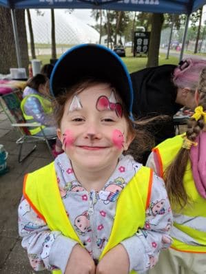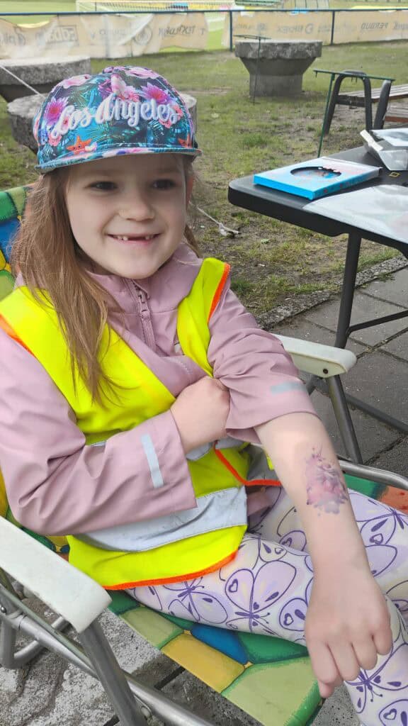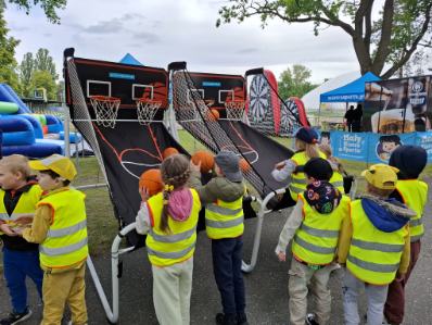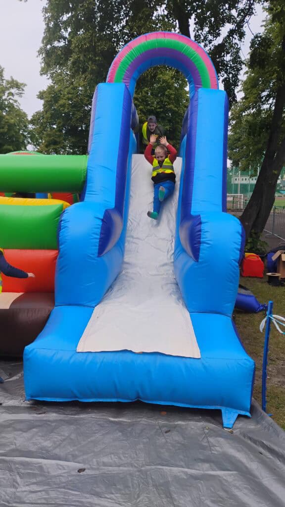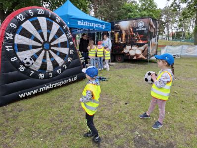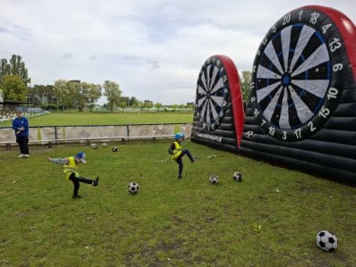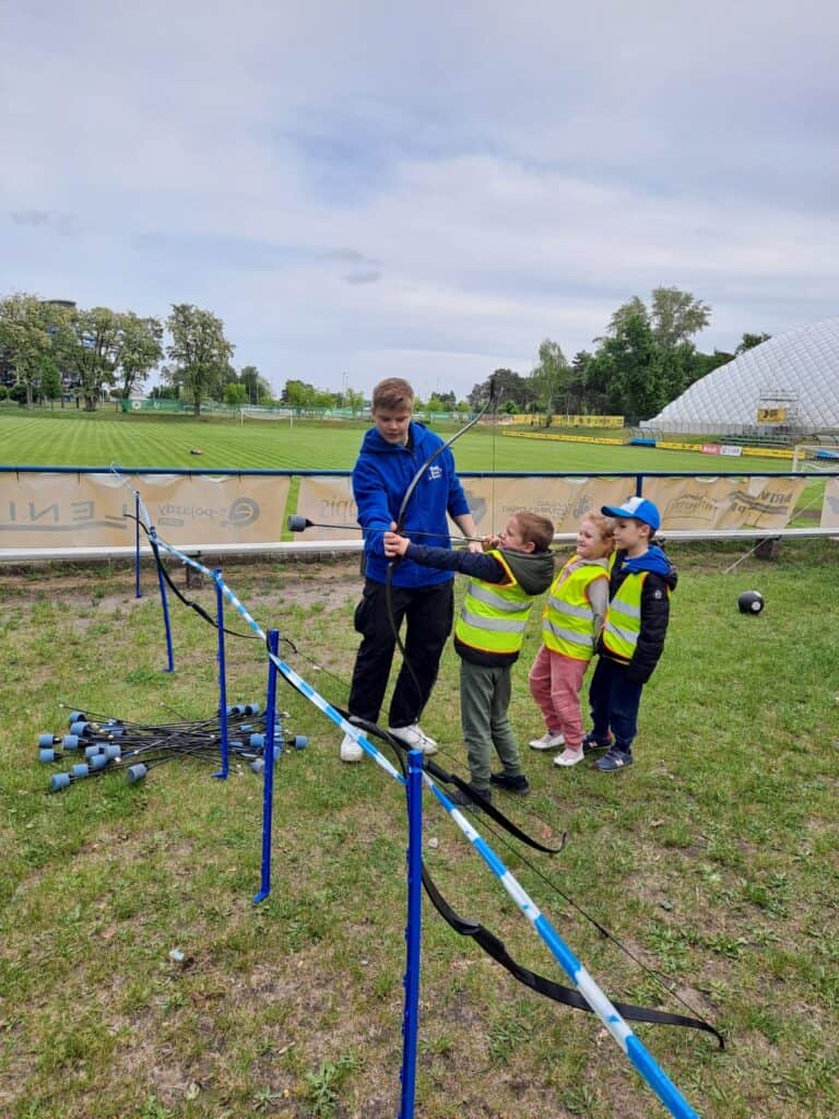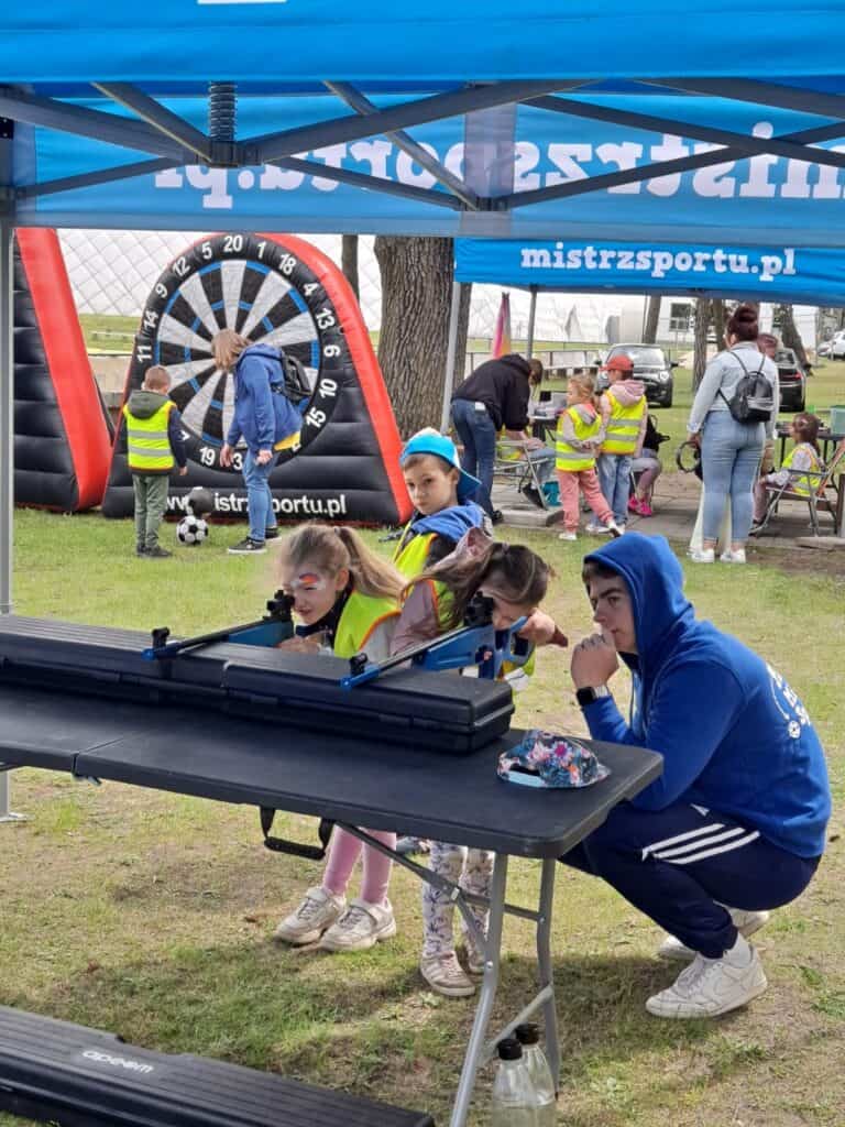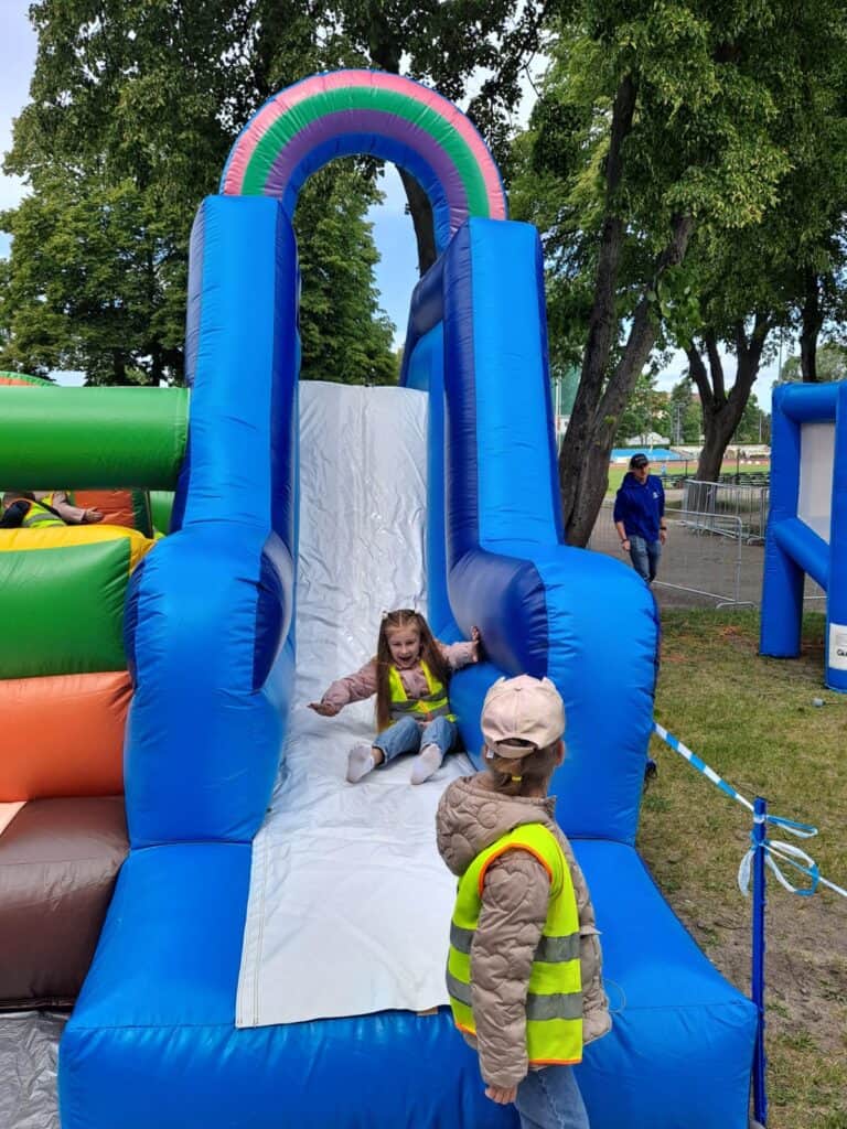 A po wszystkich sportowych emocjach sami wskoczyliśmy w wir zabawy – na stadionie czekały na nas dmuchańce, malowanie twarzy, kolorowe warkoczyki, tatuaże, strzelanie z łuku, rzut piłką do kosza, tor przeszkód i kopanie piłki do celu. Można było się zmęczyć… ale jaka to była frajda!