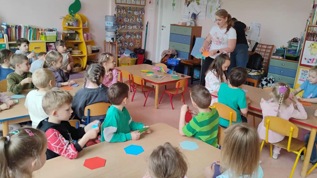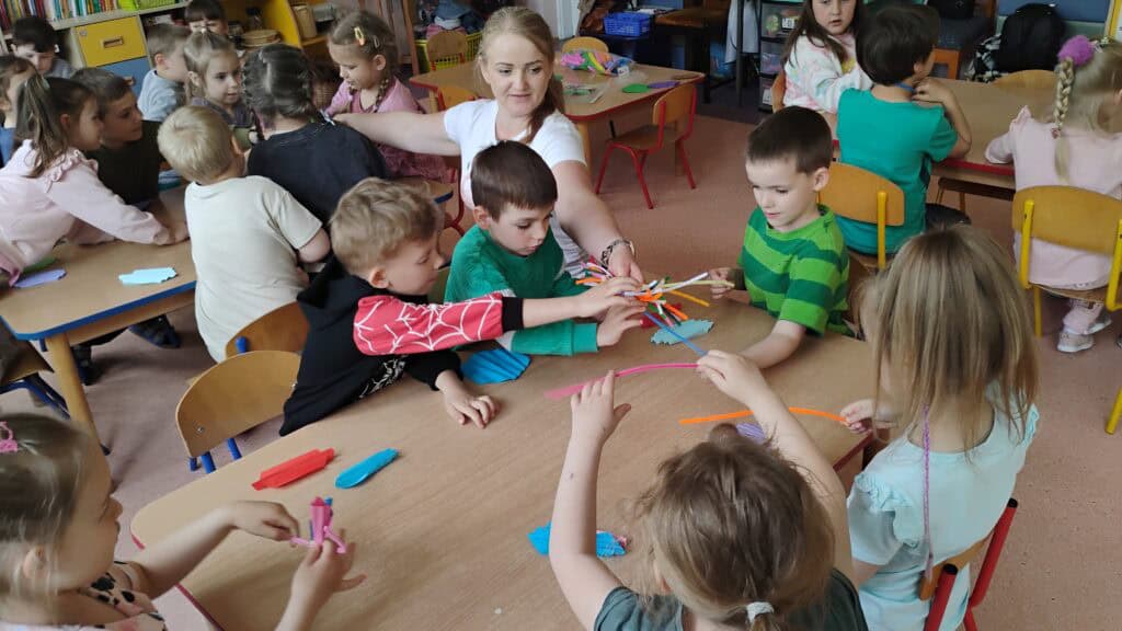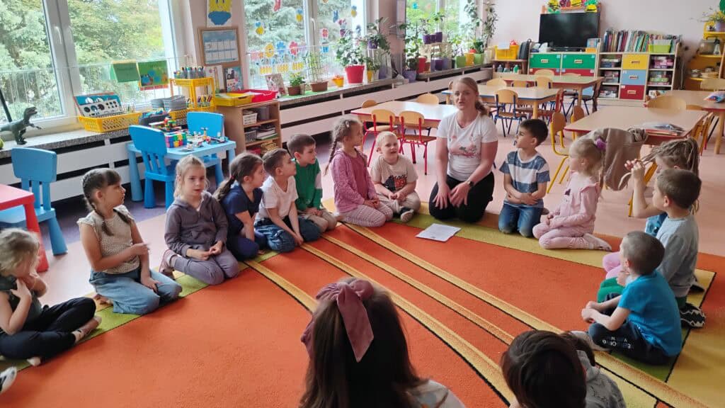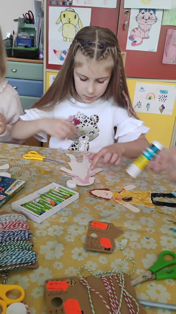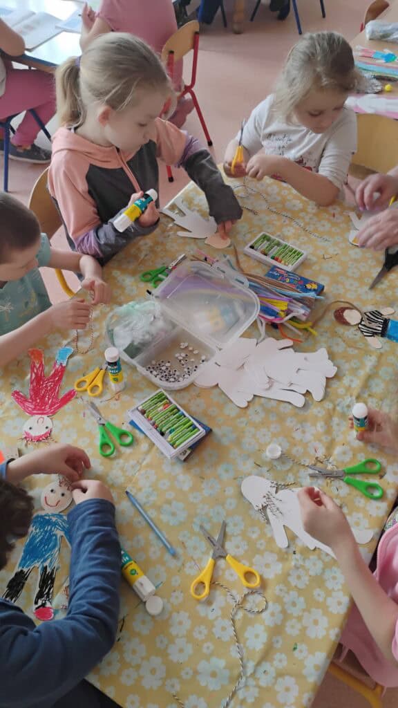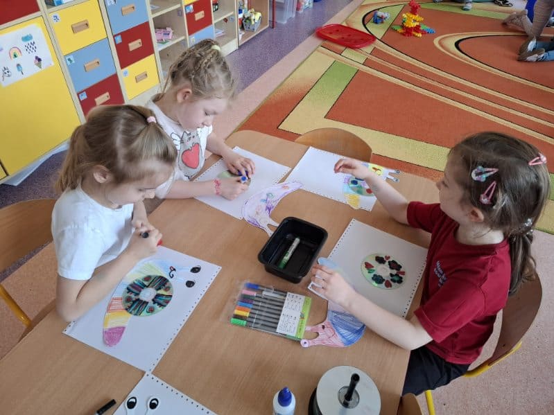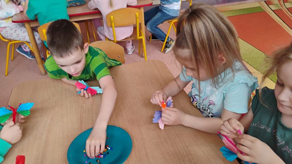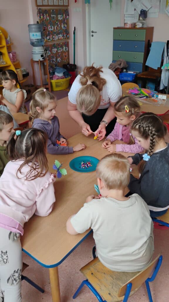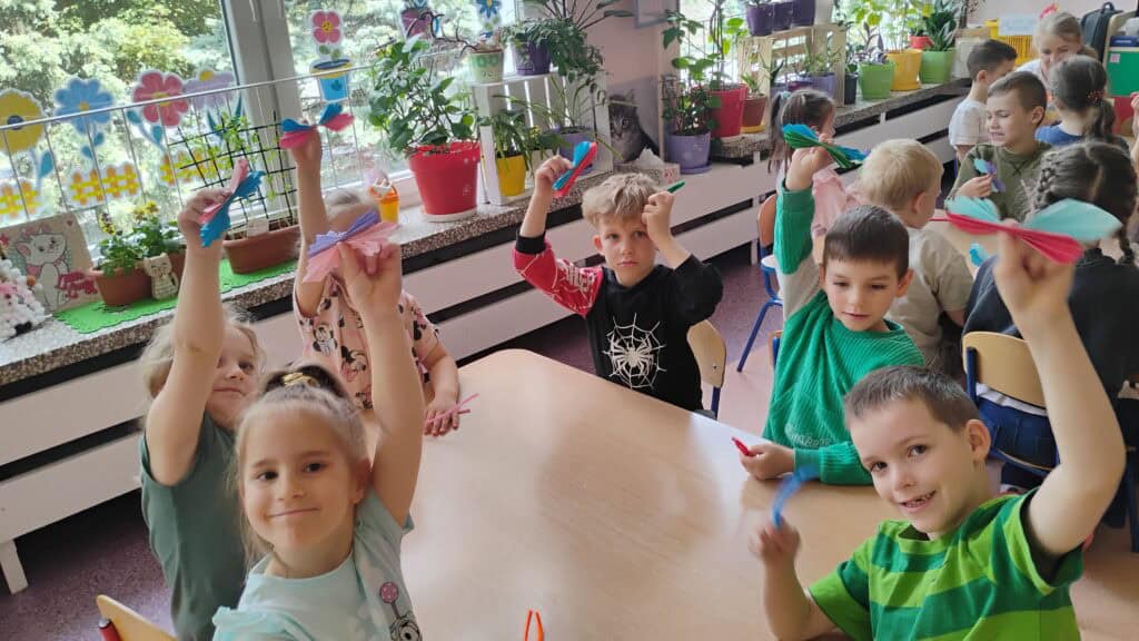 Były też warsztaty plastyczne z panią Emilią – mamą Milki – która pomogła nam stworzyć trójwymiarowe motylki. Teraz zdobią nasz korytarz i witają każdego, kto wchodzi do sali Kotków!