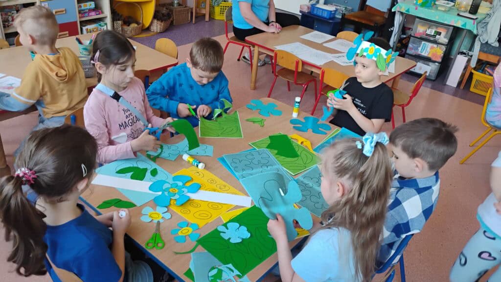 Świętowaliśmy Dzień Niezapominajki. Tworzyliśmy piękne, kwiatowe dzieła sztuki – różnymi technikami, z mnóstwem niebieskiego i zieleni. Podziwialiśmy niezapominajki i rozmawialiśmy o tym, jak dbać o naszą przyrodę. Bo choć jesteśmy jeszcze mali, doskonale wiemy, że Ziemię trzeba kochać i chronić!