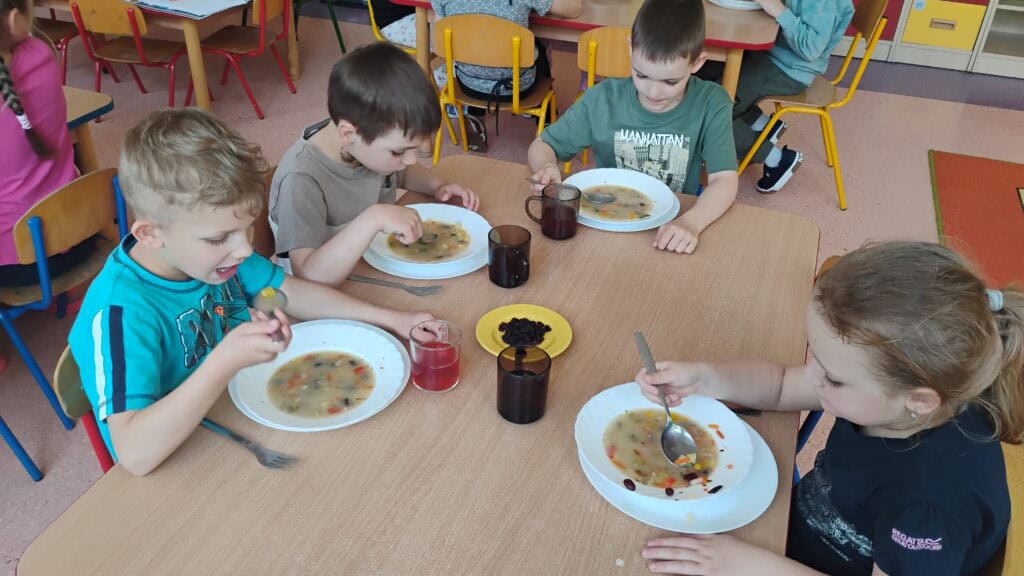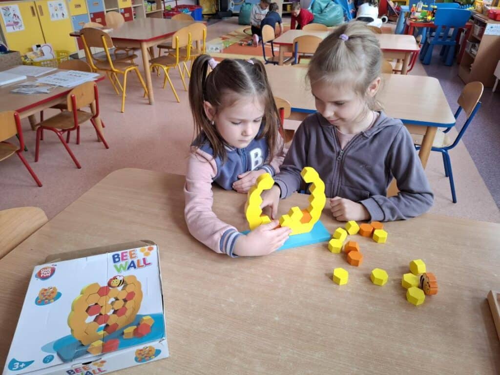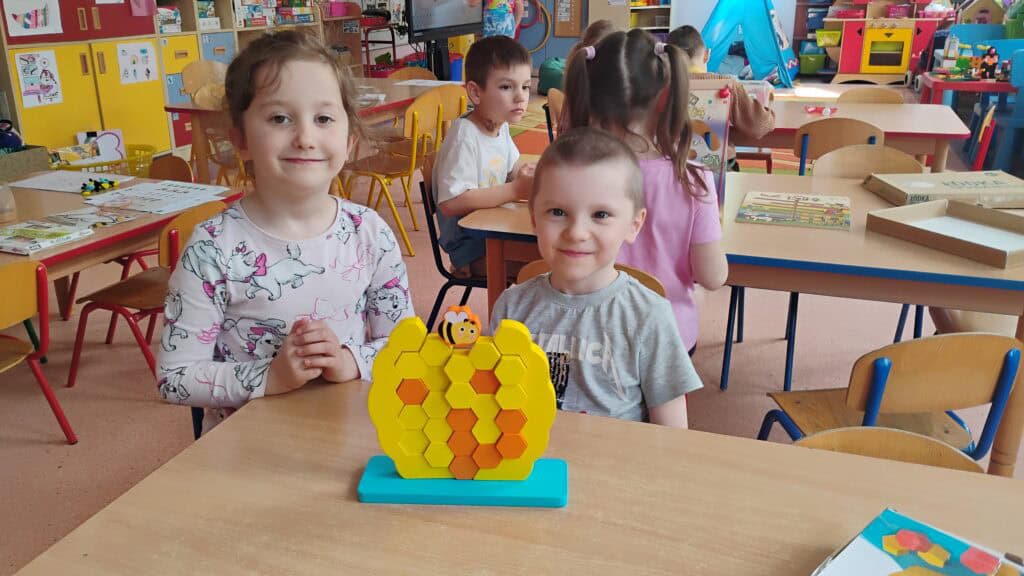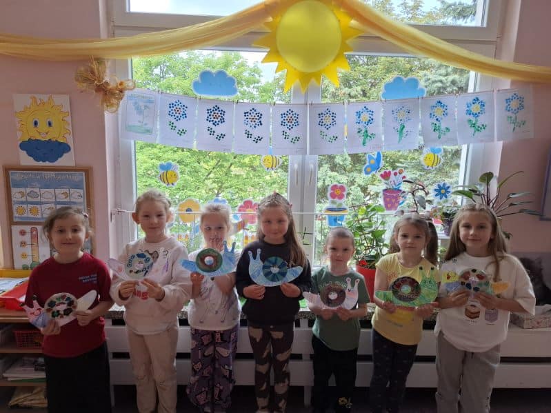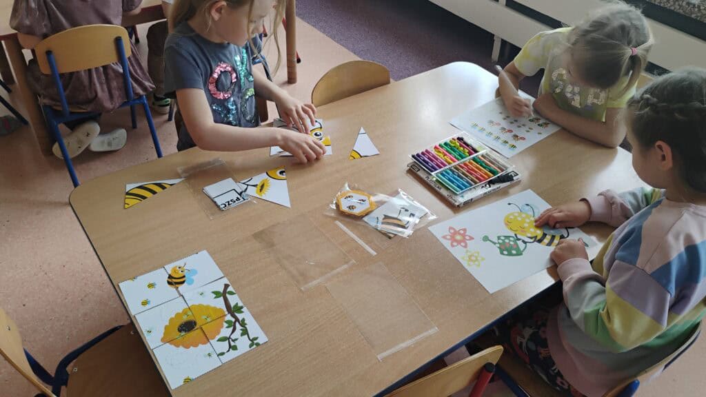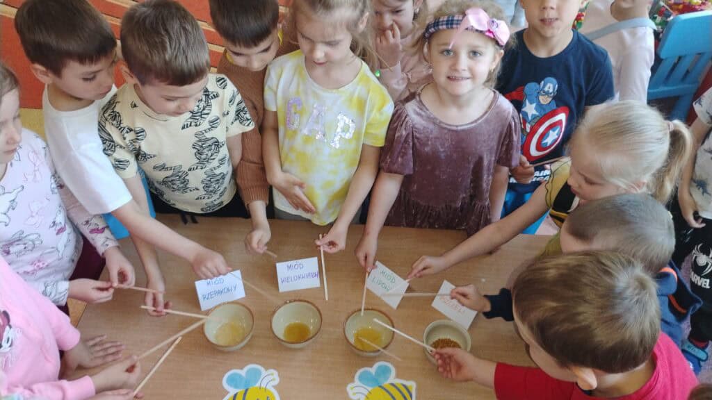 Przyszedł też czas na Dzień Pszczoły – i tu zrobiło się słodko! Próbowaliśmy różnych miodów, a nawet pyłku pszczelego (najodważniejsi dali radę!). Dowiedzieliśmy się jak żyją pszczoły, dlaczego są takie ważne i co możemy zrobić, żeby im pomóc. Były pszczele układanki, puzzle i prace plastyczne, a pszczółki pojawiły się wszędzie – nawet na naszych ubraniach!