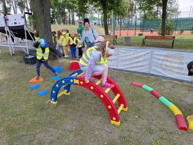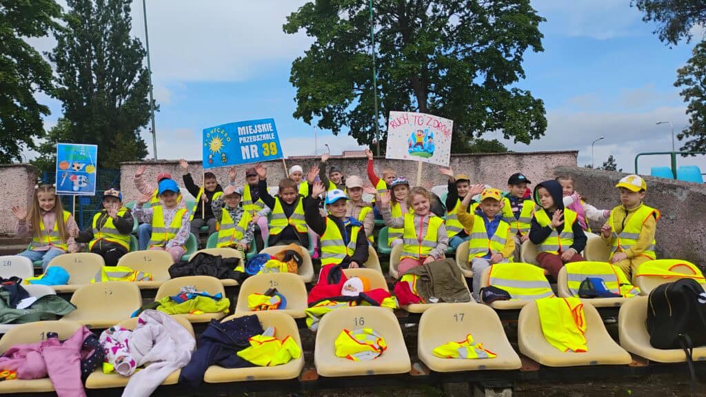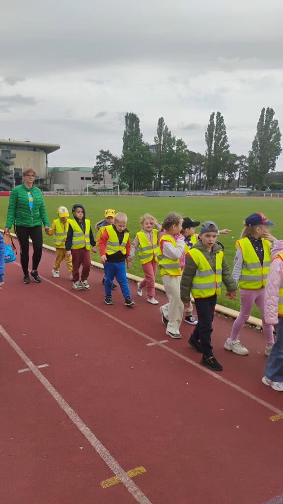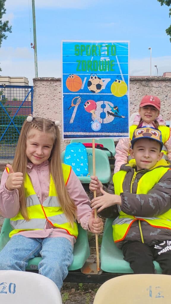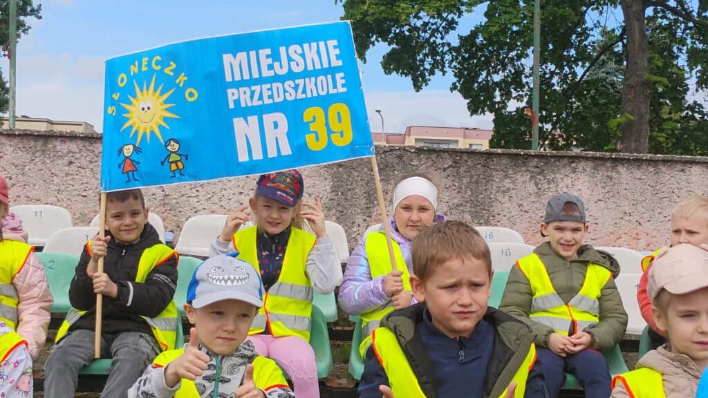 W maju kibicowaliśmy też naszym kolegom z grupy Żabek podczas Międzyprzedszkolnego Turnieju Sportowego na stadionie MOSiR-u przy u. Sulechowskiej. Chociaż nie startowaliśmy, dopingowaliśmy jak prawdziwi mistrzowie – głośno, z uśmiechem i kolorowymi transparentami.