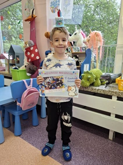 W maju świętowaliśmy urodziny Daniela, Franka G. i Antka! Były balony, tańce, uśmiechy, wspólne śpiewanie „Sto lat” i oczywiście słodki poczęstunek. Nasi solenizanci poczuli się jak prawdziwe gwiazdy dnia – i słusznie!