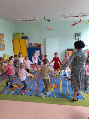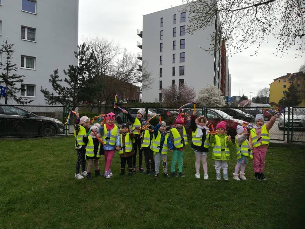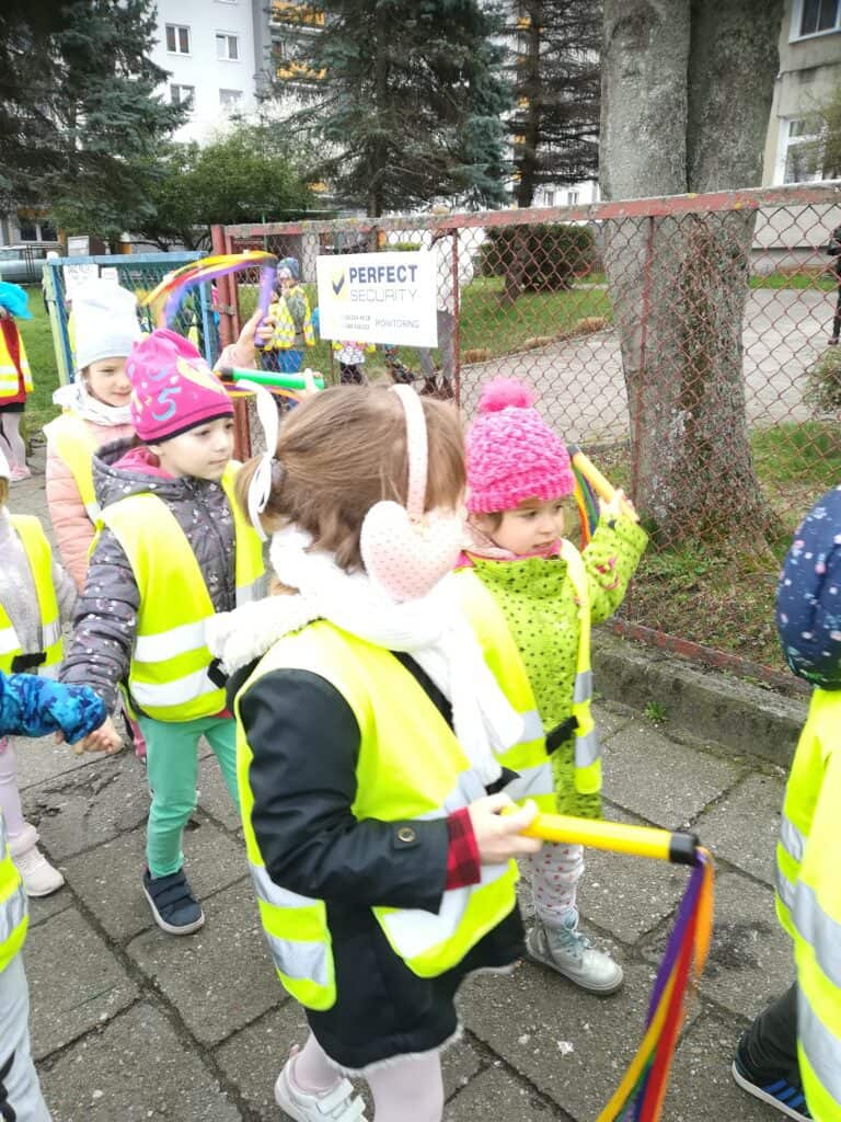 Pierwszego dnia wiosny zorganizowaliśmy kolorowy orszak i razem ze wszystkimi dziećmi z przedszkola wyszliśmy na spacer, witając wiosnę.