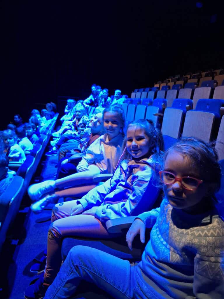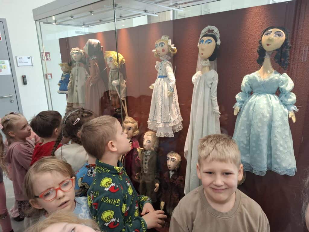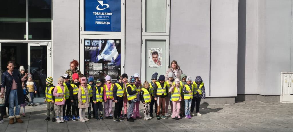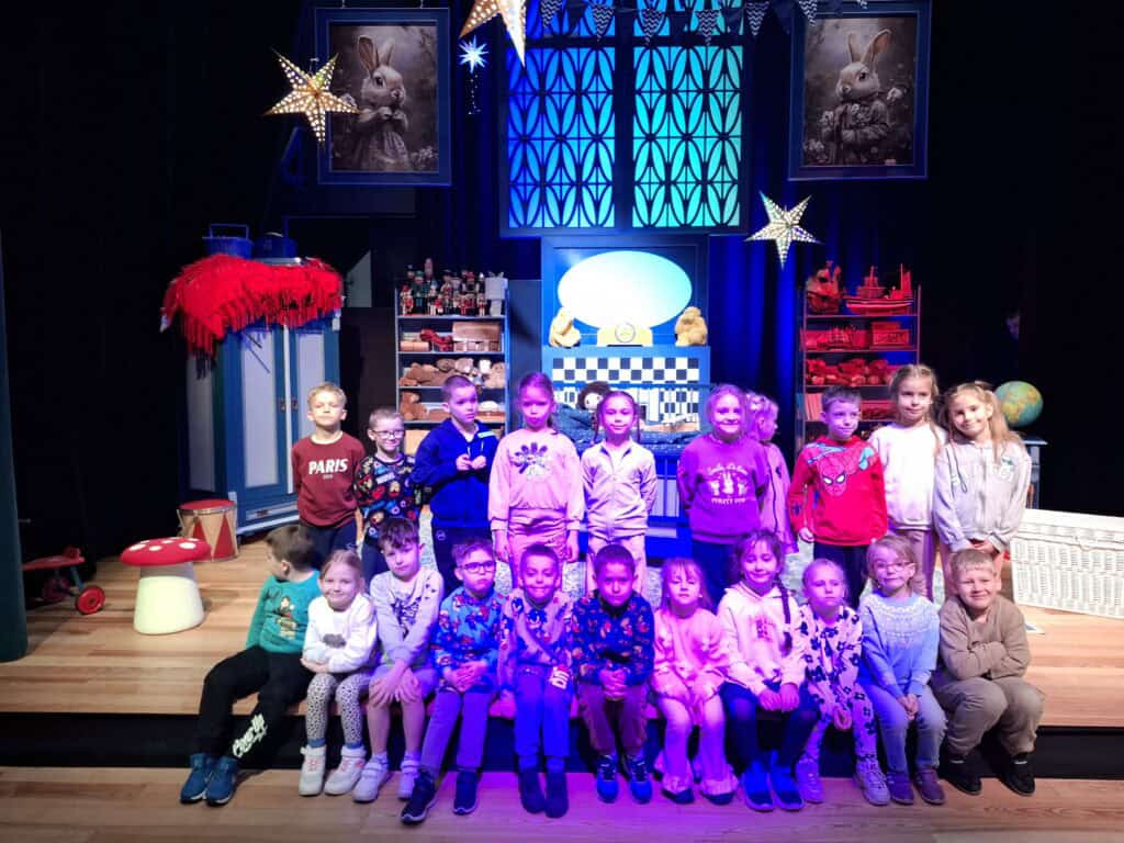 Całą grupą wybraliśmy się również do Teatru Lubuskiego na przedstawienie pt. „O smoku, który mieszka w szafie”. Spektakl bardzo nam się podobał, pozwolił nam zrozumieć, jak radzić sobie z oswajaniem nocnych lęków i strachu przed ciemnością.