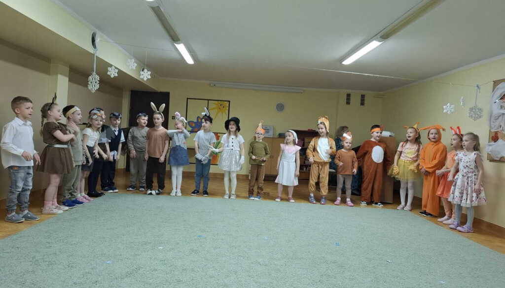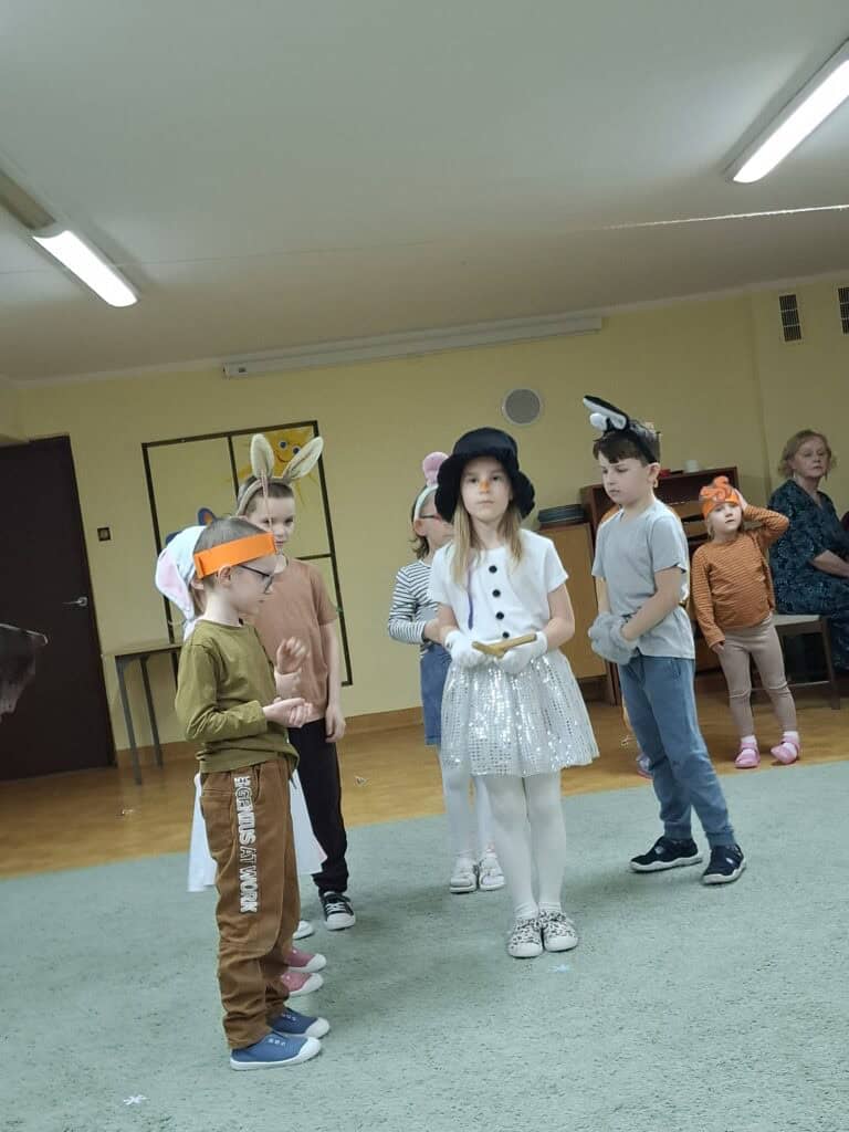 Nowy miesiąc zaczął się w naszej grupie od występu pt. „Kręć się koło” dla Babć, Dziadków i Rodziców. Była to krótka zimowa opowieść o bałwanku, który szukał przyjaciół, ale z wiosennym akcentem.
