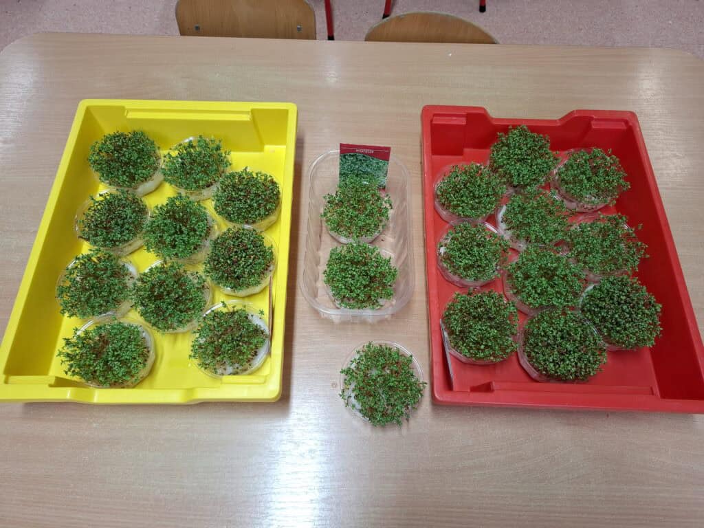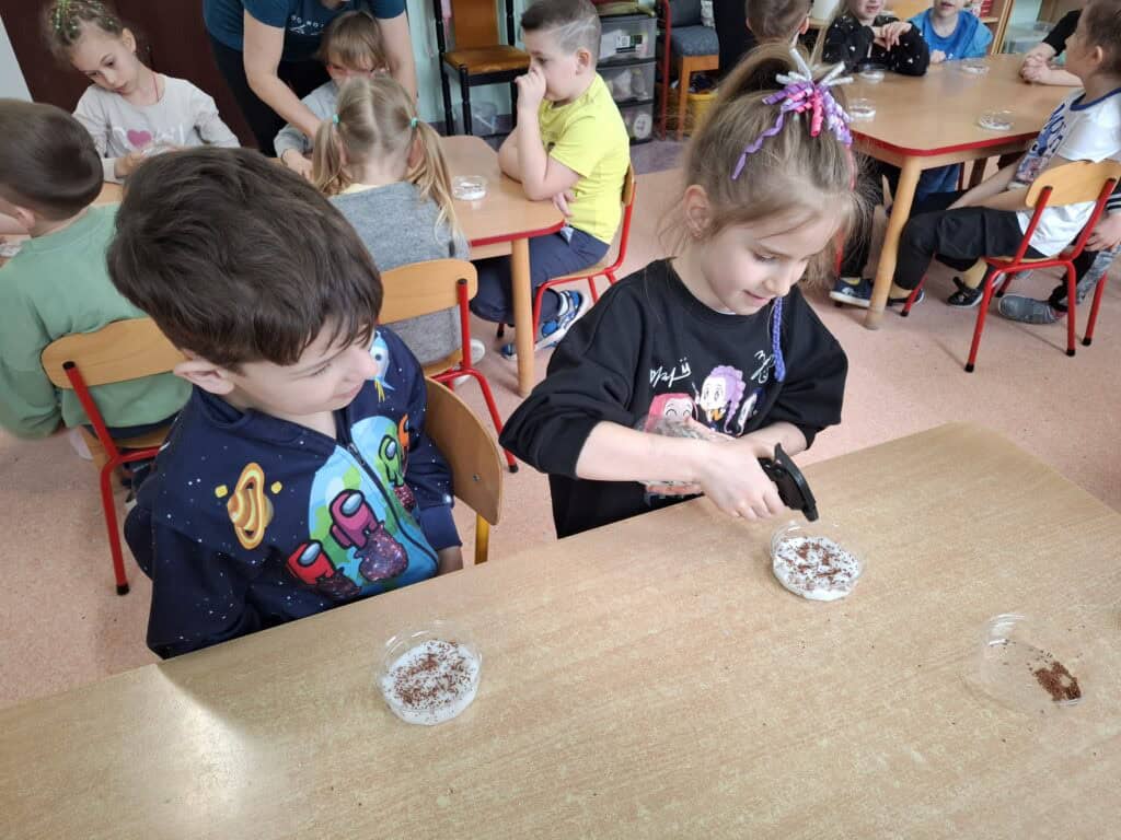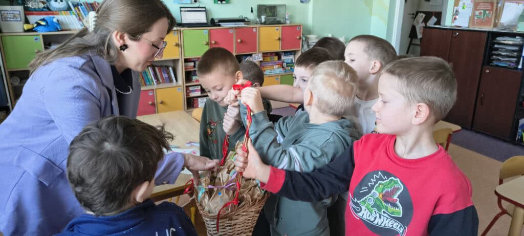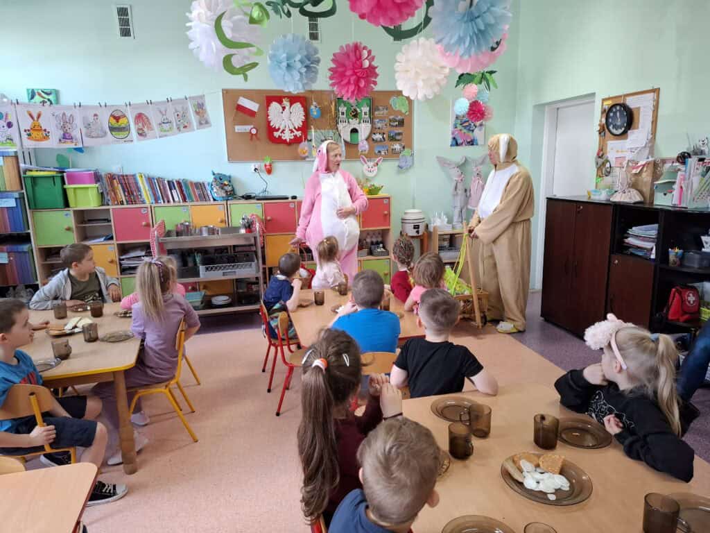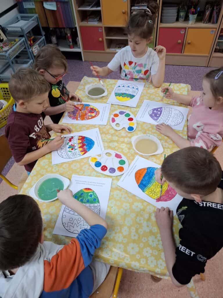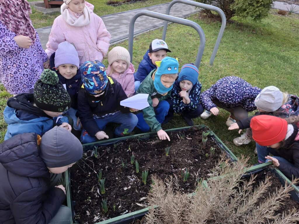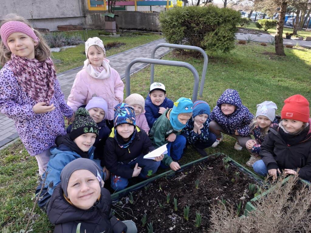 Koniec marca spędziliśmy na obserwacji przyrody, czy rzeczywiście przyszła już Wiosna oraz na przygotowaniach do Świąt Wielkanocnych. Pięknie udekorowaliśmy naszą salę oraz przygotowaliśmy niespodziankę dla naszych rodziców. Na początku posialiśmy rzeżuchę w pojemnikach i opiekowaliśmy się nią dobrze, bo wspaniale wyrosła. Po czym przystroiliśmy pojemniczki świątecznymi dekoracjami i już niespodzianka wielkanocna była gotowa. Wesołym świątecznym akcentem dla wszystkich dzieci były odwiedziny Zajączków, które przyniosły im słodkie niespodzianki.