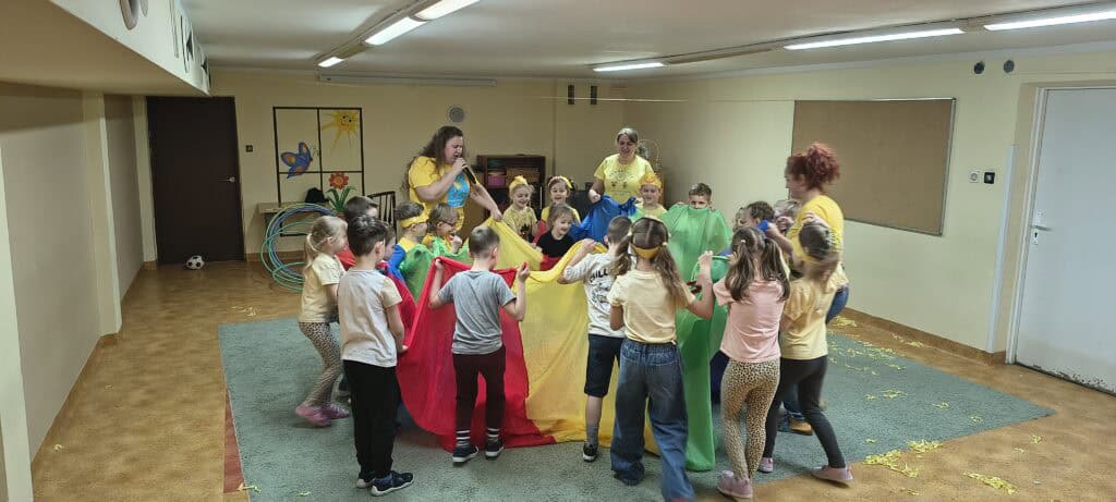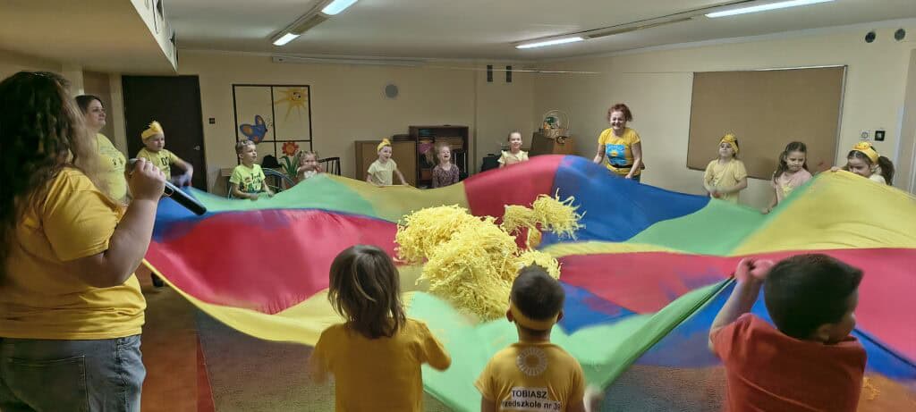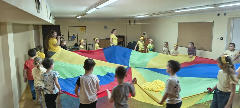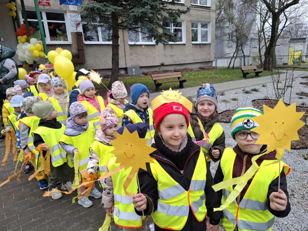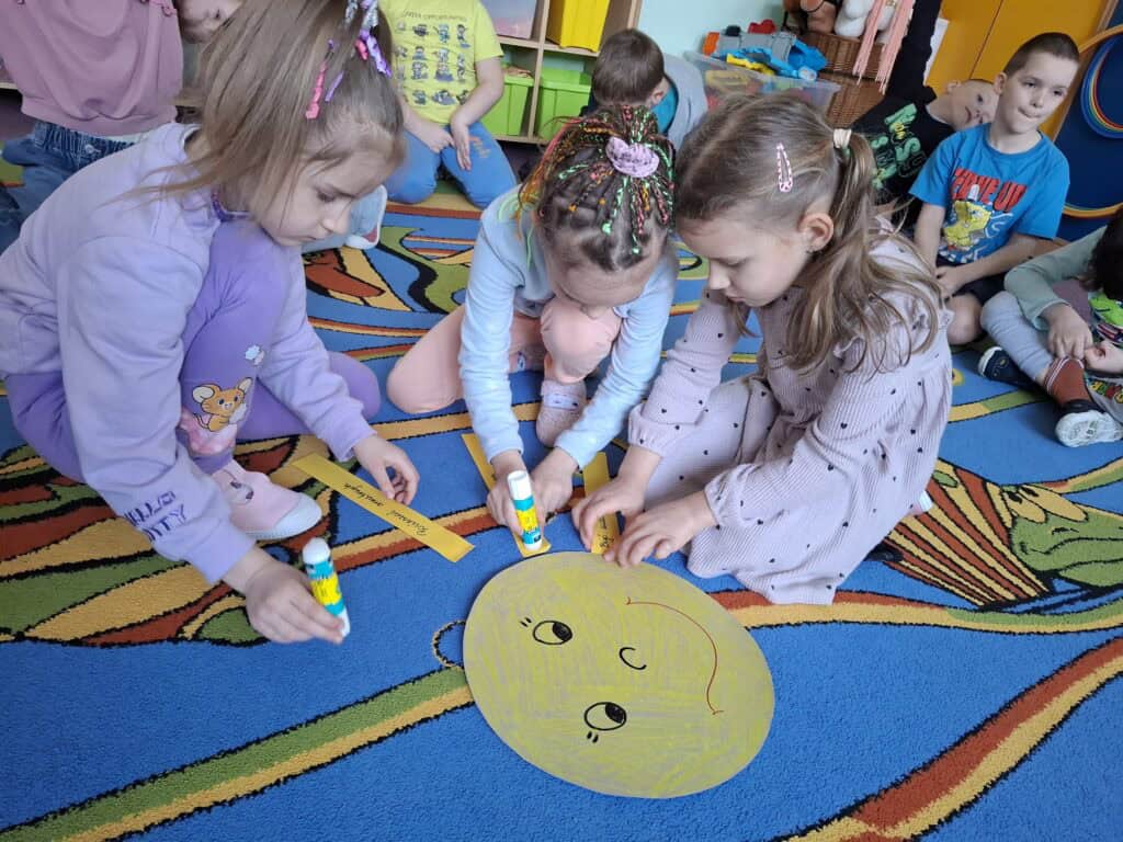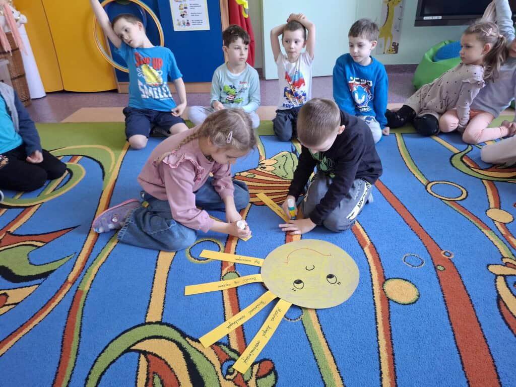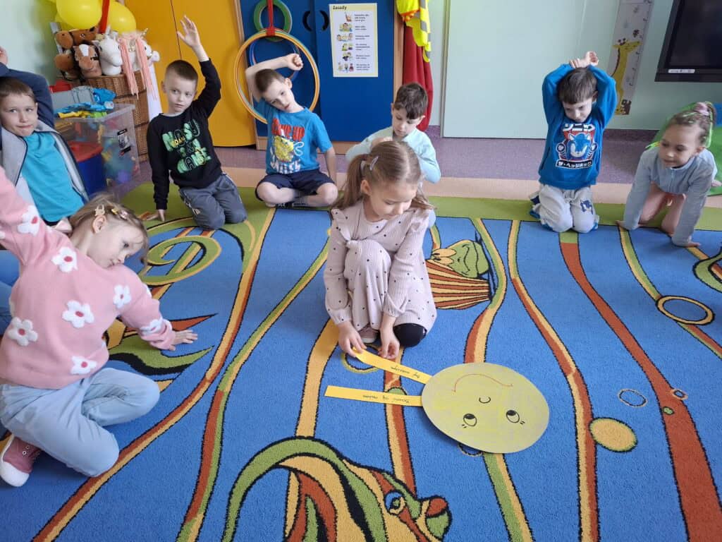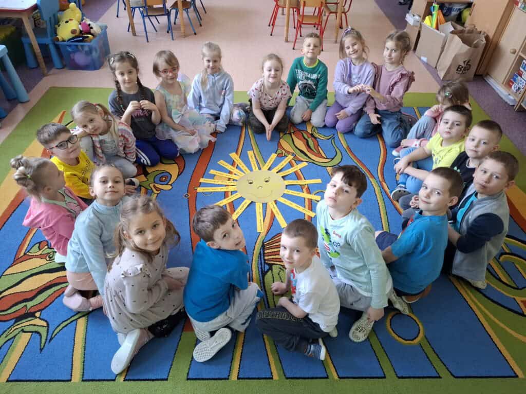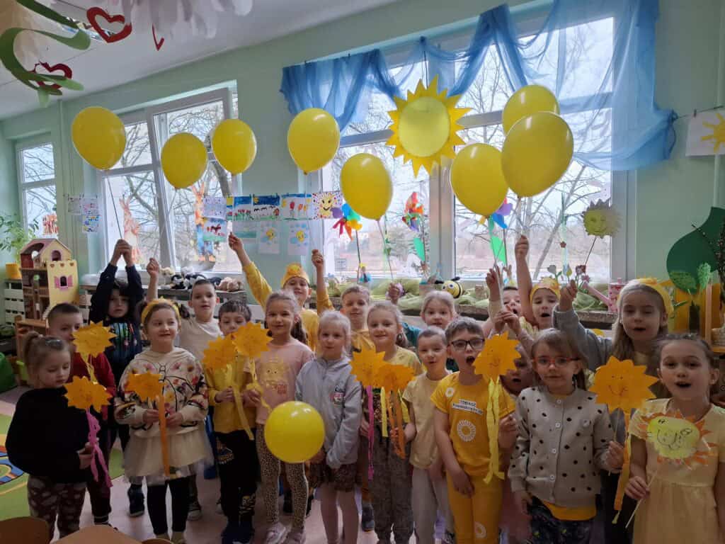 Niesamowitym czasem w przedszkolu dla Kotków okazał się Tydzień Słońca, podczas którego dzieci brały udział w różnego rodzaju zajęciach i zabawach związanych ze słońcem. Były między innymi zabawy pod hasłem „Słońce jako kolor”, „Słońce jako planeta” czy też „Słońce jako nasza przedszkolna społeczność”. Najwięcej radości dał dzieciom ostatni dzień zabaw, kiedy wraz z przedszkolakami z pozostałych grup szliśmy w korowodzie ze słoneczkami i witaliśmy Wiosnę a potem były super, szalone zabawy, aż zapierało dech.