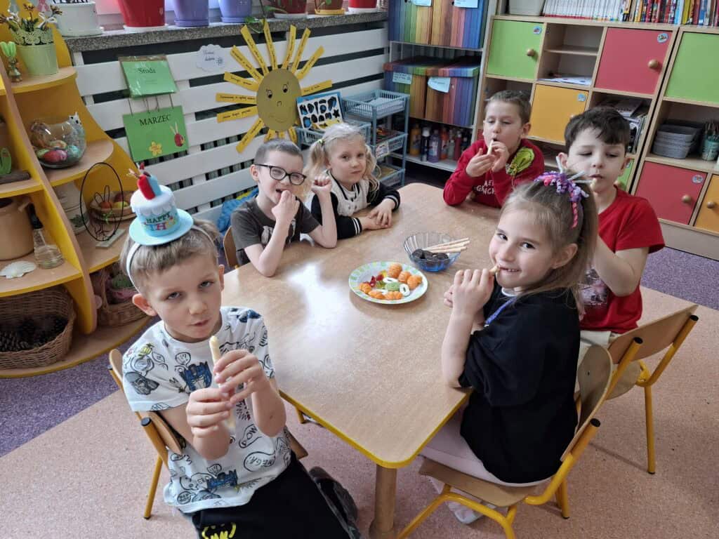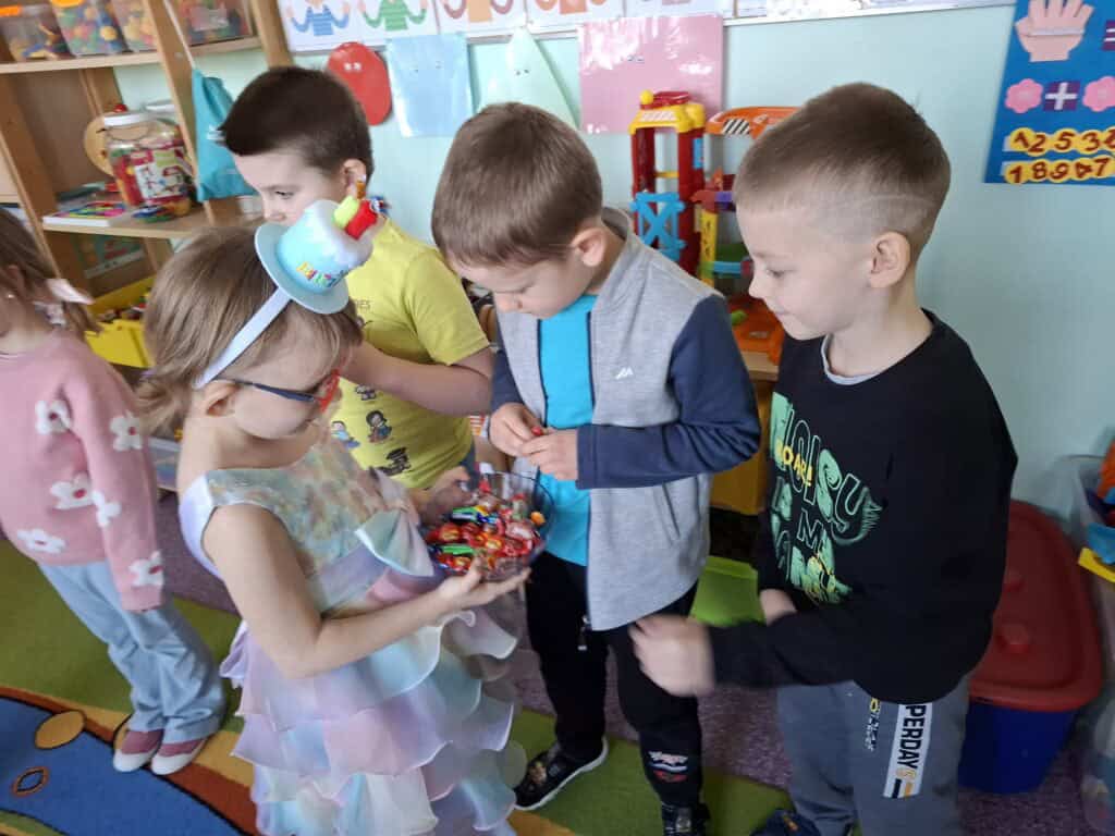 A w naszej grupie odbyły się siódme urodziny Emilki i Mateusza. Były życzenia, słodkości, rysunki dla Jubilatów, no i oczywiście odśpiewaliśmy „Sto lat”.