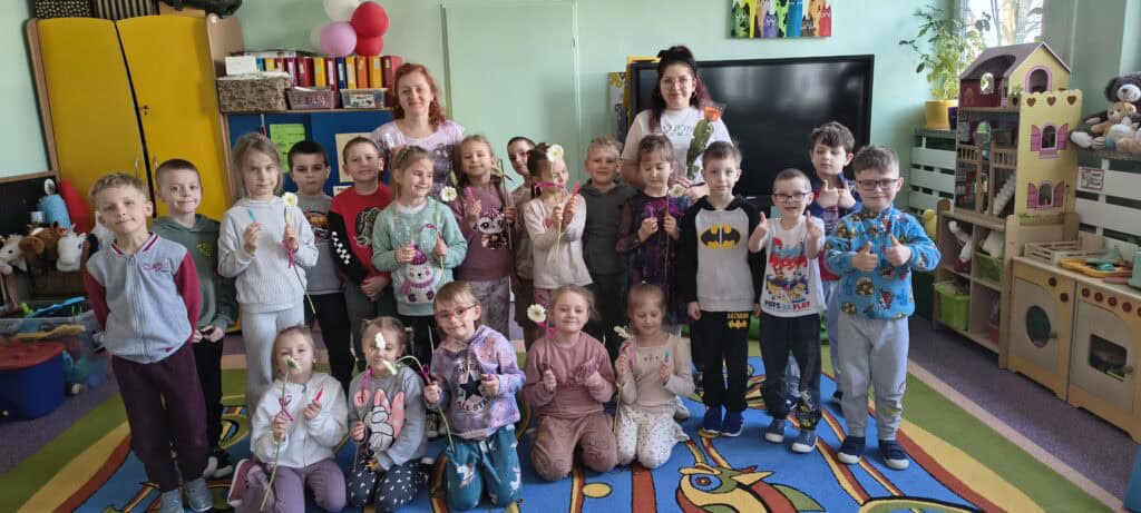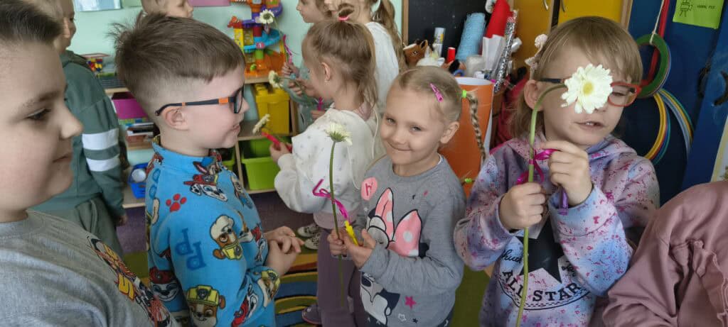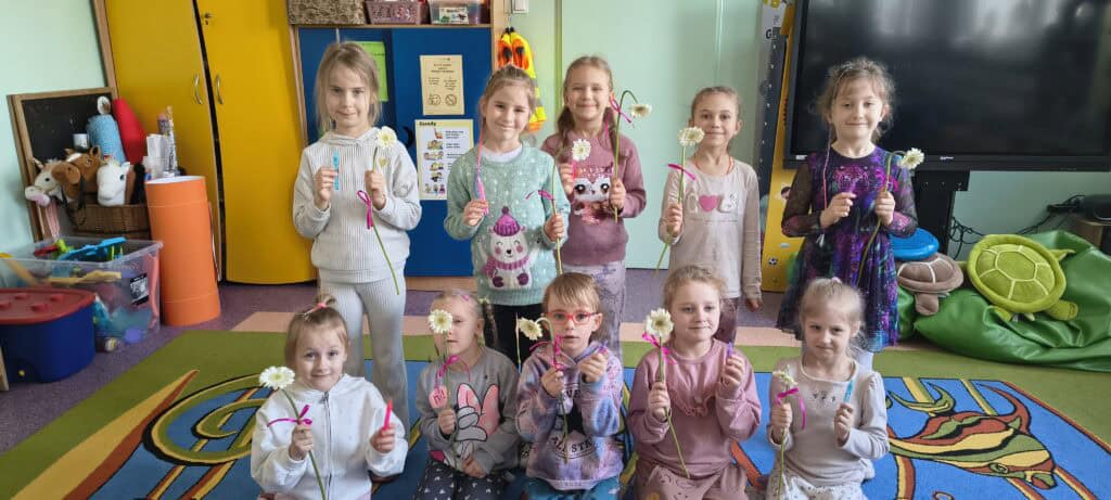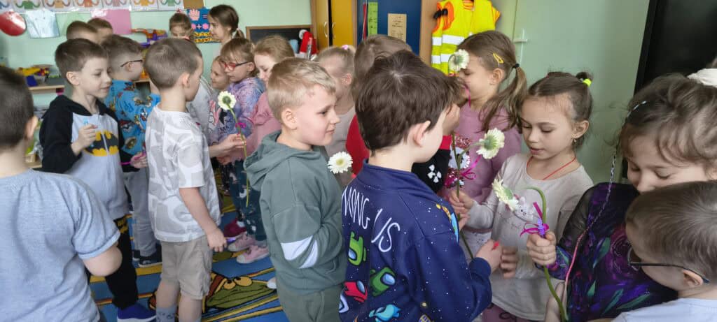 Kolejnym wydarzeniem były grupowe obchody Dnia Kobiet, podczas których chłopcy przygotowali niespodzianki dla koleżanek z grupy i dla pań z przedszkola. Były uśmiechy, przytulaski i życzenia.