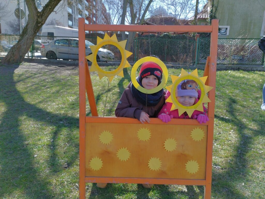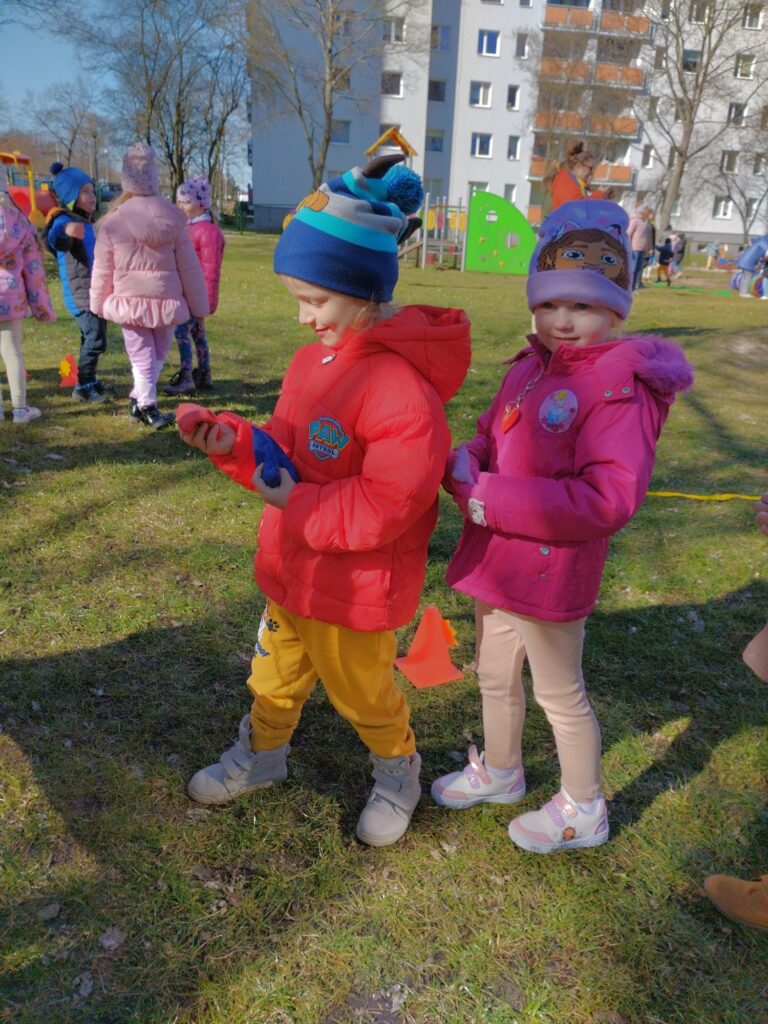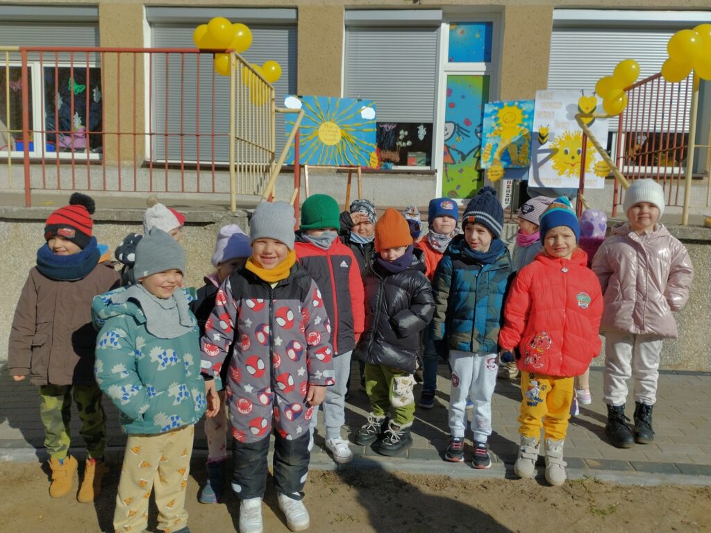 Kiedy wreszcie nadszedł ten długo wyczekiwany dzień, nasze Motylki były przeszczęśliwe, mogąc spędzić go na zabawie, na świeżym powietrzu. Był to czas pełen atrakcji i radosnych aktywności związanych z celebrowaniem Słońca. Na przedszkolnym placu dzieci mogły samodzielnie wybierać konkurencje, w których chciały wziąć udział – a było w czym wybierać! Do dziś z uśmiechem wspominają te wyjątkowe chwile. Na zakończenie dnia zrobiliśmy pamiątkowe zdjęcia z wykonanymi wcześniej pracami plastycznymi, które dzieci tworzyły w grupach.