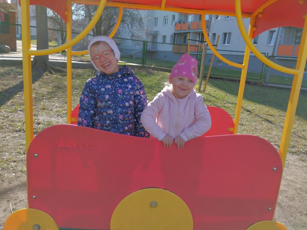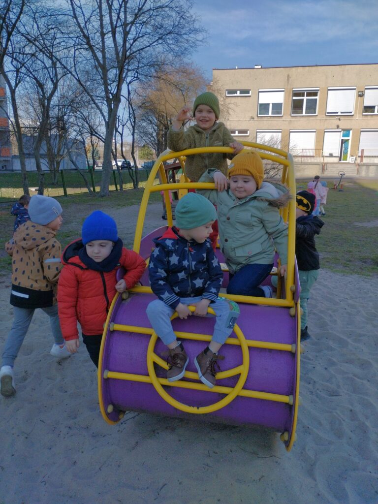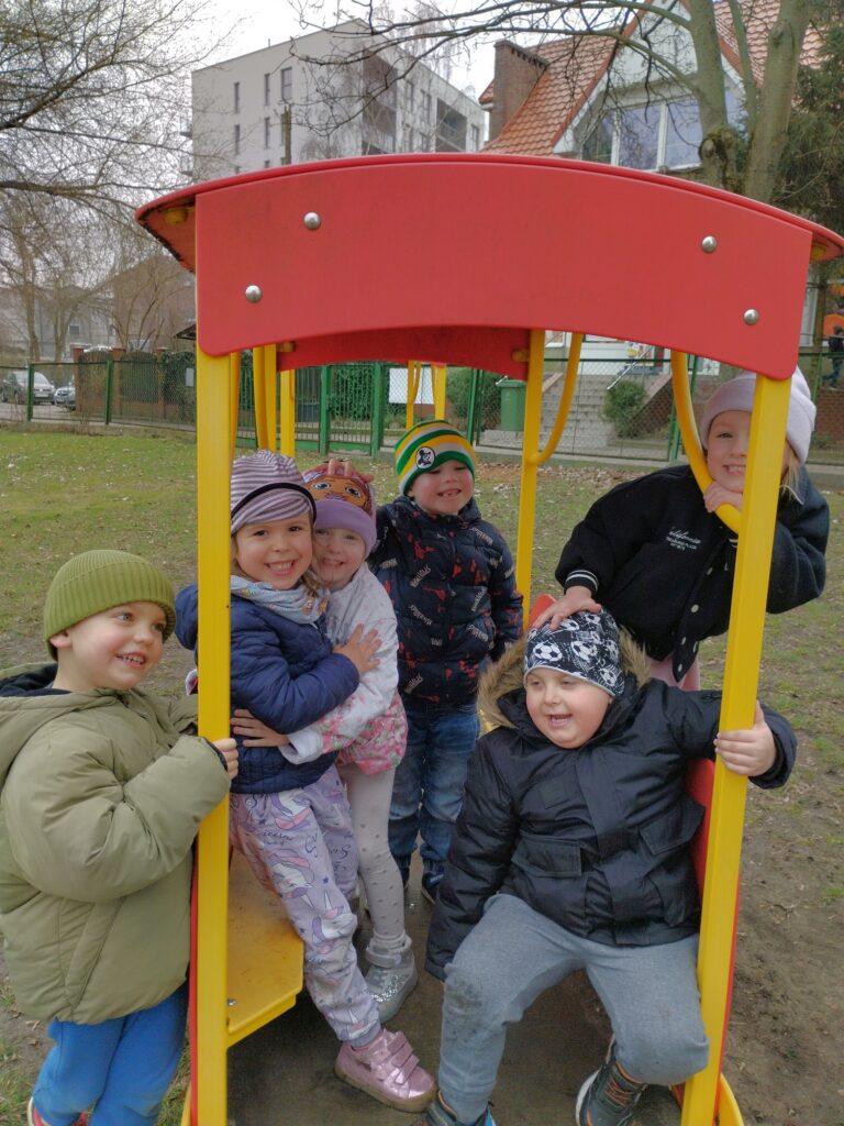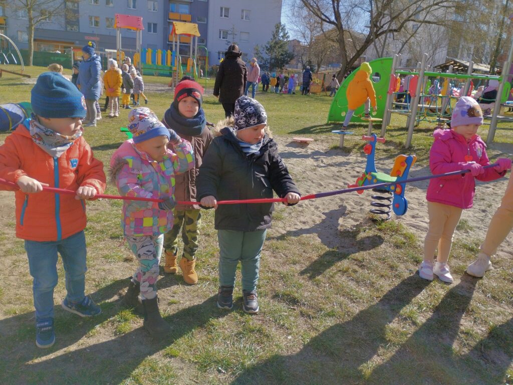 Marzec powitał nas piękną, słoneczną pogodą, którą chętnie wykorzystaliśmy na radosne zabawy na naszym przedszkolnym placu.