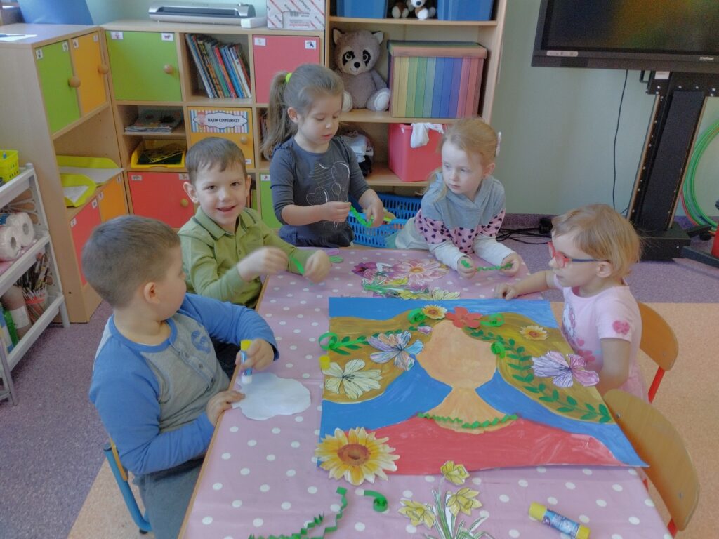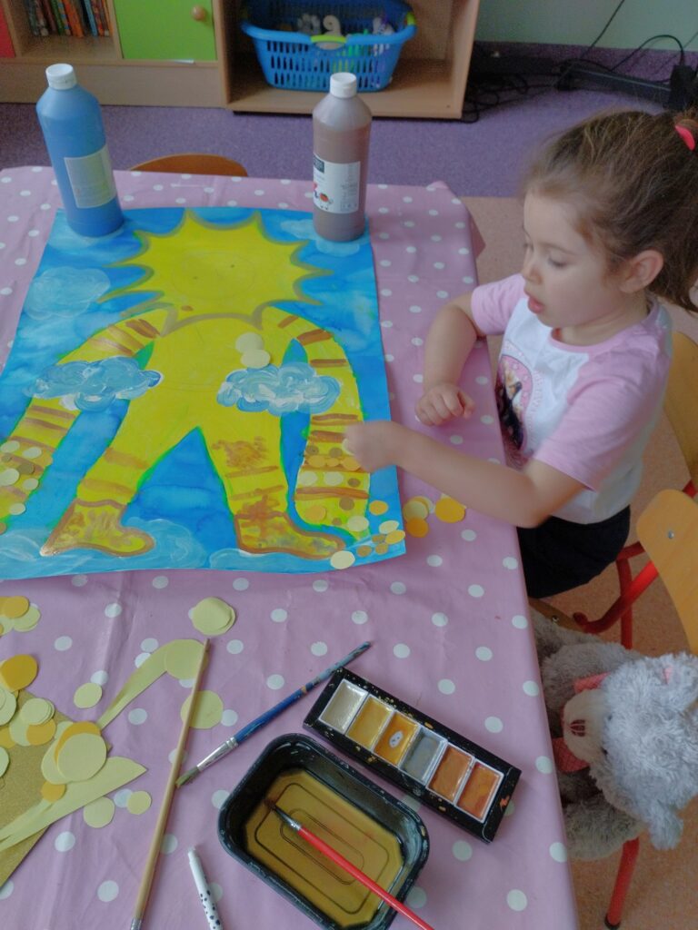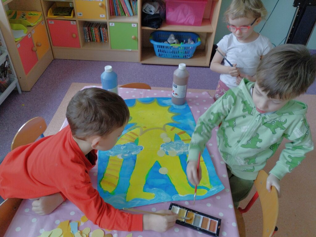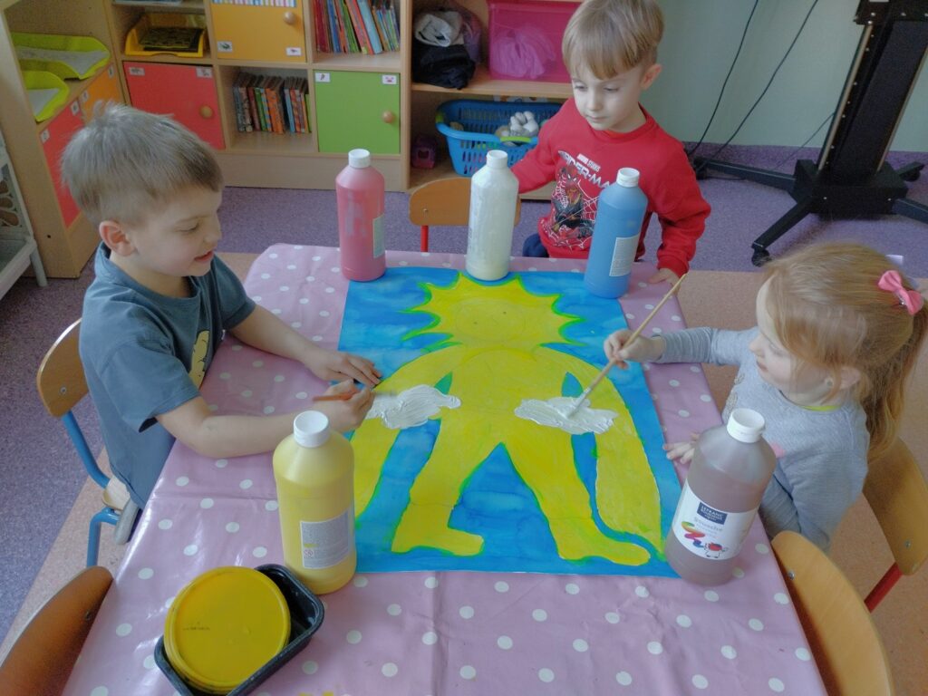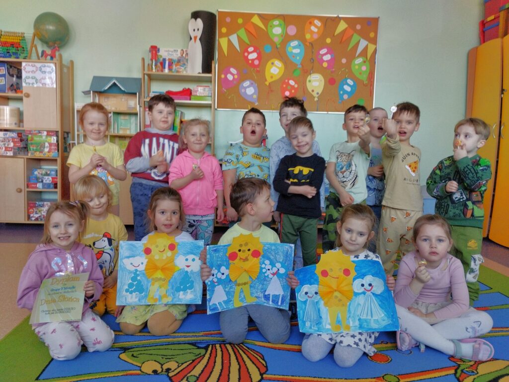 Ważnym wydarzeniem w naszej grupie był Dzień Słońca, na który dzieci przygotowywały się już od kilku dni. Z wielkim zaangażowaniem stworzyły piękny plakat, który było można podziwiać w naszym holu.