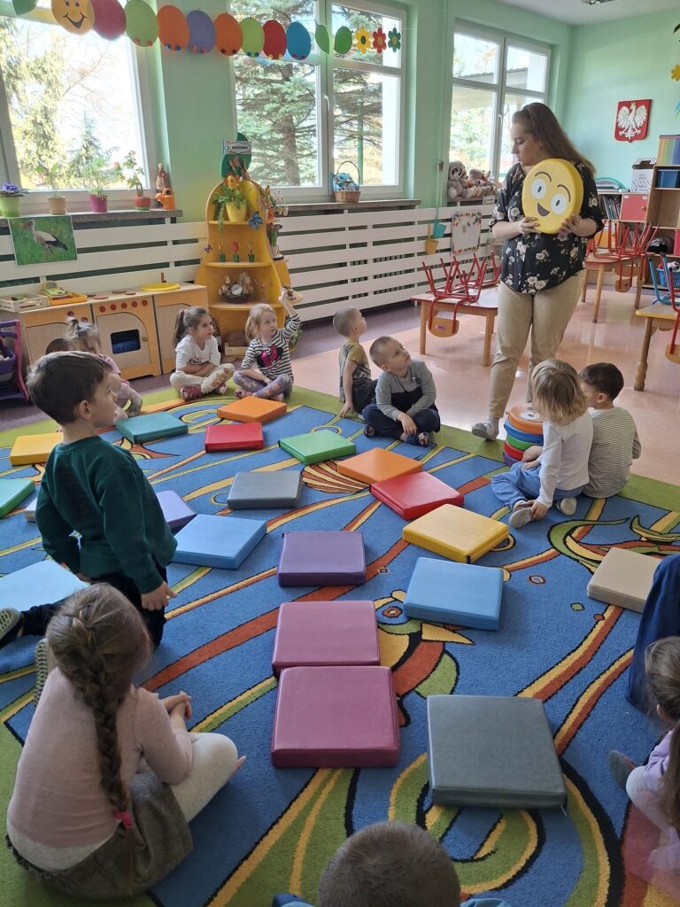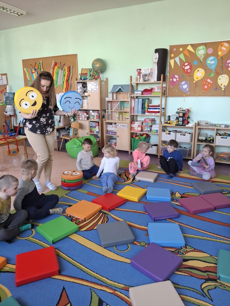 Pani Asia, nasza psycholog, ponownie zorganizowała wyjątkowe zajęcia dla naszej grupy, tym razem wykorzystując kolorowe poduszki, które stały się głównym narzędziem w pracy nad emocjami. Każda poduszka prezentowała inną emocję – radość, smutek, złość, strach czy spokój – a jej kolor symbolizował odpowiednią reakcję emocjonalną.