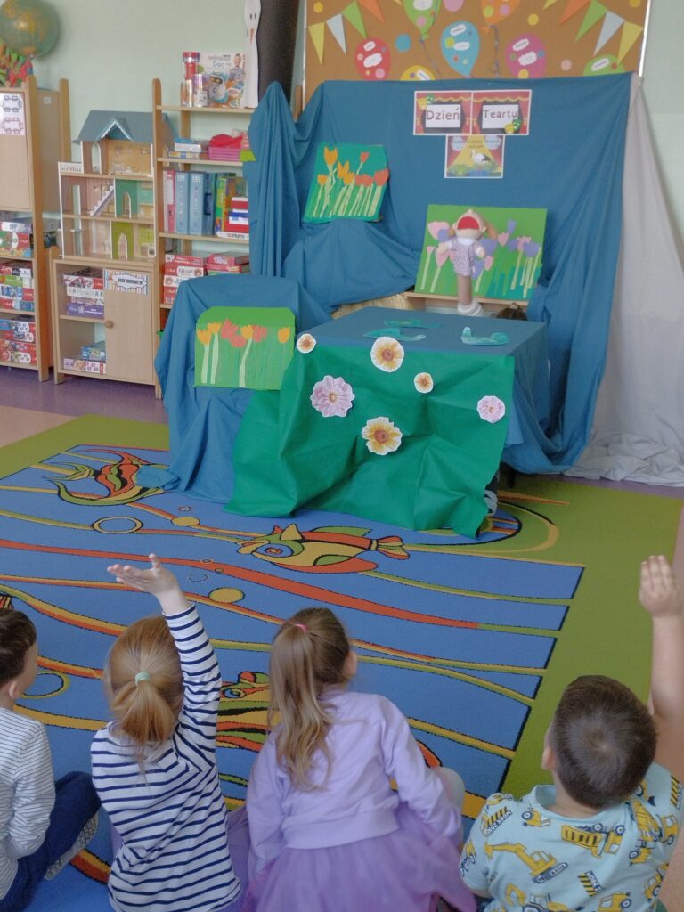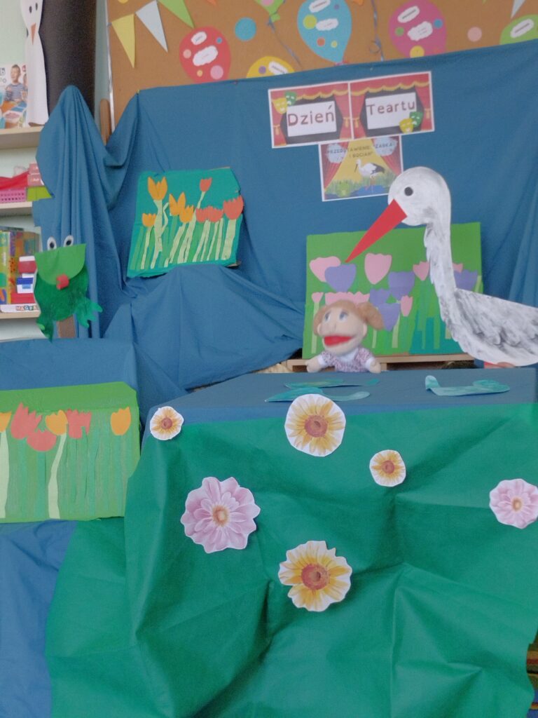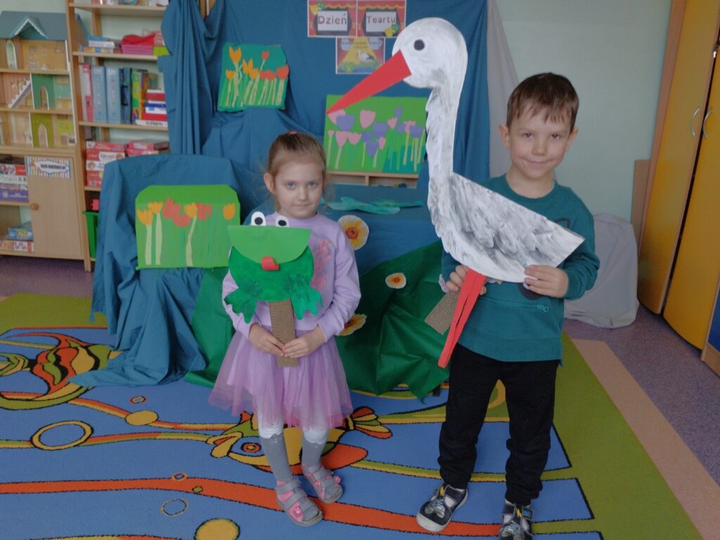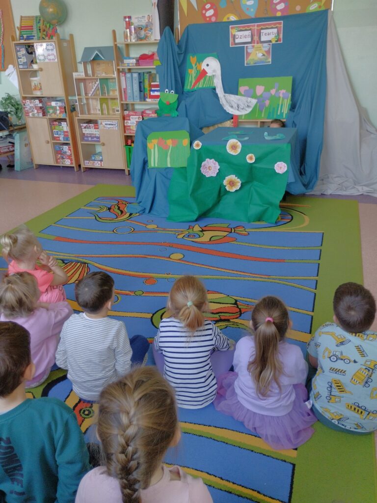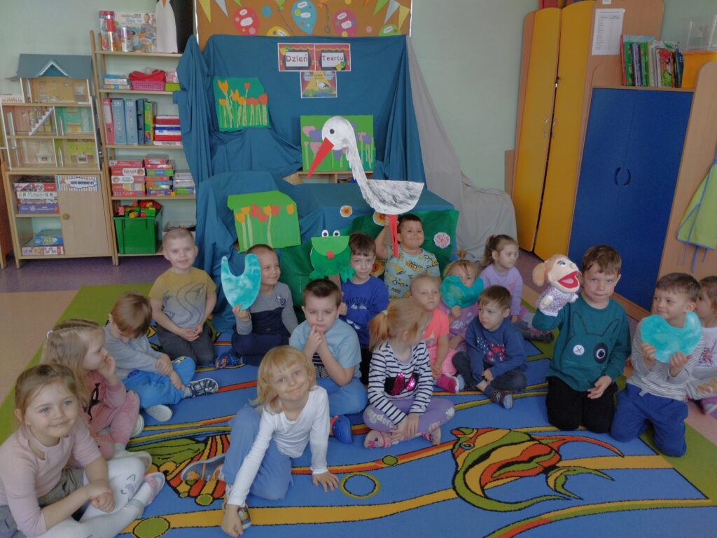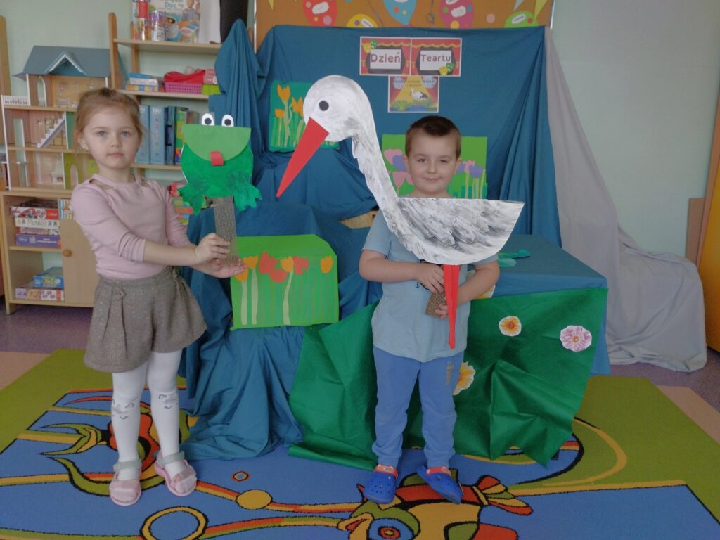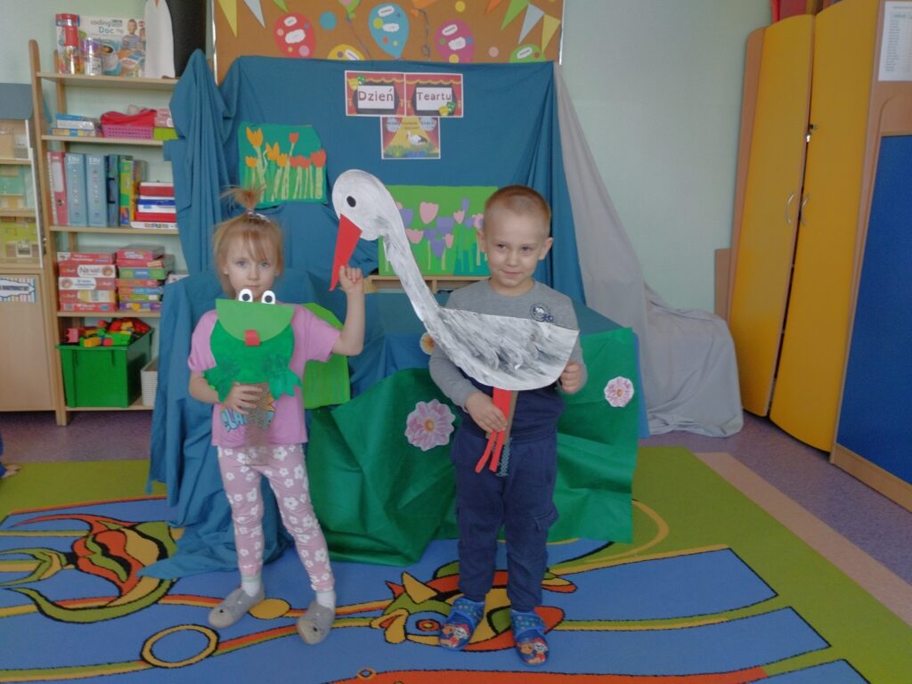 Do naszej grupy zawitali Bocian Stefan wraz z żabką Rerekumką – a wszystko za sprawą przedstawienia, w którym grali główne role z okazji Dnia Teatru. Oczywiście każdy Motylek chciał zrobić sobie z nimi pamiątkowe zdjęcie. Nasi aktorzy nie gwiazdorzyli i z chęcią pozowali, sprawiając dzieciom ogromną radość.